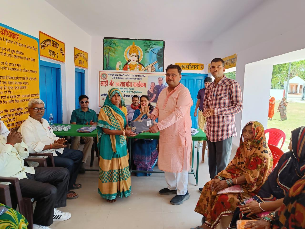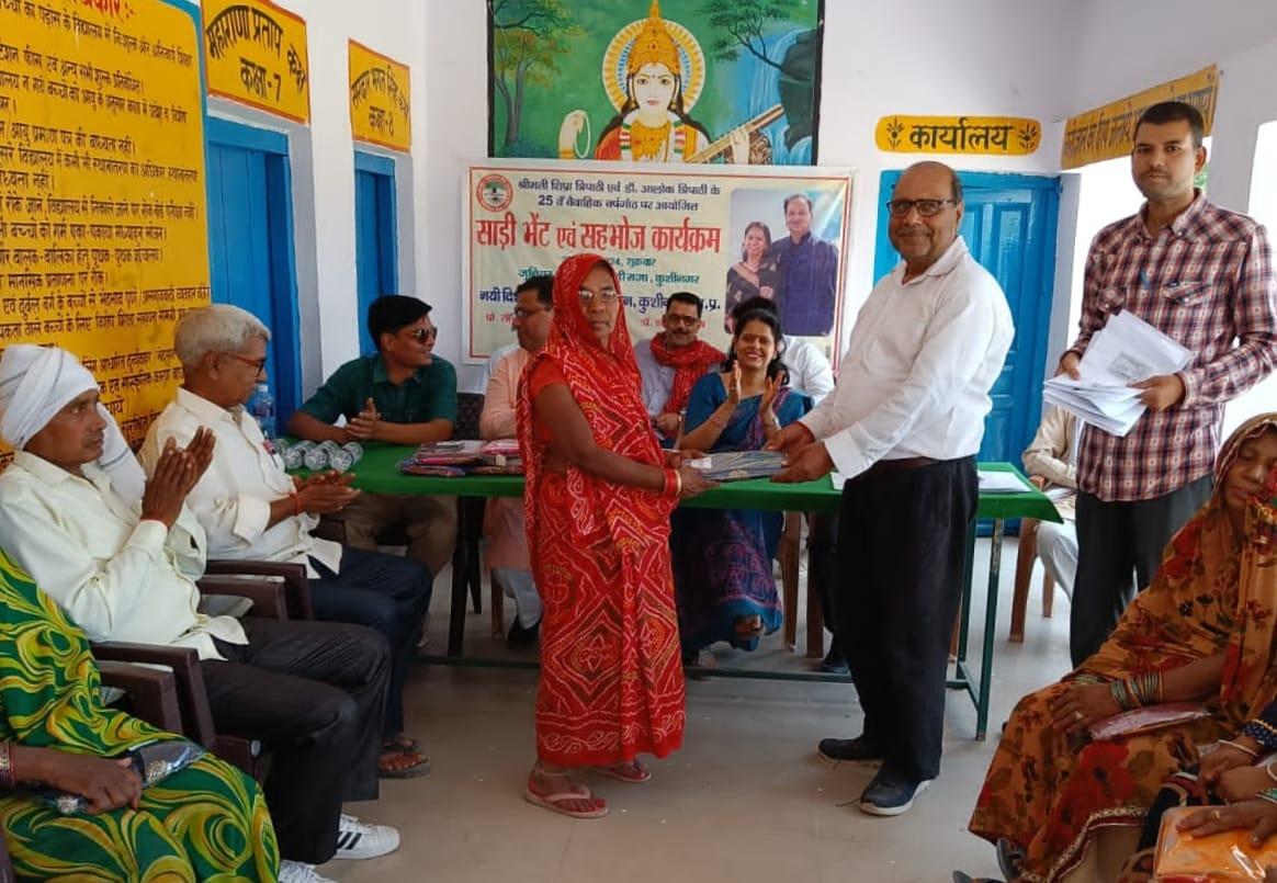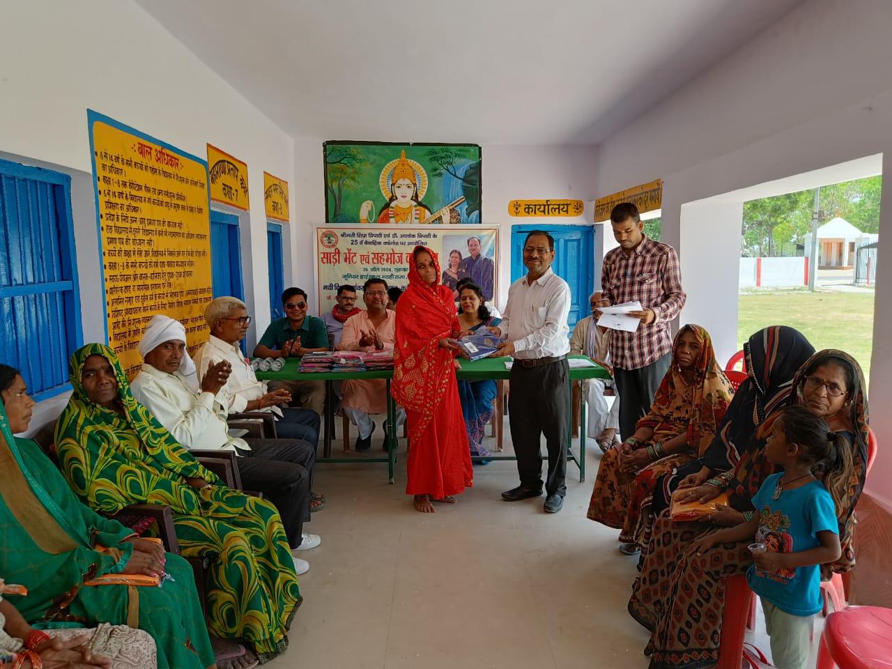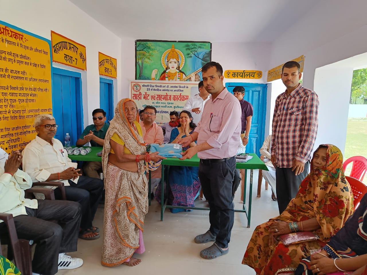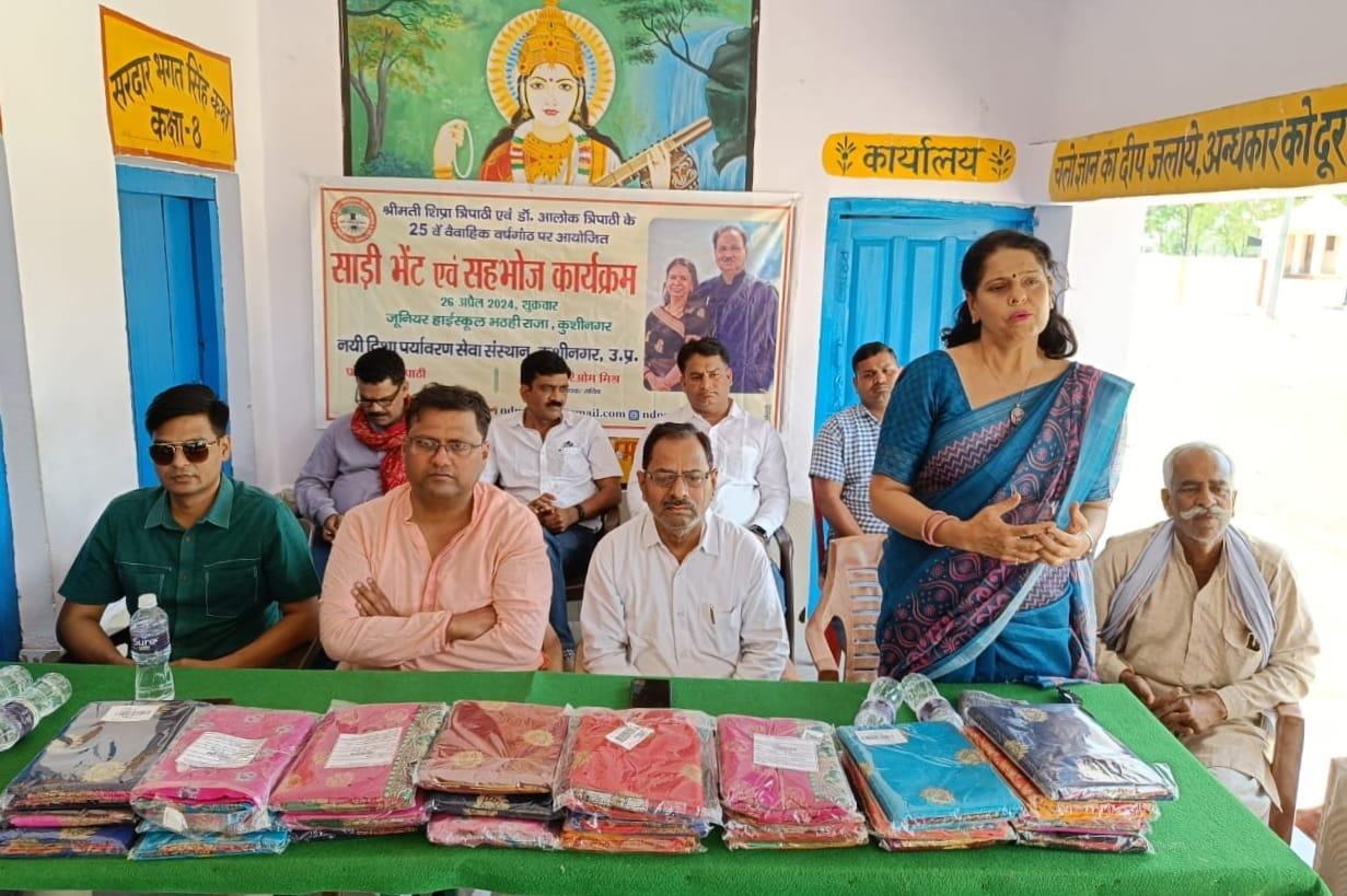 संस्थान द्वारा हाटा विकास खंड के जूनियर हाईस्कूल भठही राजा में भारत सरकार के इलेक्ट्रॉनिक्स एवं सूचना प्रौद्योगिकी संस्थान के निदेशक डॉ0 आलोक त्रिपाठी व आपकी अर्धांगिनी श्रीमती शिप्रा त्रिपाठी के 25 वें वैवाहिक वर्षगांठ के अवसर पर आपके सहयोग से 25 जरूरतमंद माताओं को साड़ी भेंट कर सहभोज किया गया।