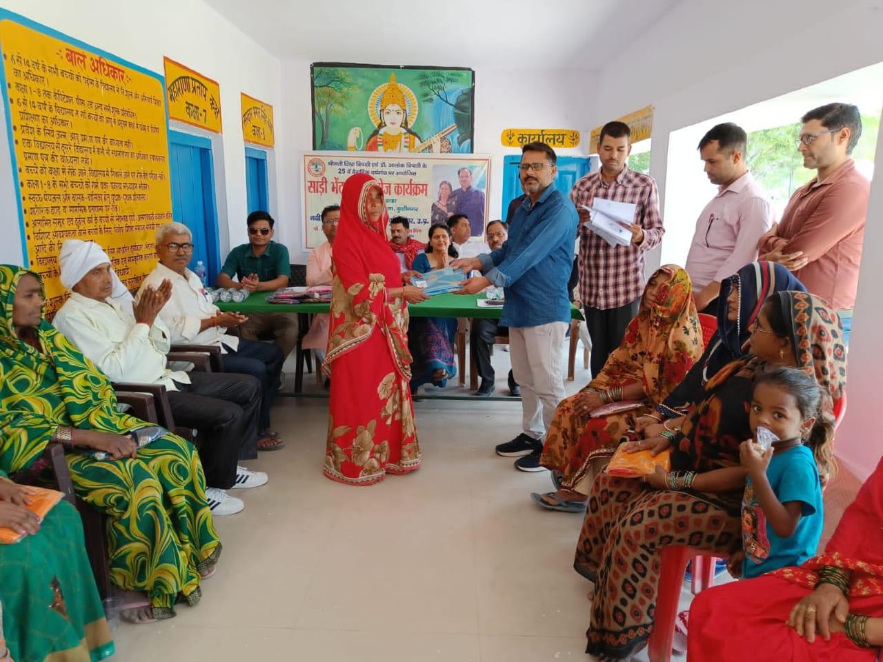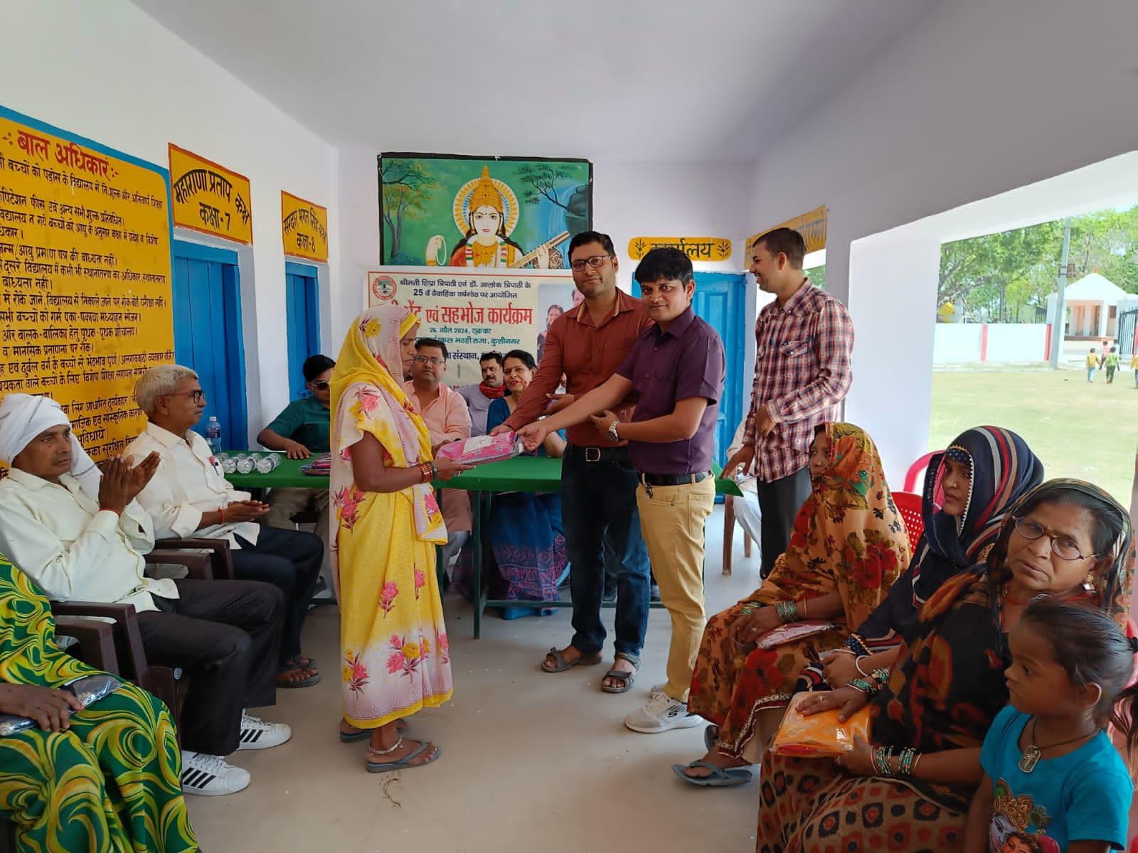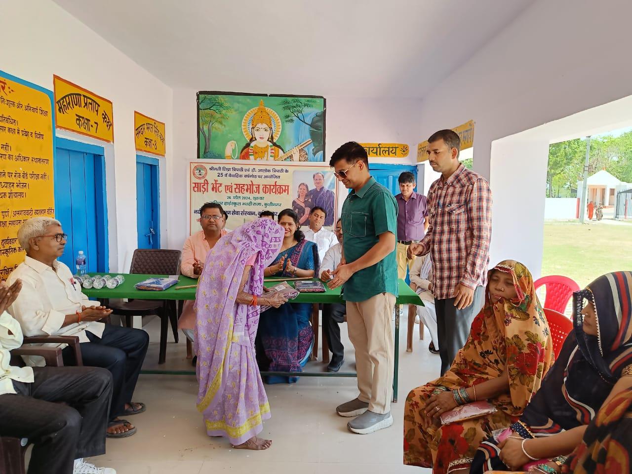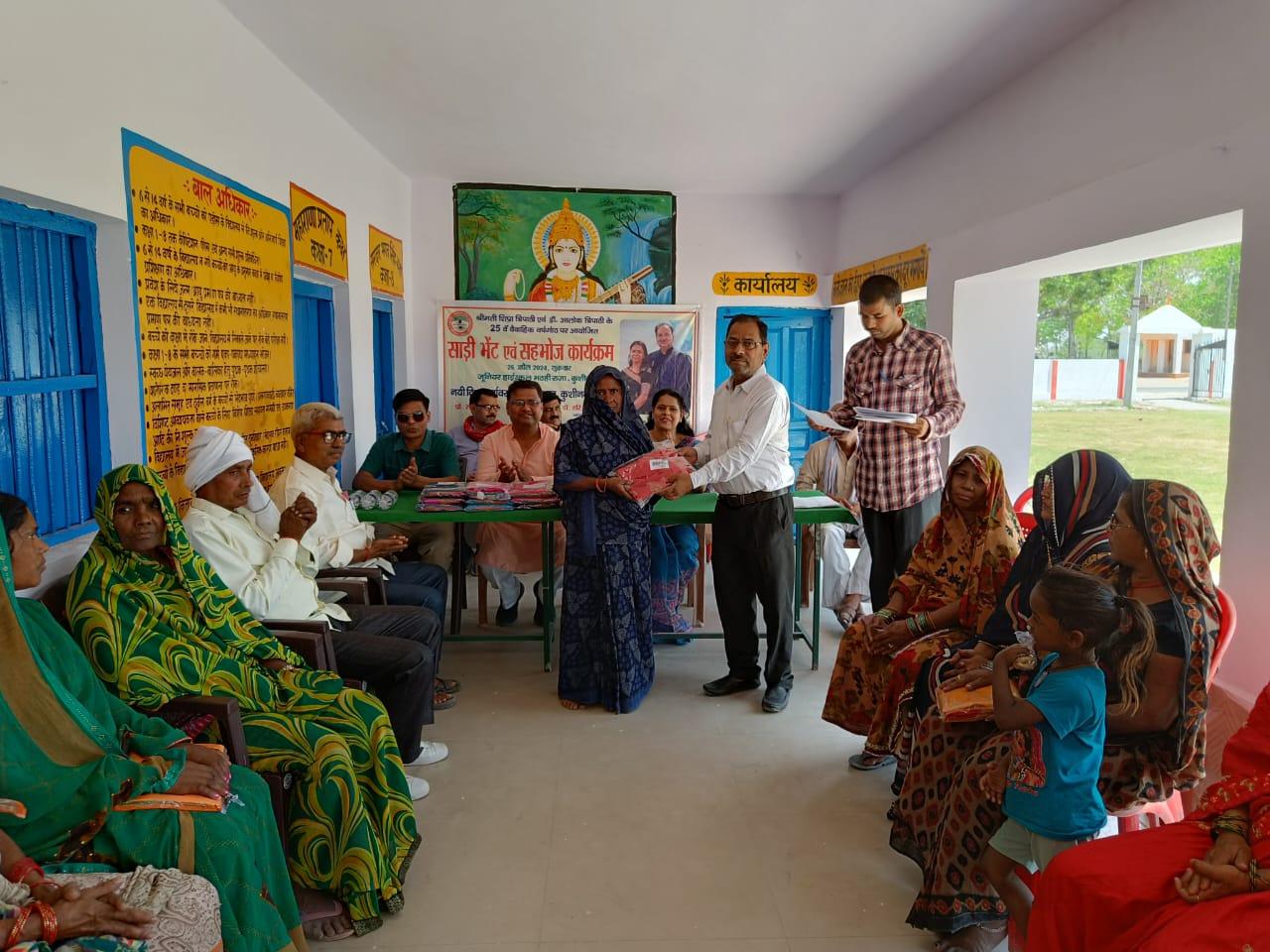 संस्थान द्वारा हाटा विकास खंड के जूनियर हाईस्कूल भठही राजा में भारत सरकार के इलेक्ट्रॉनिक्स एवं सूचना प्रौद्योगिकी संस्थान के निदेशक डॉ0 आलोक त्रिपाठी व आपकी अर्धांगिनी श्रीमती शिप्रा त्रिपाठी के 25 वें वैवाहिक वर्षगांठ के अवसर पर आपके सहयोग से 25 जरूरतमंद माताओं को साड़ी भेंट कर सहभोज किया गया।