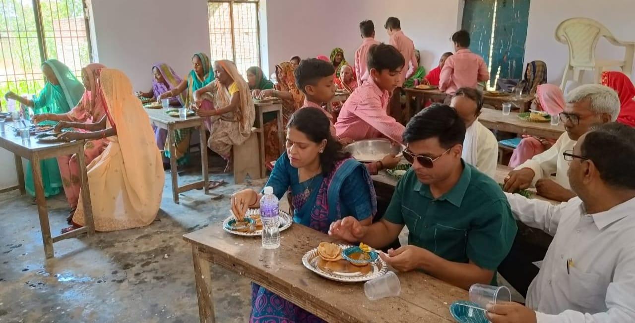 मानवता जिंदाबाद : डॉ0 आलोक त्रिपाठी व श्रीमती शिप्रा त्रिपाठी के वैवाहिक वर्षगांठ पर माताओं को साड़ी भेंट कर सहभोज किया गया।