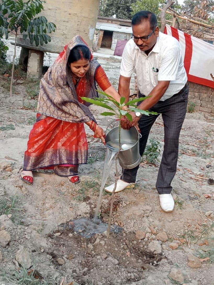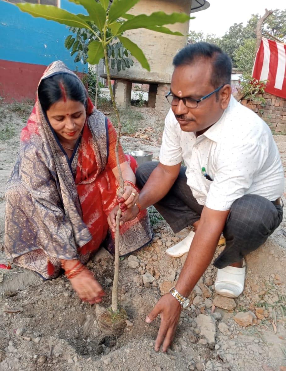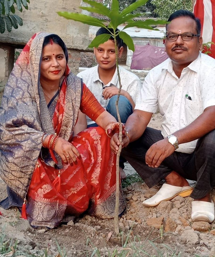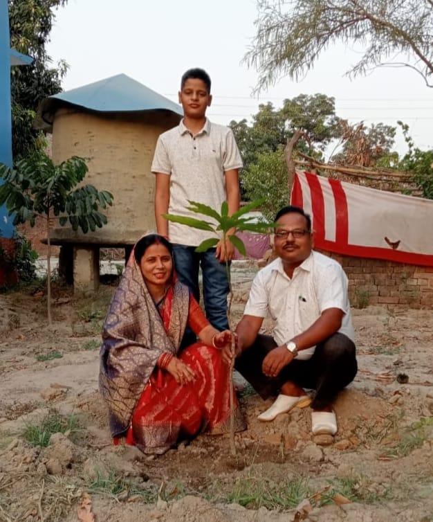 संस्थान द्वारा पर्यावरण संरक्षण के निमित्त चलाये जा रहे पौधरोपण अभियान के क्रम में भैया डॉ0 बिन्देश्वर मिश्र जी, प्राचार्य, बाबू बृजविहारी सिंह महाविद्यालय, सहजवलिया, कुशीनगर ने 17 वें वैवाहिक वर्षगाँठ के सुअवसर पर अपनी अर्धांगिनी भाभी श्रीमती प्रतिभा मिश्रा जी के साथ तमकुही राज विकास खंड के ग्राम सभा तिरमासाहुन स्थित अपने आवासीय परिसर में पौधरोपण किया।