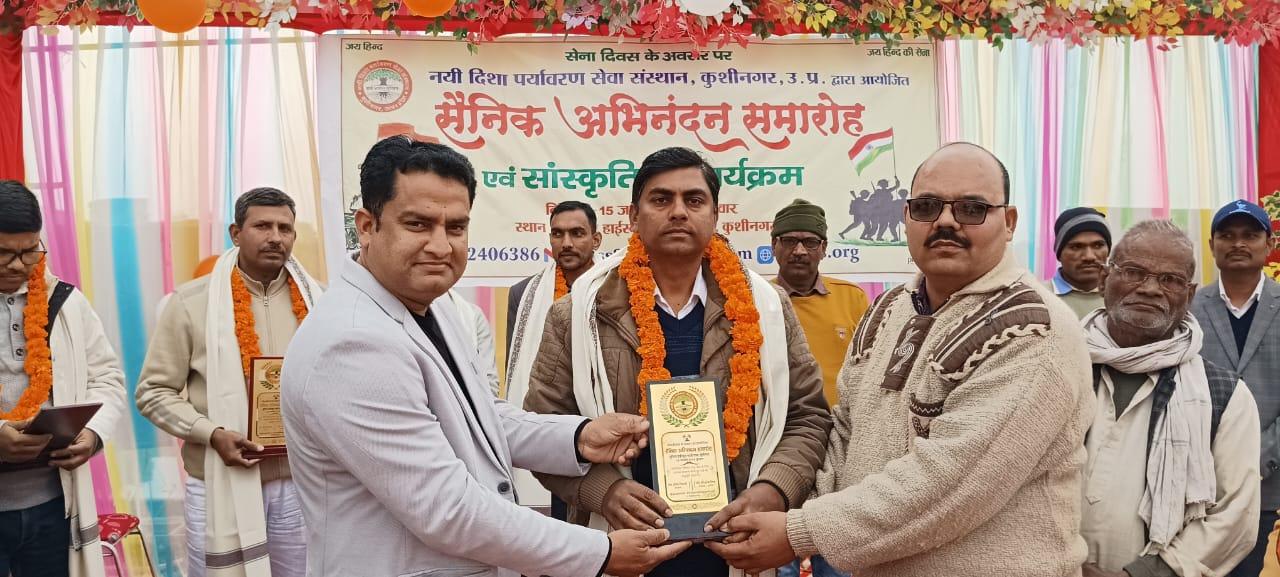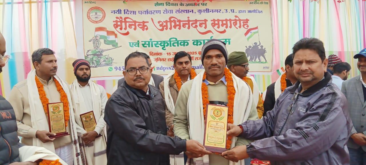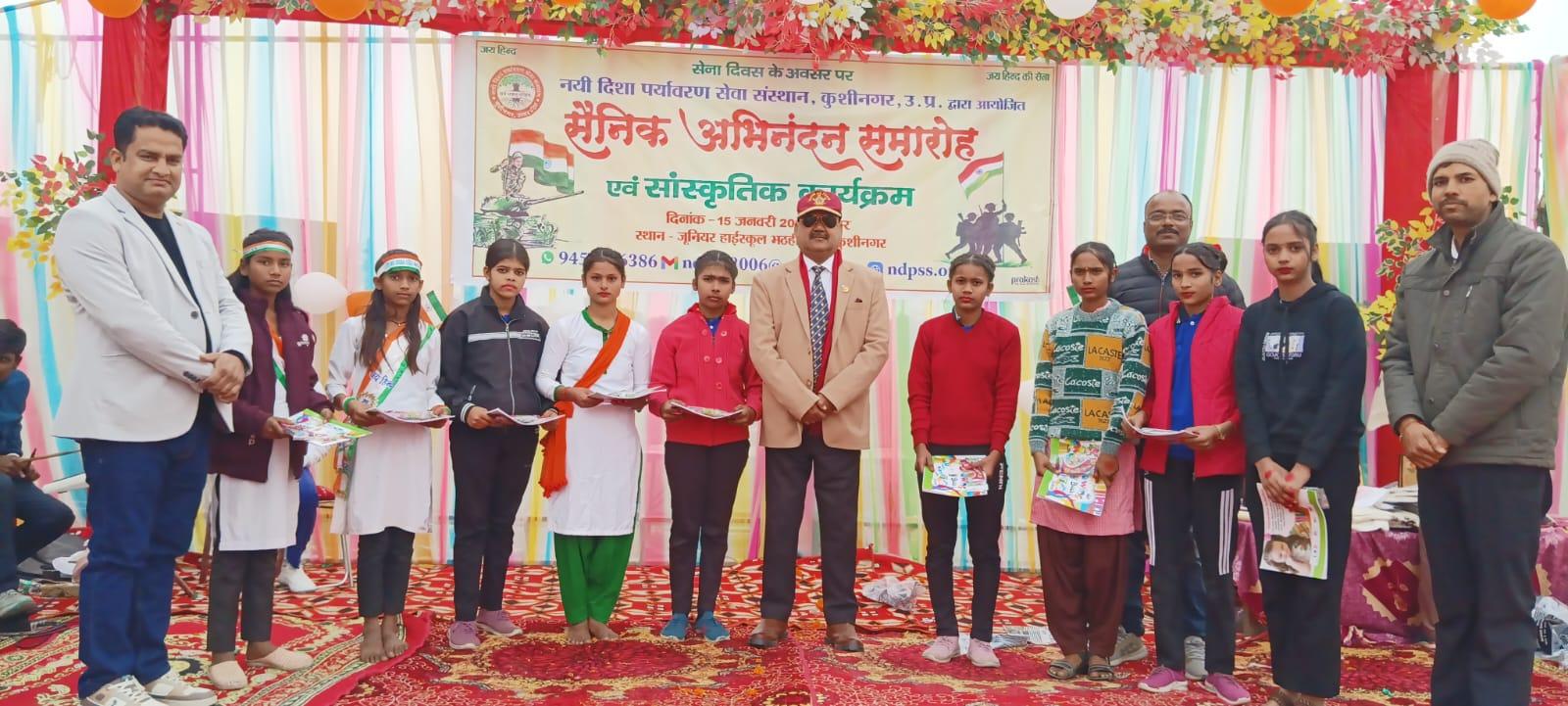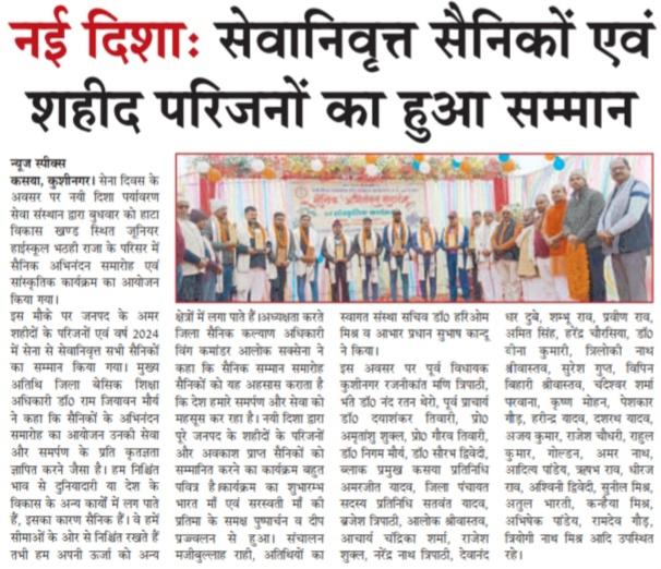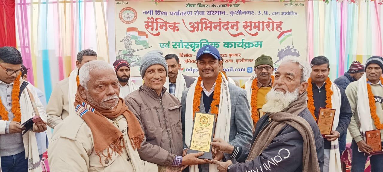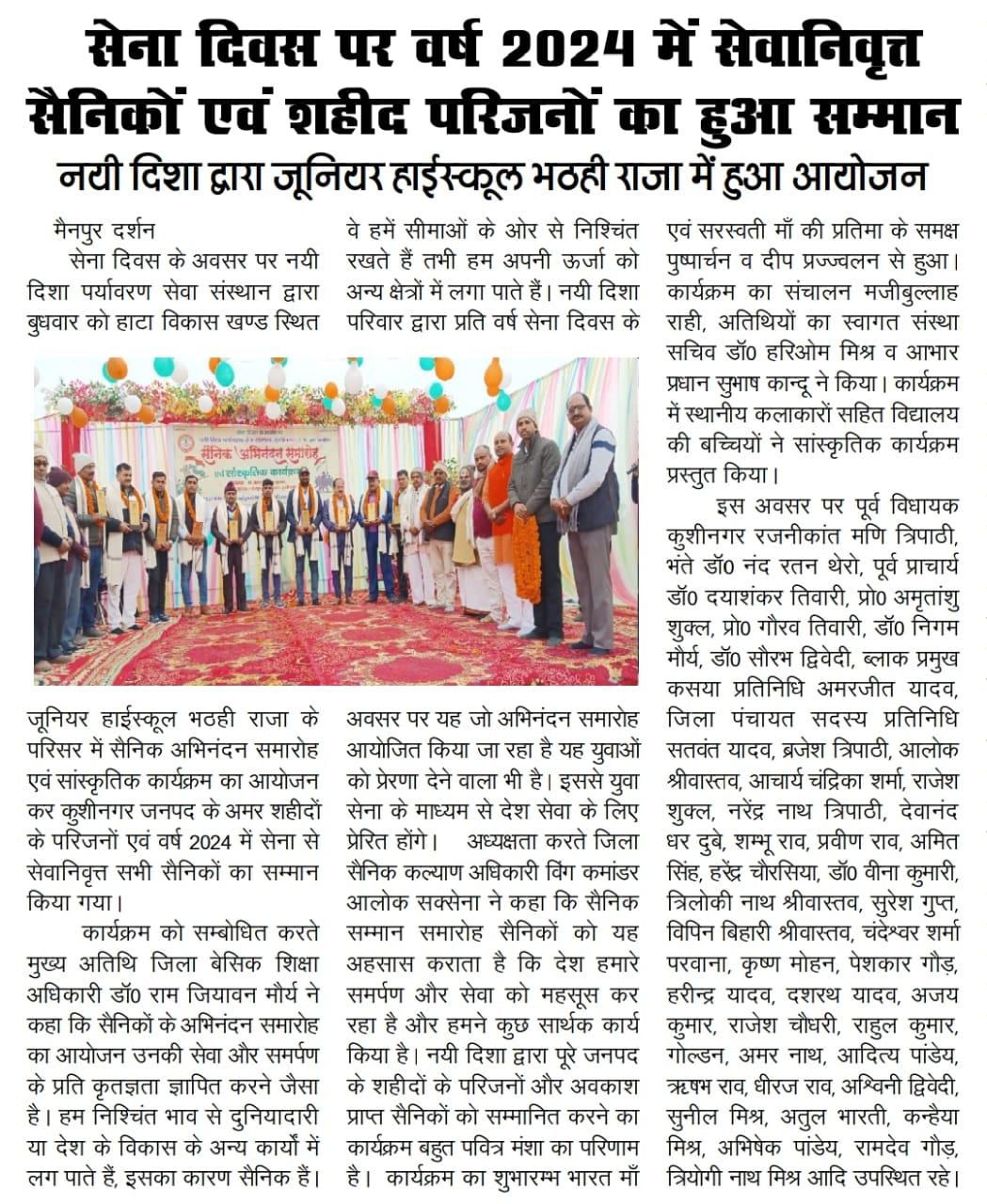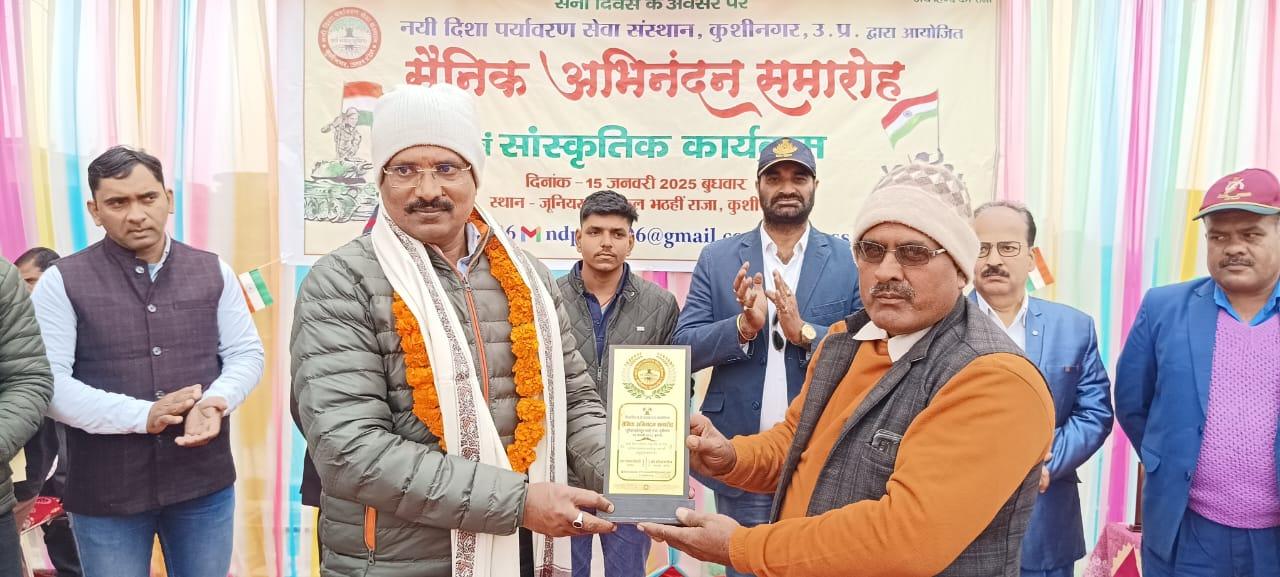 सेना दिवस के अवसर पर संस्थान द्वारा जूनियर हाईस्कूल भठही राजा, कुशीनगर के परिसर में सैनिक अभिनंदन समारोह एवं सांस्कृतिक कार्यक्रम का आयोजन कर कुशीनगर जनपद के अमर शहीदों के परिजनों एवं वर्ष 2024 में सेना से सेवानिवृत्त सभी सैनिकों का सम्मान किया गया।