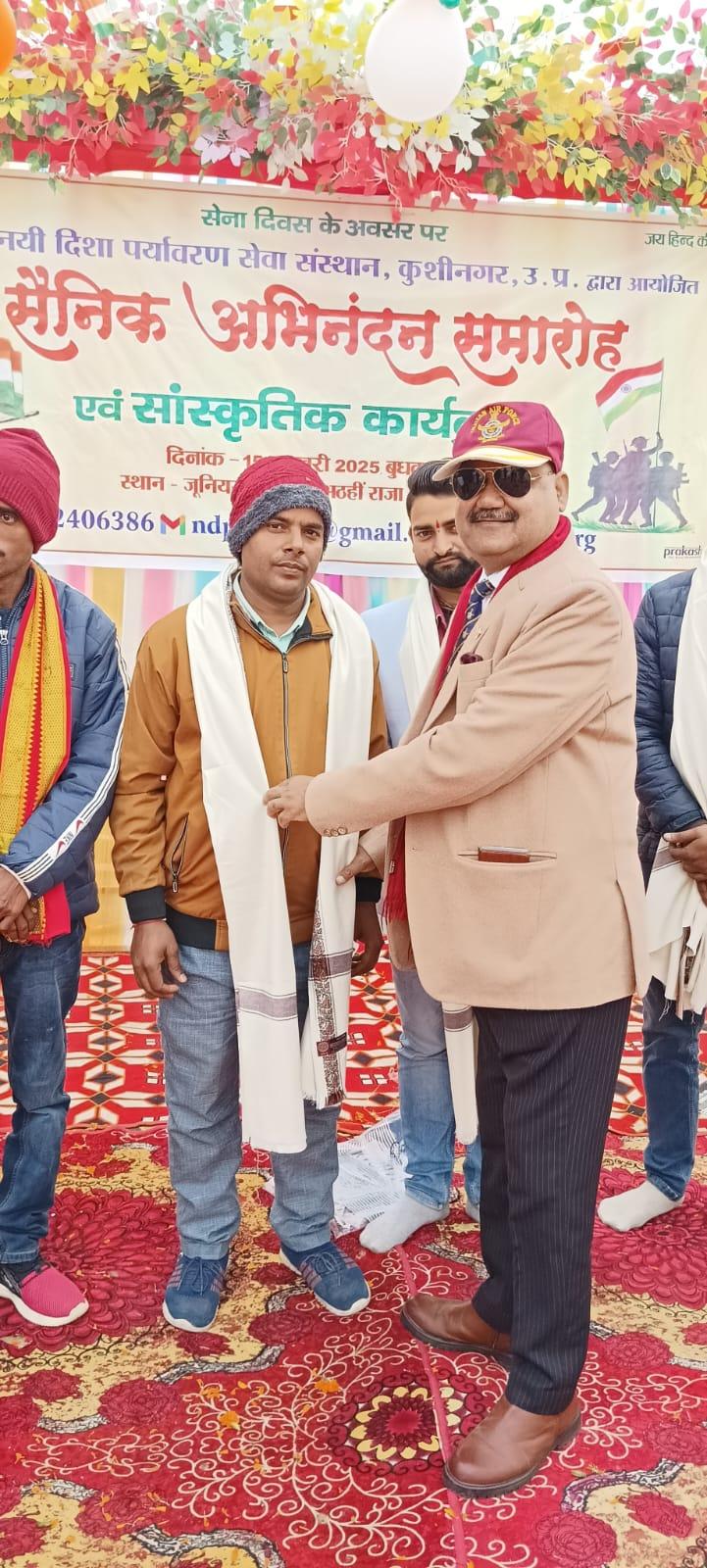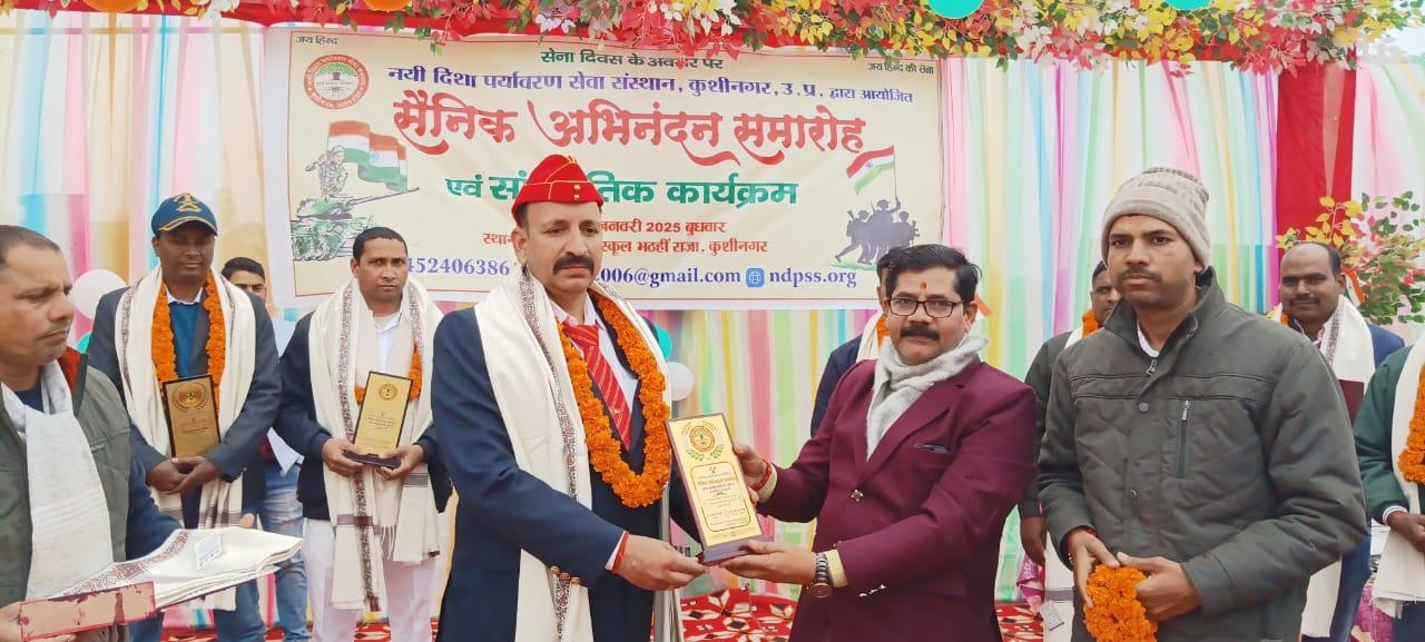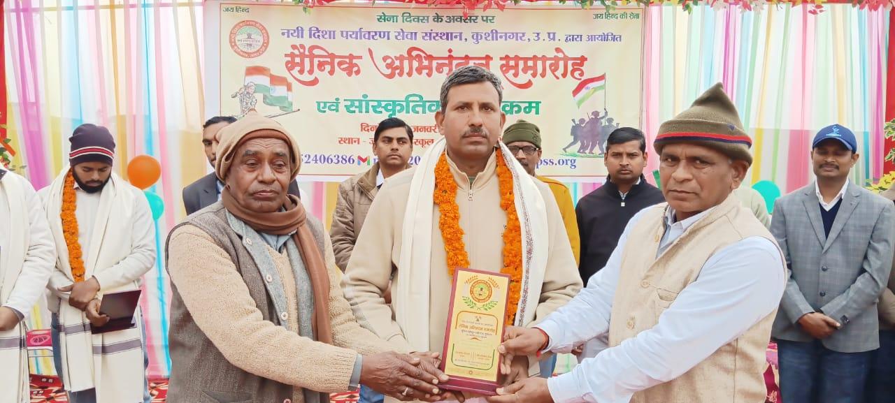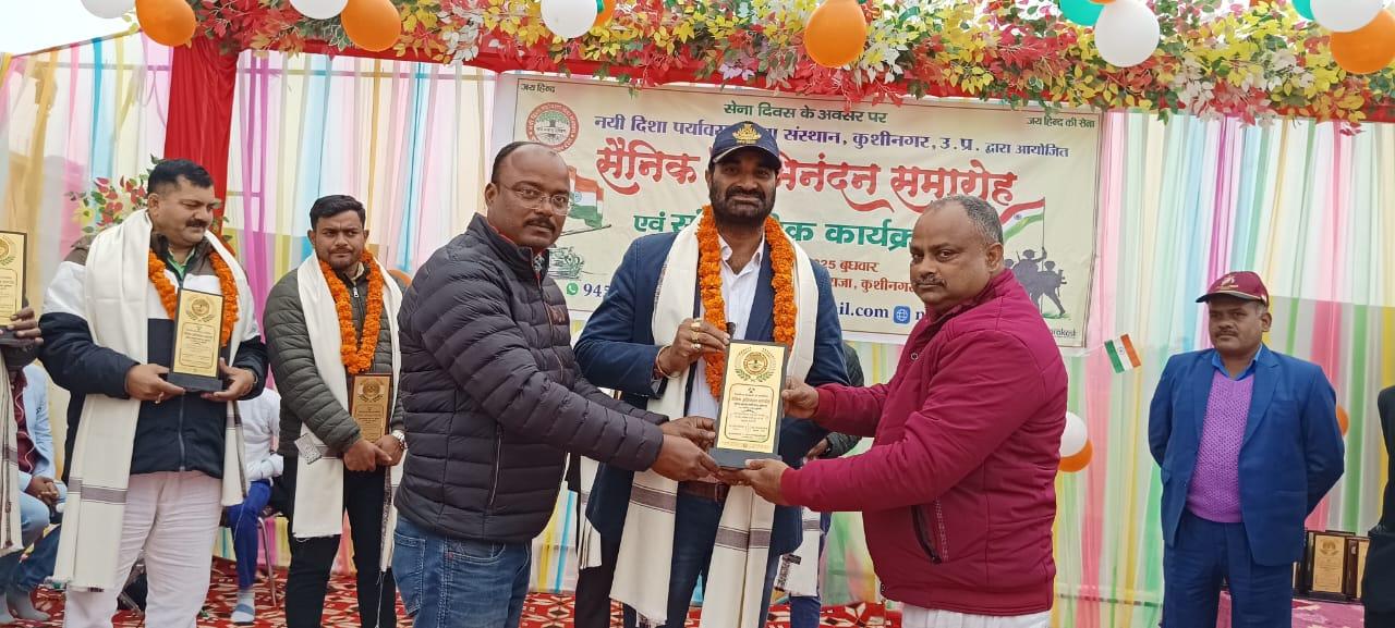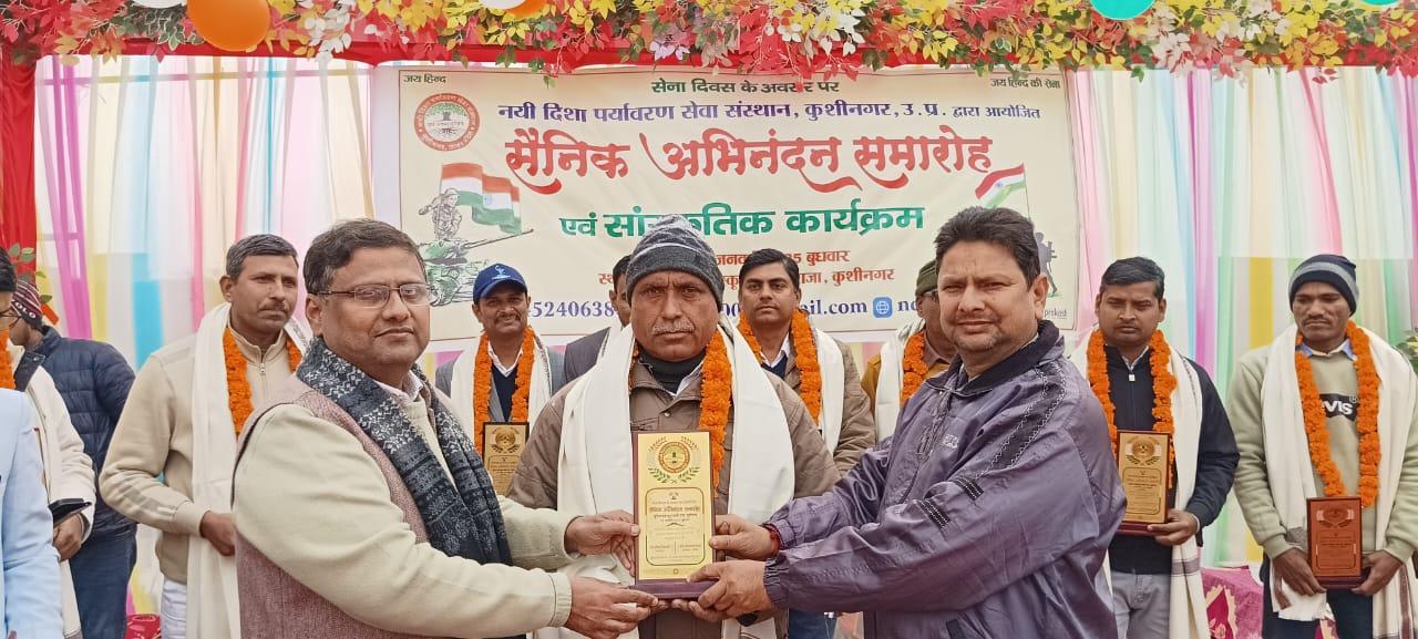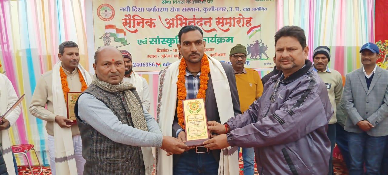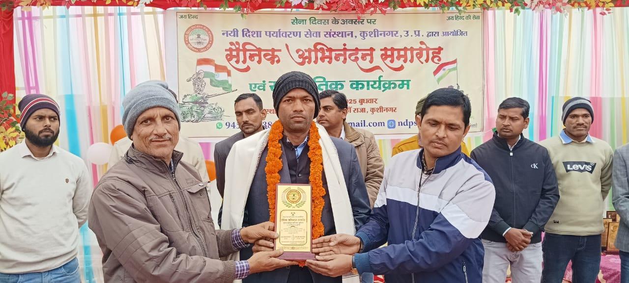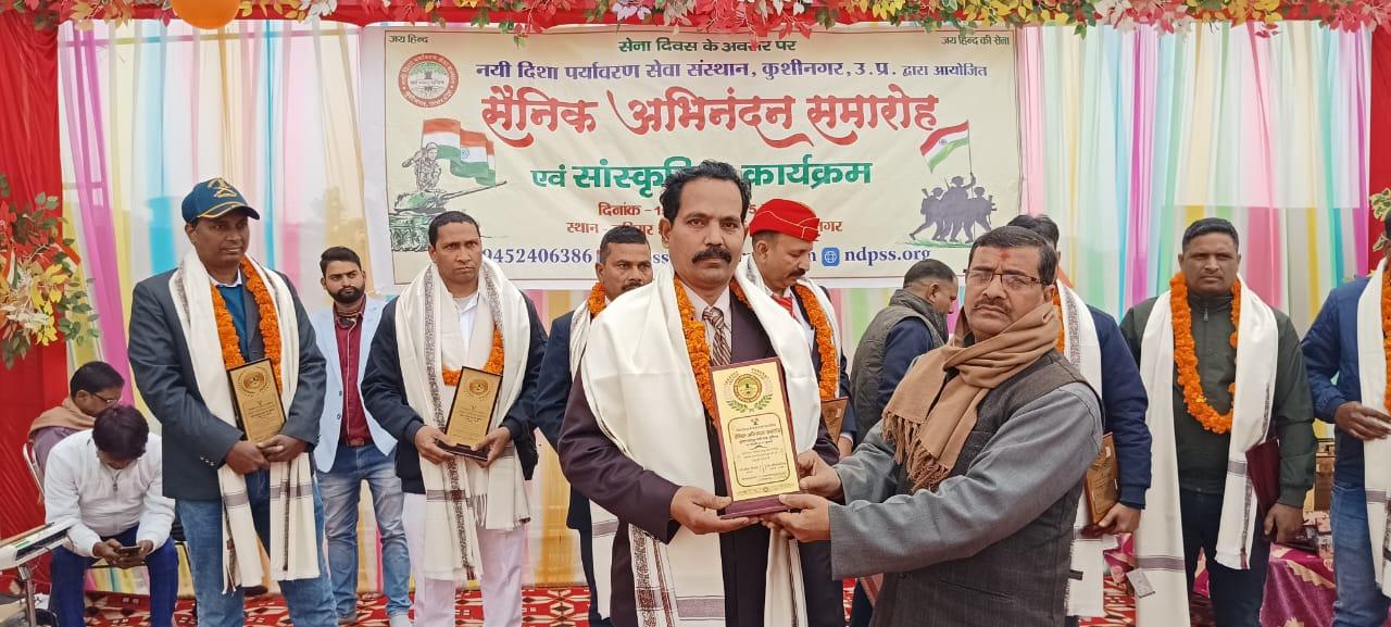 सेना दिवस के अवसर पर संस्थान द्वारा जूनियर हाईस्कूल भठही राजा, कुशीनगर के परिसर में सैनिक अभिनंदन समारोह एवं सांस्कृतिक कार्यक्रम का आयोजन कर कुशीनगर जनपद के अमर शहीदों के परिजनों एवं वर्ष 2024 में सेना से सेवानिवृत्त सभी सैनिकों का सम्मान किया गया।