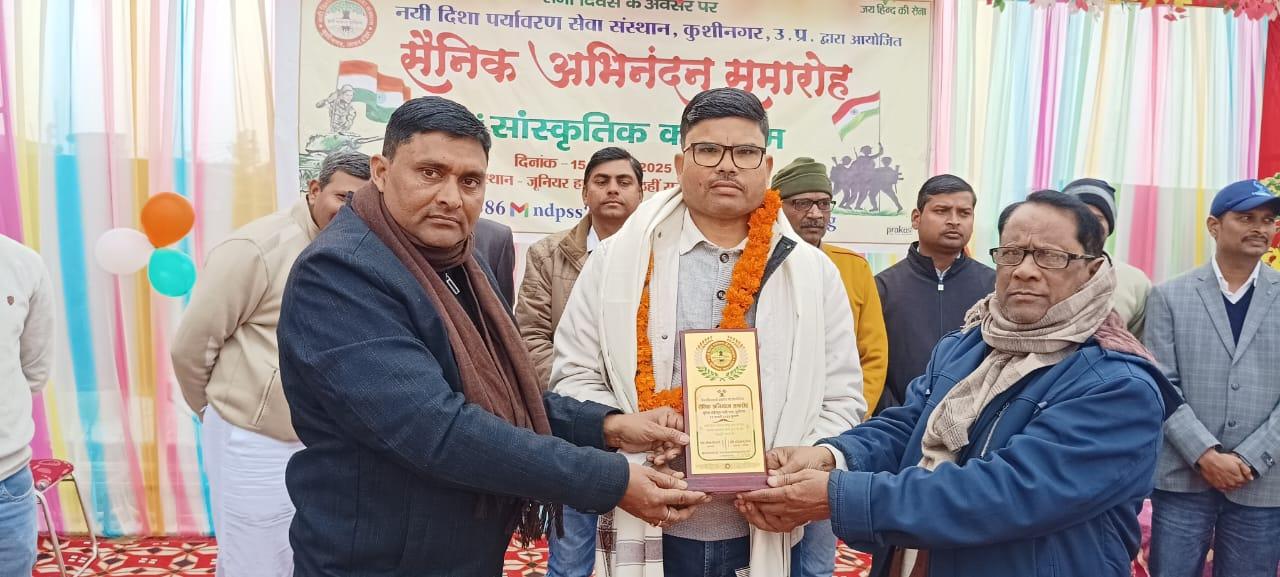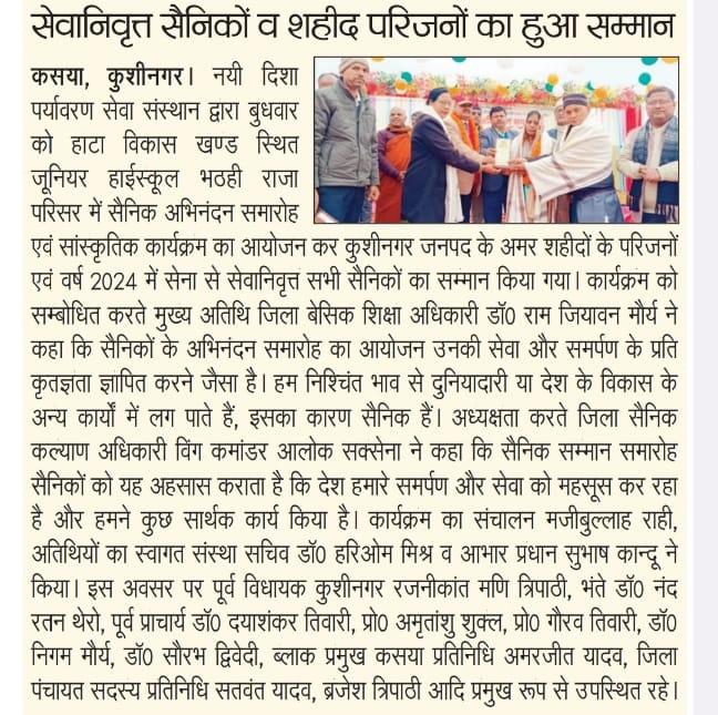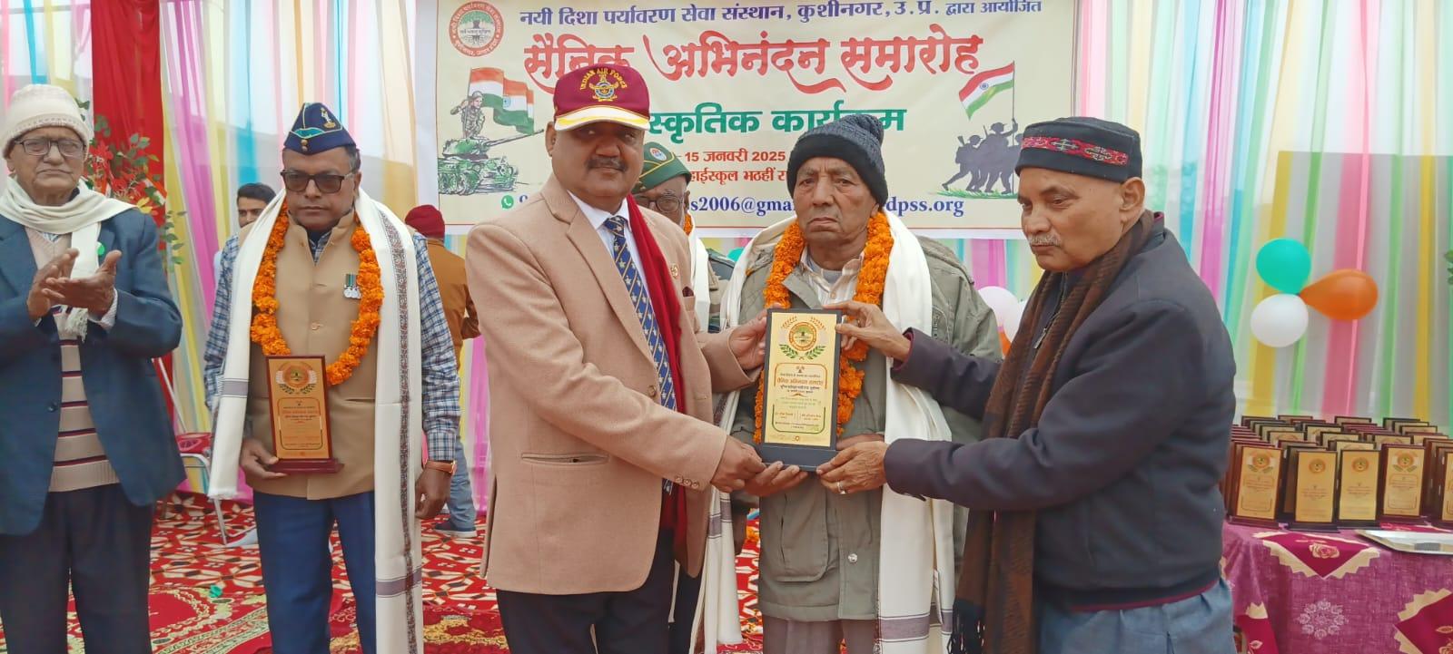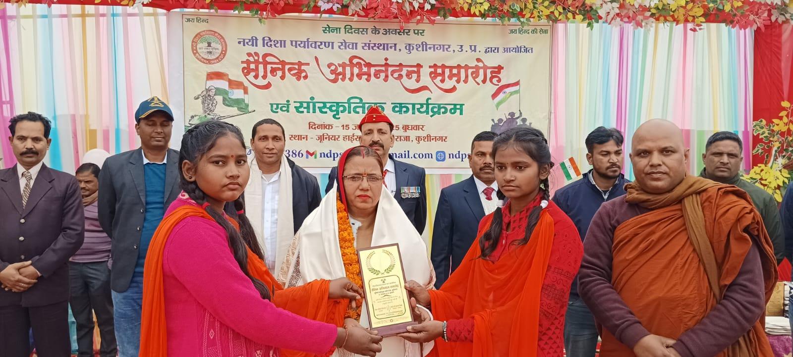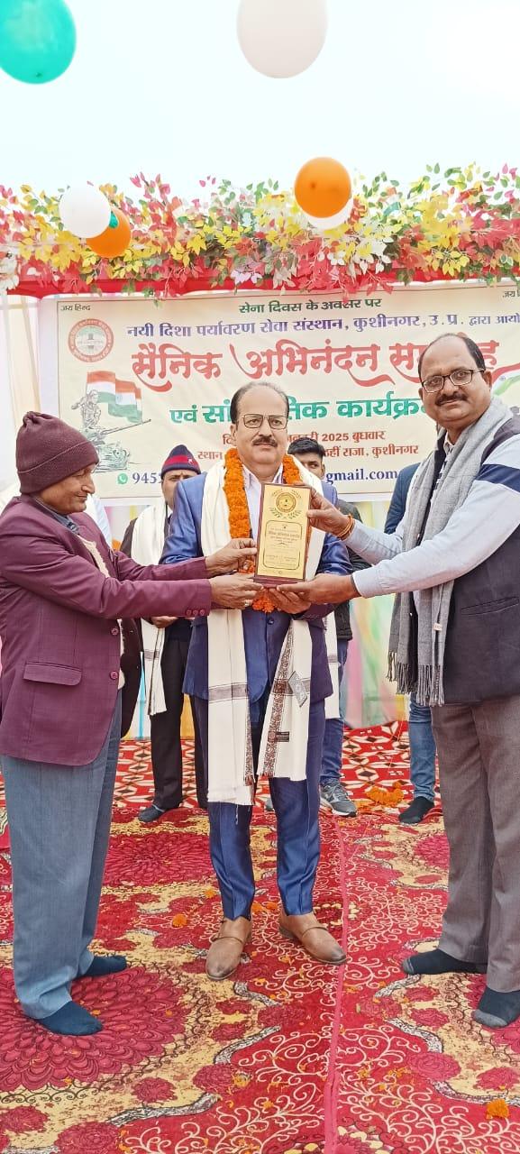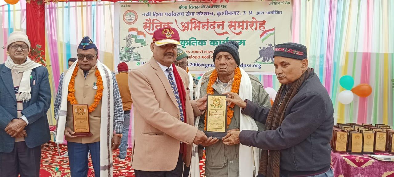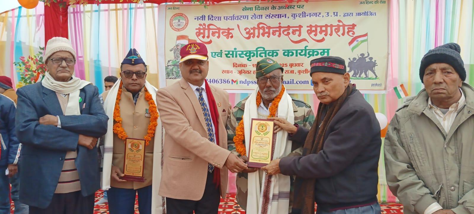 सेना दिवस के अवसर पर संस्थान द्वारा जूनियर हाईस्कूल भठही राजा, कुशीनगर के परिसर में सैनिक अभिनंदन समारोह एवं सांस्कृतिक कार्यक्रम का आयोजन कर कुशीनगर जनपद के अमर शहीदों के परिजनों एवं वर्ष 2024 में सेना से सेवानिवृत्त सभी सैनिकों का सम्मान किया गया।