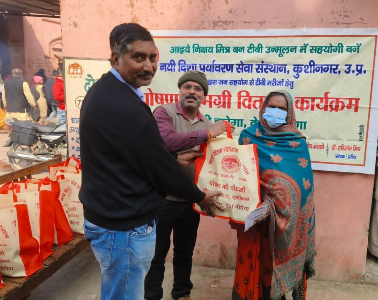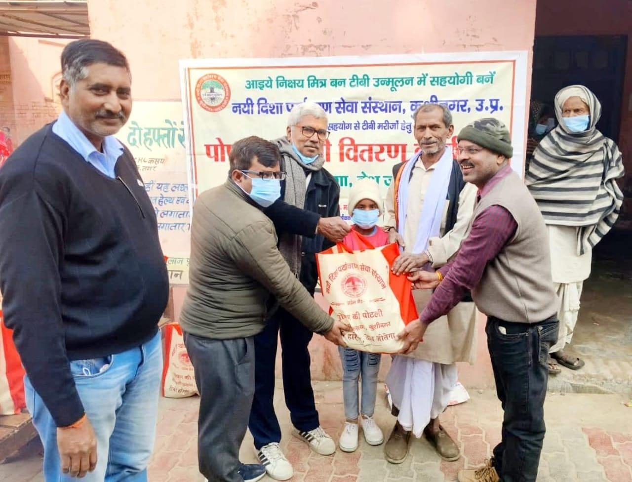 मानवता जिंदाबाद : जन सहयोग से टीबी मरीजों को भेंट की गयी पोषण की पोटली।