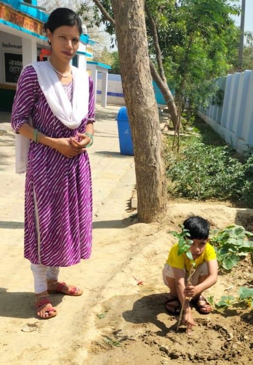 संस्थान द्वारा पर्यावरण संरक्षण हेतु चलाये जा रहे पौधरोपण संग जन्मोत्सव अभियान से जुड़कर कुशीनगर जनपद की बेटी वर्तमान में प्राथमिक विद्यालय उरवा, जनपद अमेठी में कार्यरत शिक्षिका श्रीमती दीपिका राय ने अपने लाडले दीपेश से जन्मदिन के सुअवसर पर विद्यालय परिसर में गुड़हल, हरसिंगार, चांदनी आदि पौधों का रोपण करा पर्यावरण संरक्षण का संदेश दिया।