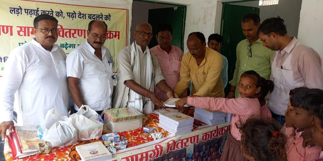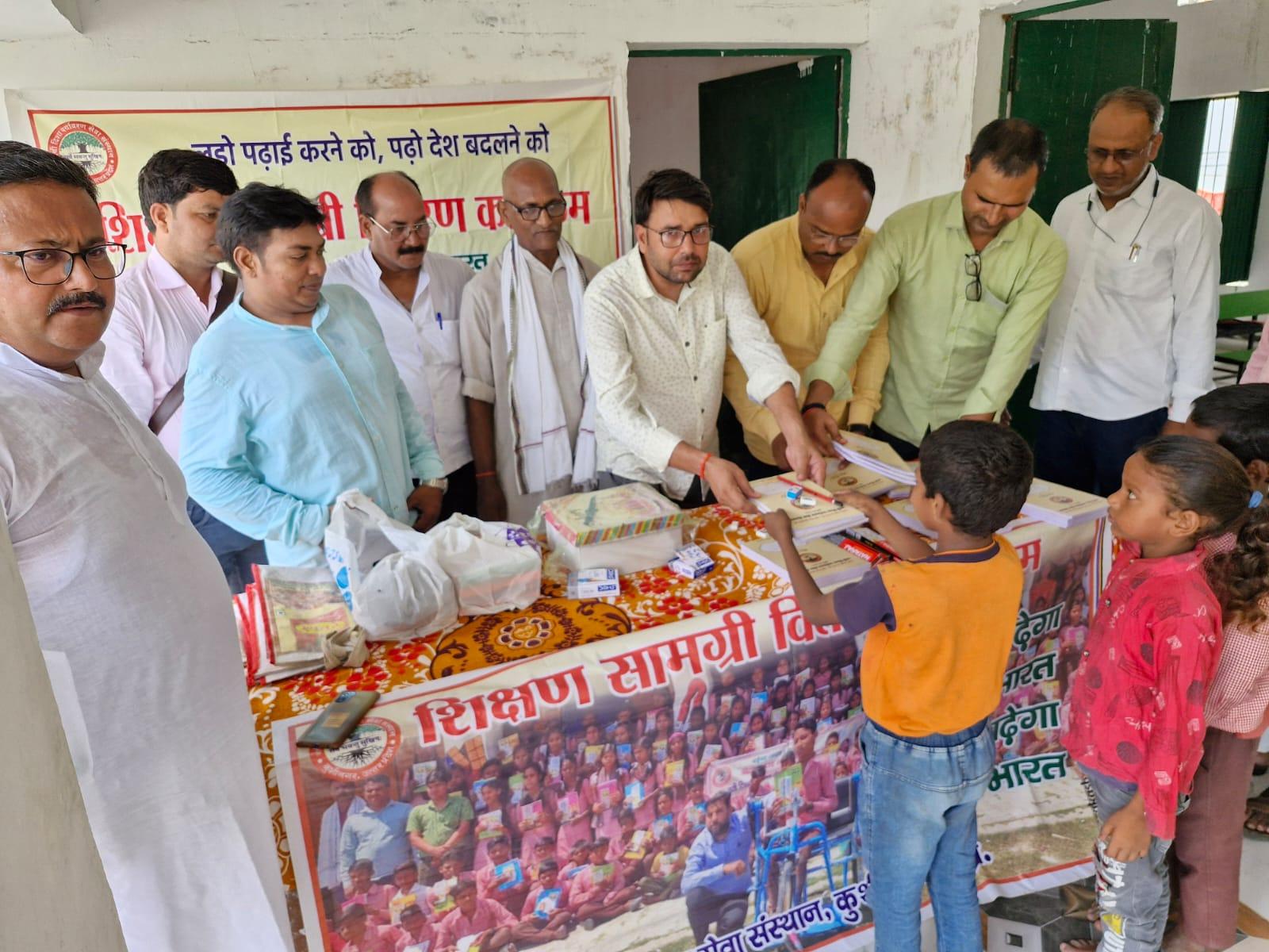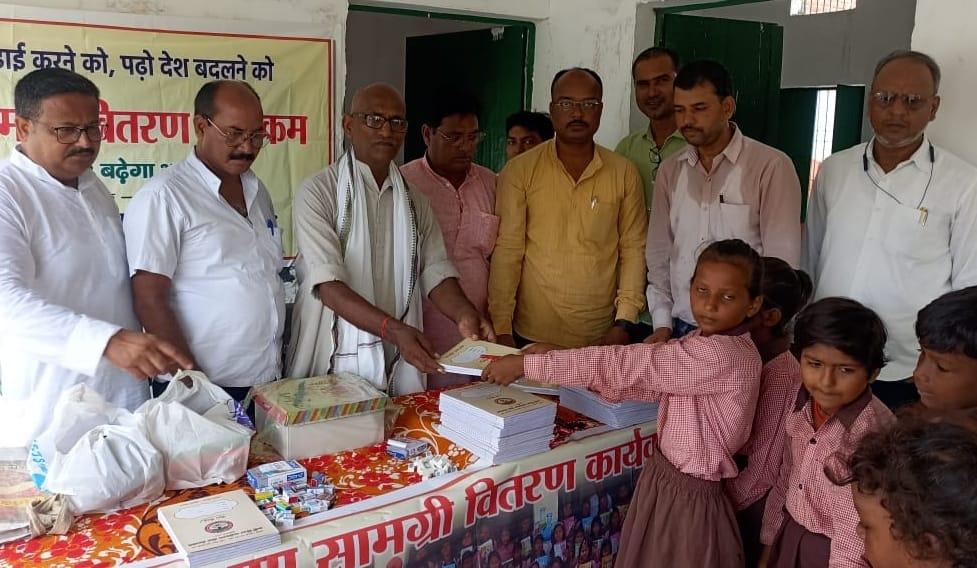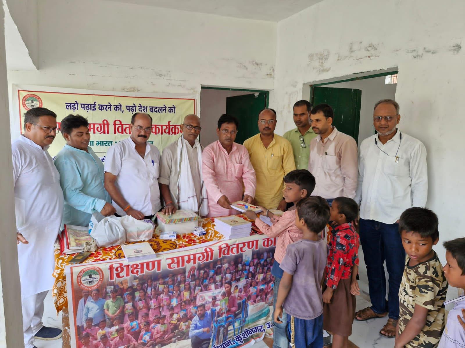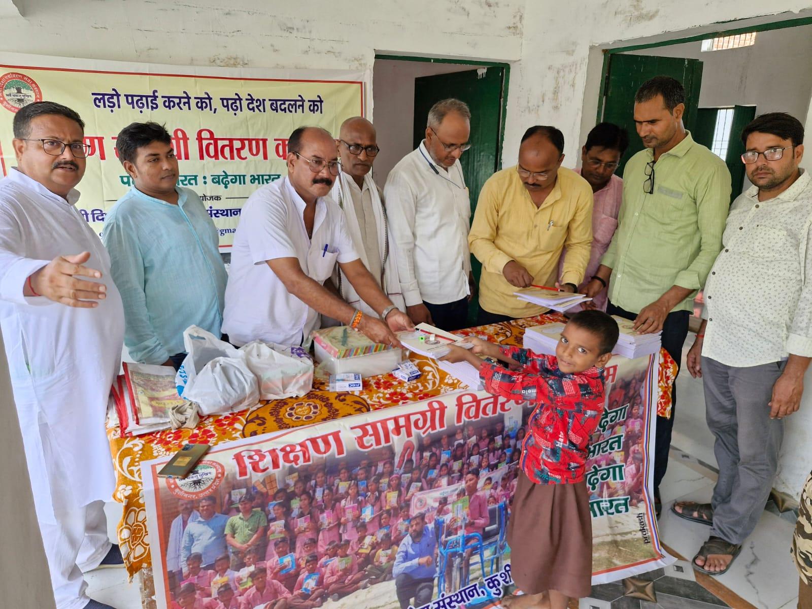 संस्थान द्वारा जन सहयोग से पढ़ेगा भारत, बढ़ेगा भारत अभियान चलाकर जरूरतमंद बच्चों को शिक्षण सामग्री वितरण करने के क्रम में नगर पालिका परिषद कुशीनगर स्थित प्राथमिक विद्यालय भरटोली पकवाइनार में बच्चों को कॉपी, कलम, रबर, पेंसिल, कटर आदि भेंट कर पढ़ने व आगे बढ़ने हेतु प्रेरित किया गया। इस दौरान विद्यालय के प्रधानाध्यापक श्री राजेश शुक्ल जी की लाडली बिटिया राजवी के जन्मदिन पर पौधरोपण भी हुआ और बच्चों में केक व मिठाई भी बटीं।
