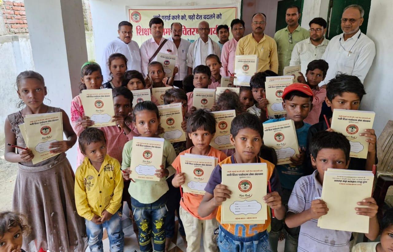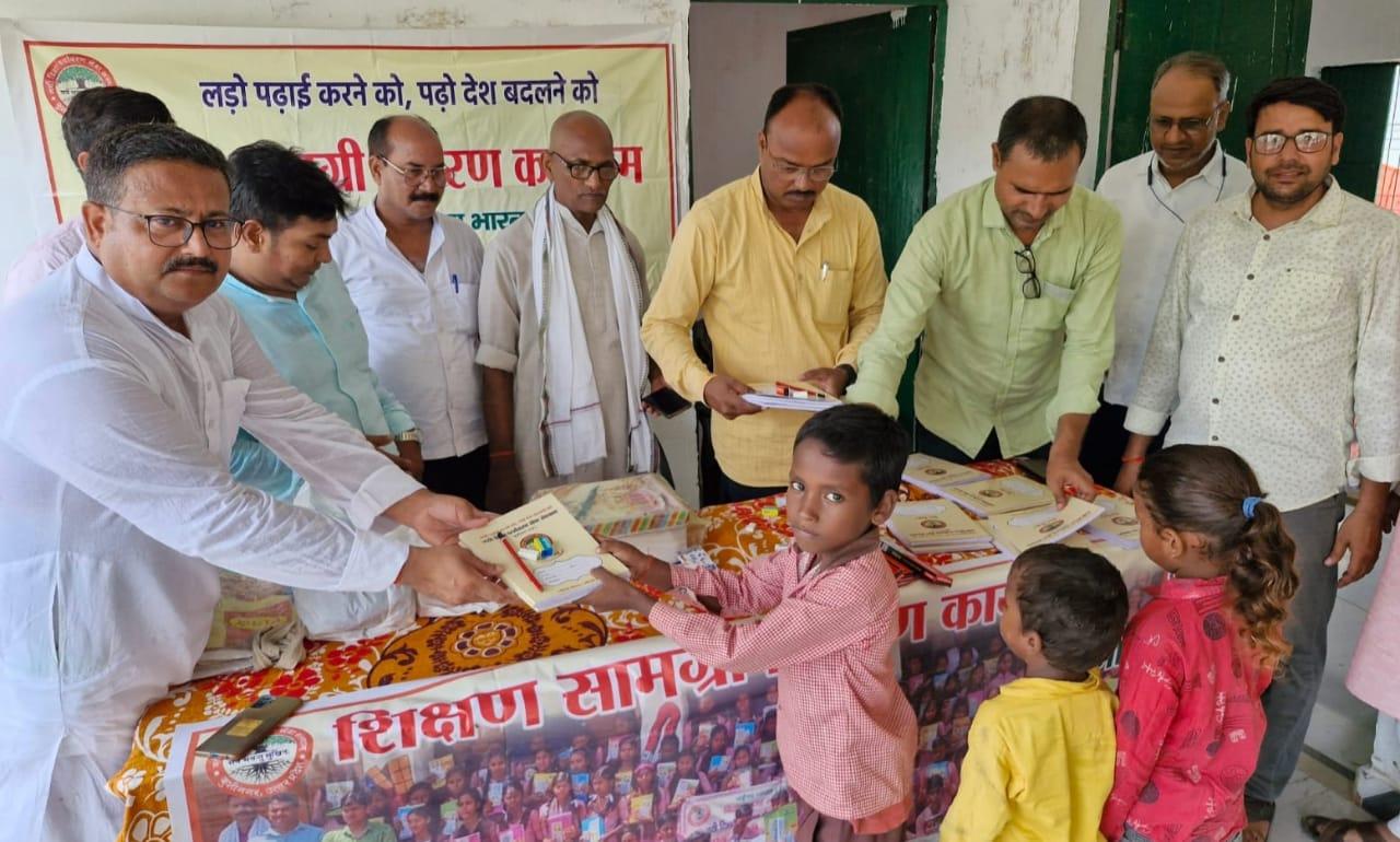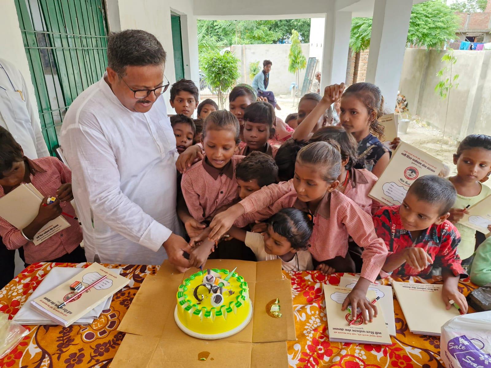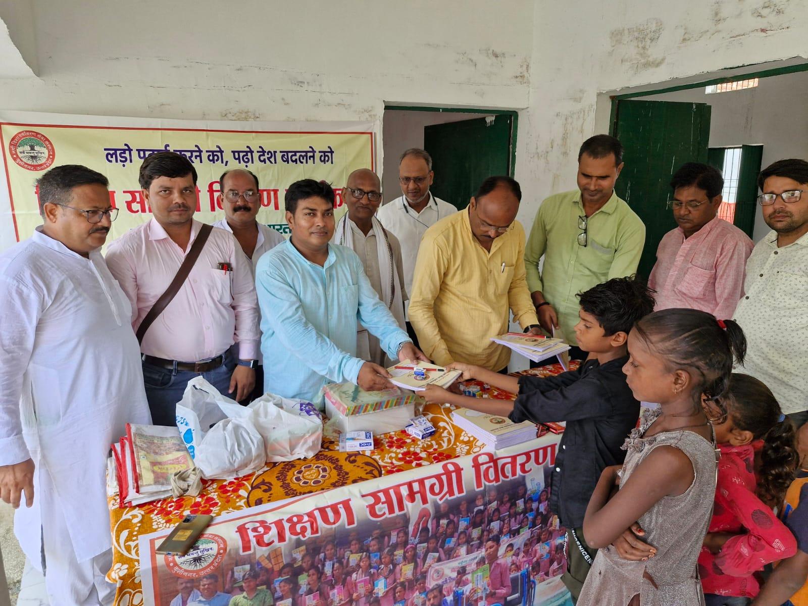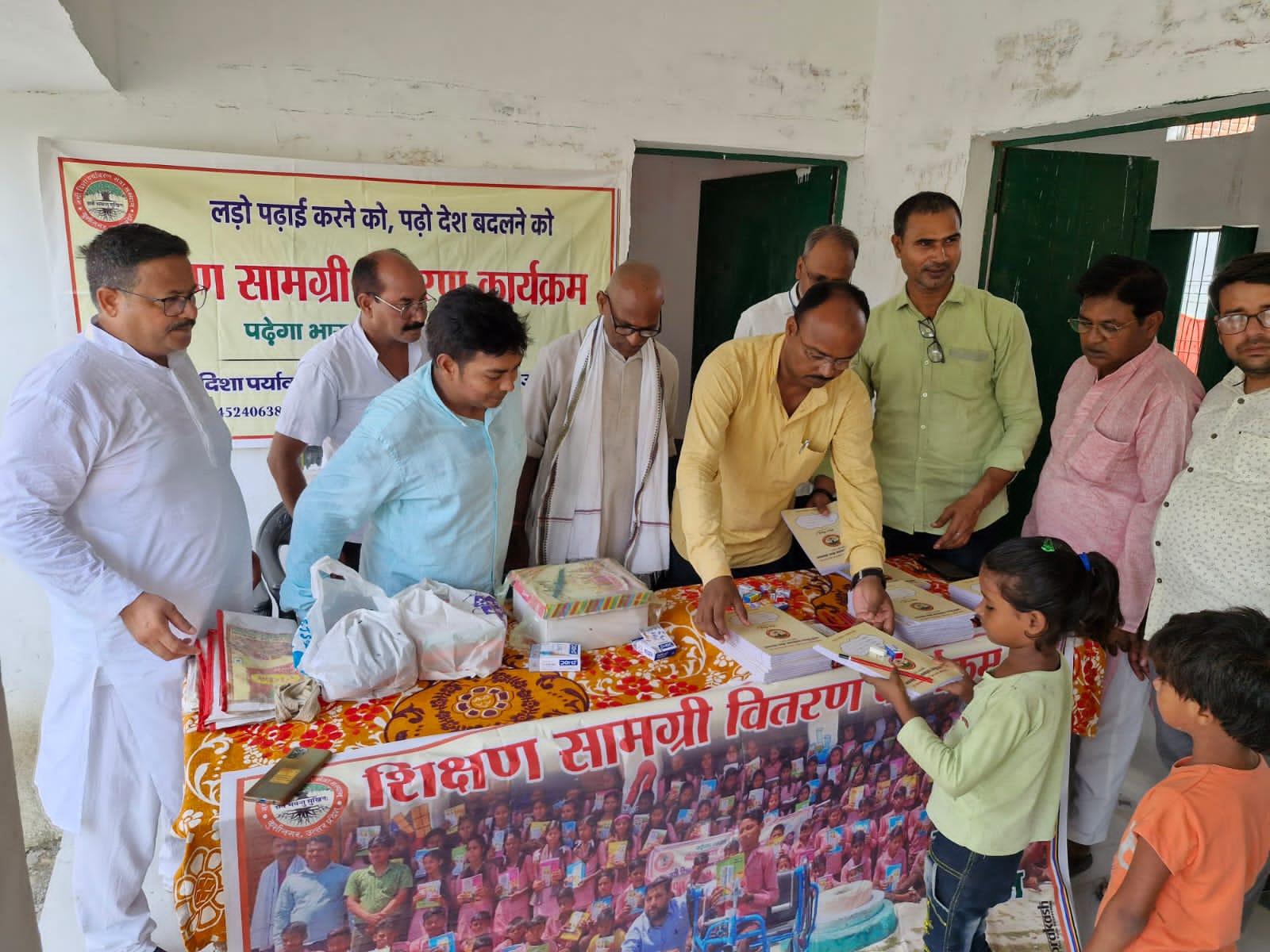 संस्थान द्वारा जन सहयोग से पढ़ेगा भारत, बढ़ेगा भारत अभियान चलाकर जरूरतमंद बच्चों को शिक्षण सामग्री वितरण करने के क्रम में नगर पालिका परिषद कुशीनगर स्थित प्राथमिक विद्यालय भरटोली पकवाइनार में बच्चों को कॉपी, कलम, रबर, पेंसिल, कटर आदि भेंट कर पढ़ने व आगे बढ़ने हेतु प्रेरित किया गया। इस दौरान विद्यालय के प्रधानाध्यापक श्री राजेश शुक्ल जी की लाडली बिटिया राजवी के जन्मदिन पर पौधरोपण भी हुआ और बच्चों में केक व मिठाई भी बटीं।