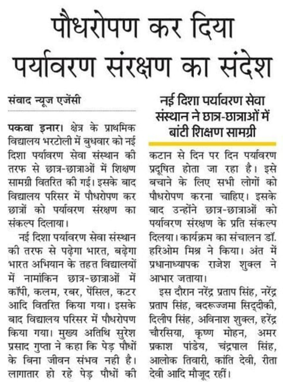 प्राथमिक विद्यालय भरटोली पकवाइनार के बच्चों में वितरित हुई शिक्षण सामग्री। प्रधानाध्यापक श्री राजेश शुक्ल जी की लाडली राजवी के जन्मदिन पर हुआ पौधरोपण।