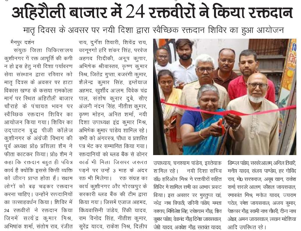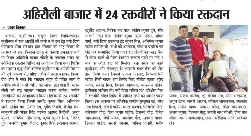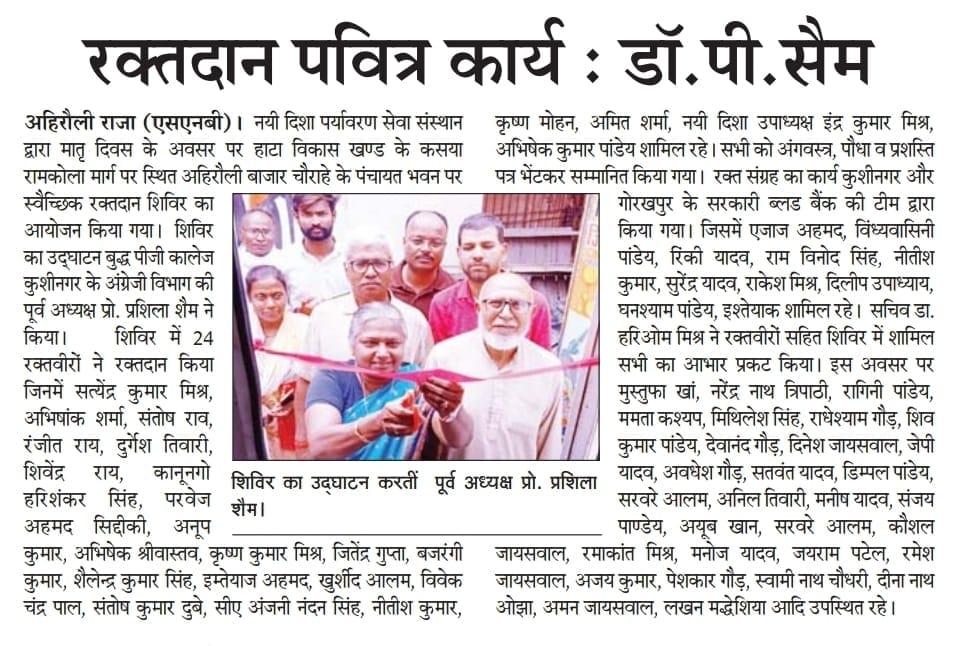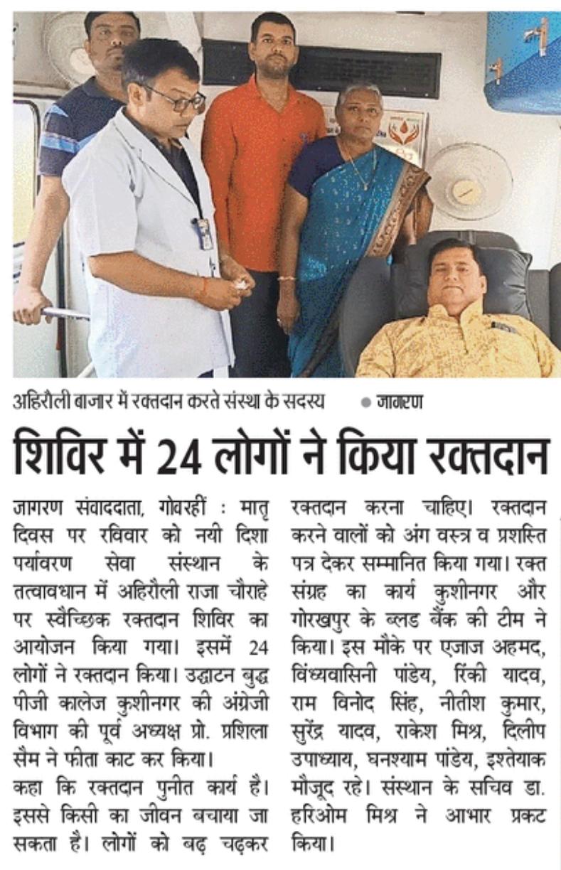 नयी दिशा परिवार की तरफ से रक्तवीरों सहित शिविर में सहभागी सभी को धन्यवाद व आभार।
