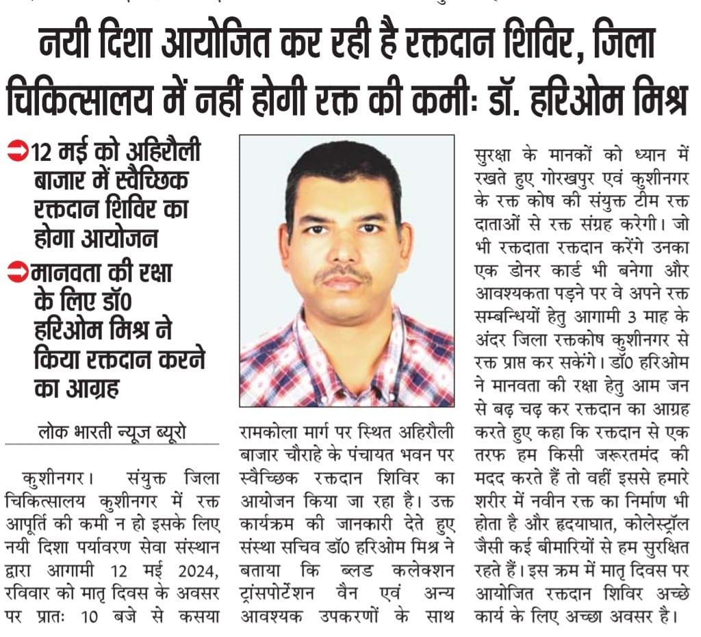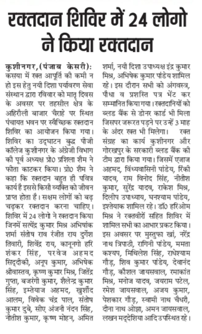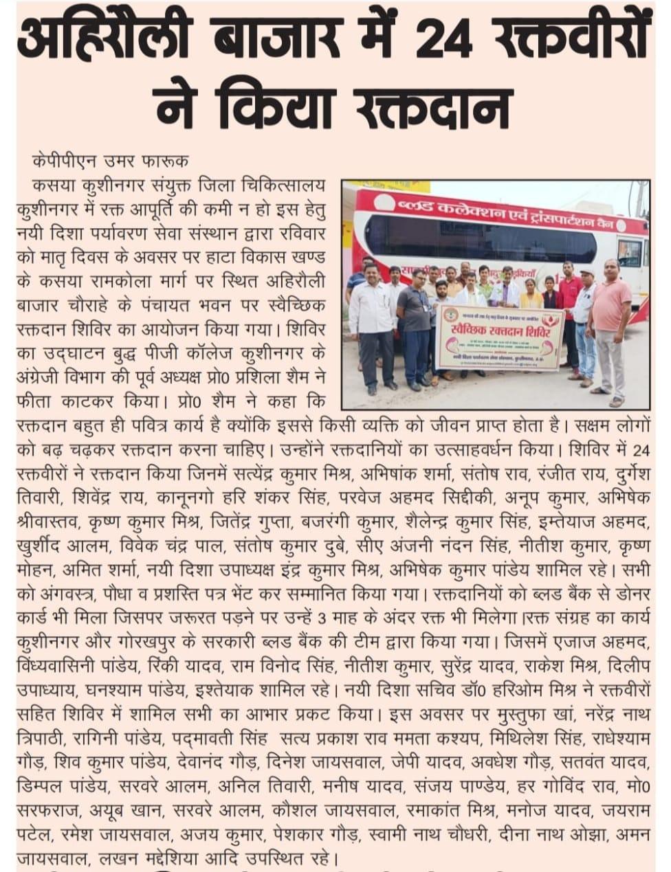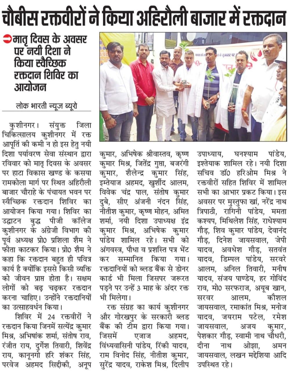 नयी दिशा परिवार की तरफ से रक्तवीरों सहित शिविर में सहभागी सभी को धन्यवाद व आभार।