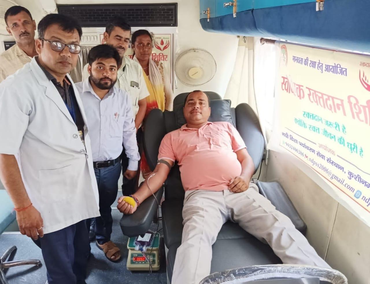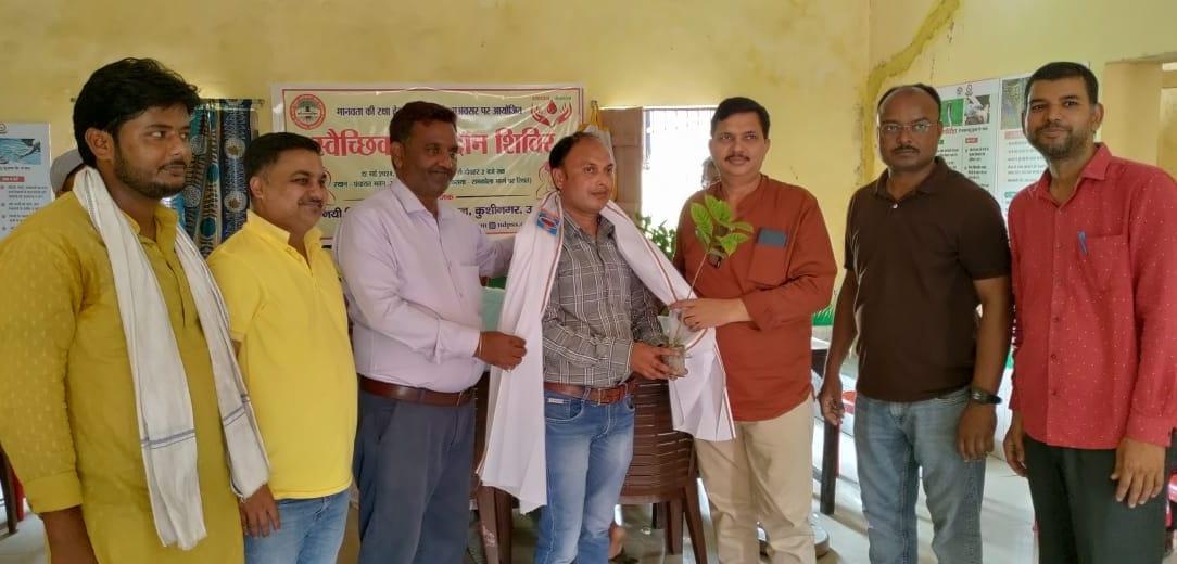 शिविर में 24 रक्तवीरों ने रक्तदान किया जिनमें श्री सत्येंद्र कुमार मिश्र, श्री अभिषांक शर्मा, श्री संतोष राव, श्री रंजीत राय, श्री दुर्गेश तिवारी, श्री शिवेंद्र राय, कानूनगो श्री हरि शंकर सिंह, श्री परवेज अहमद सिद्दीकी, श्री अनूप कुमार, श्री अभिषेक श्रीवास्तव, श्री कृष्ण कुमार मिश्र, श्री जितेंद्र गुप्ता, श्री बजरंगी कुमार, श्री शैलेन्द्र कुमार सिंह, श्री इम्तेयाज अहमद, श्री खुर्शीद आलम, श्री विवेक चंद्र पाल, श्री संतोष कुमार दुबे, नयी दिशा संयुक्त सचिव सीए श्री अंजनी नंदन सिंह, श्री नीतीश कुमार, श्री कृष्ण मोहन, श्री अमित शर्मा, नयी दिशा उपाध्यक्ष श्री इंद्र कुमार मिश्र, श्री अभिषेक कुमार पांडेय शामिल रहे। सभी को अंगवस्त्र, पौधा व प्रशस्ति पत्र भेंट कर सम्मानित किया गया।