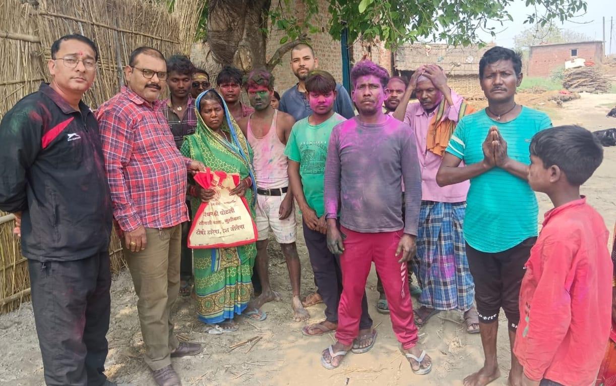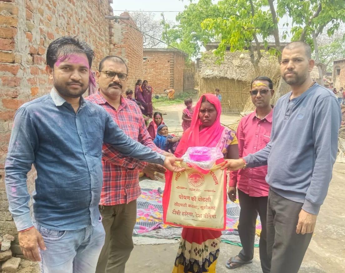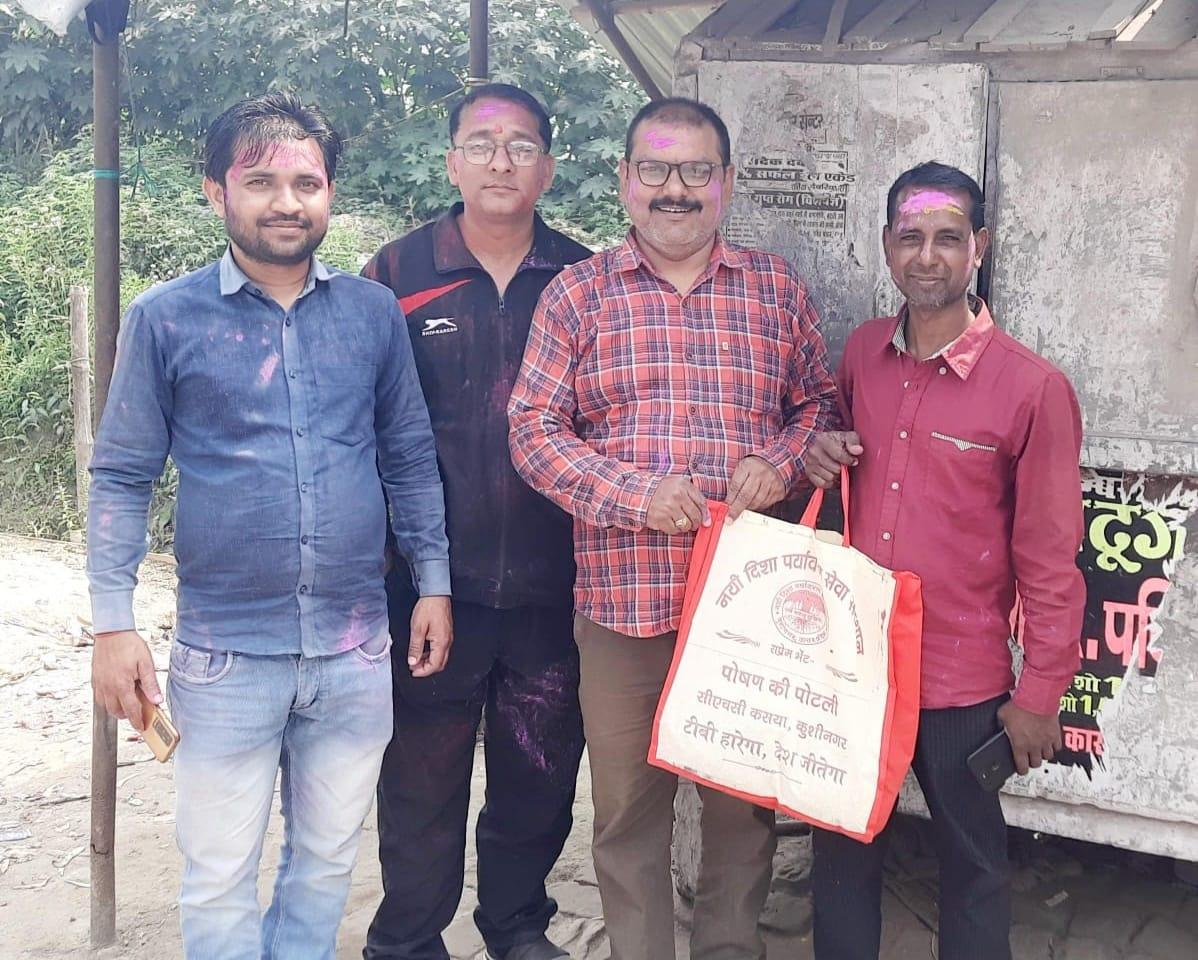 होली के रंग, टीबी मरीजों संग। मरीजों के घर पहुंच पोषण की पोटली व गुलाल भेंट कर उनके साथ होली मनाया गया।