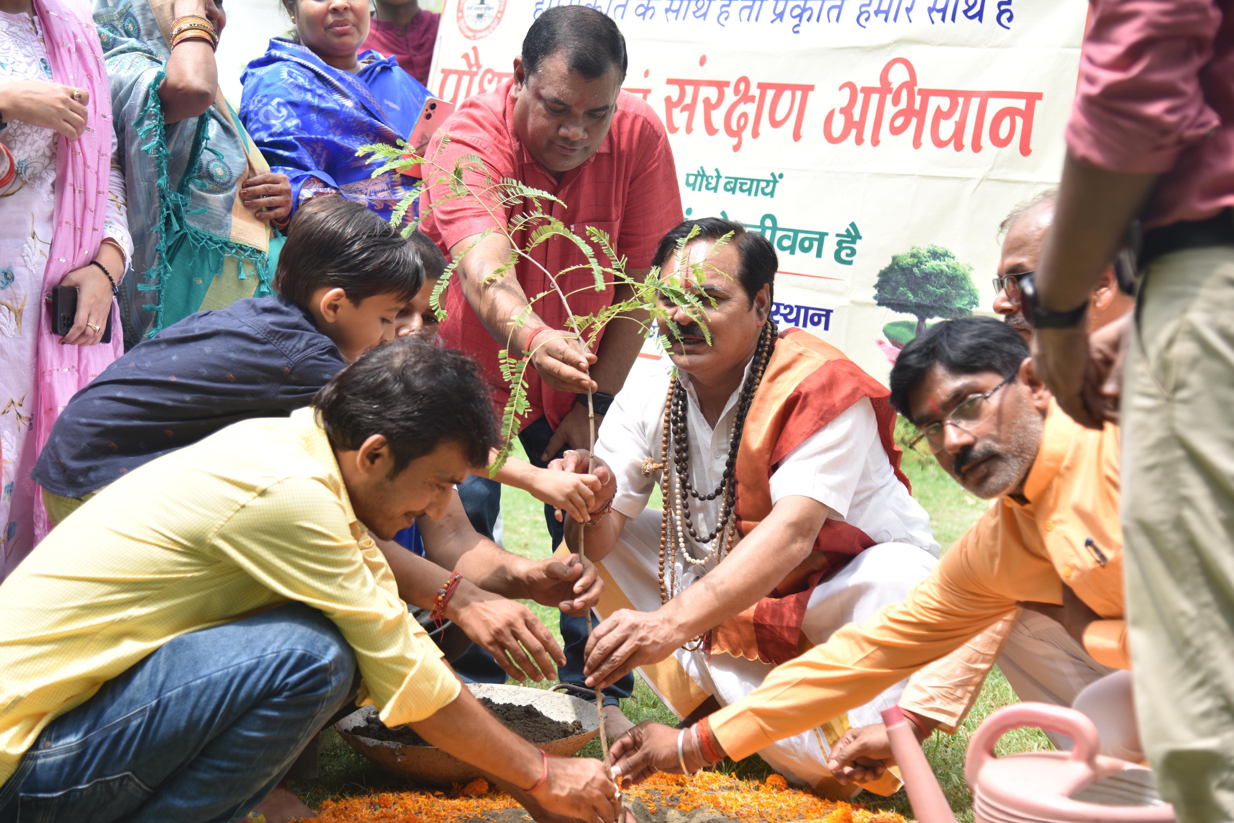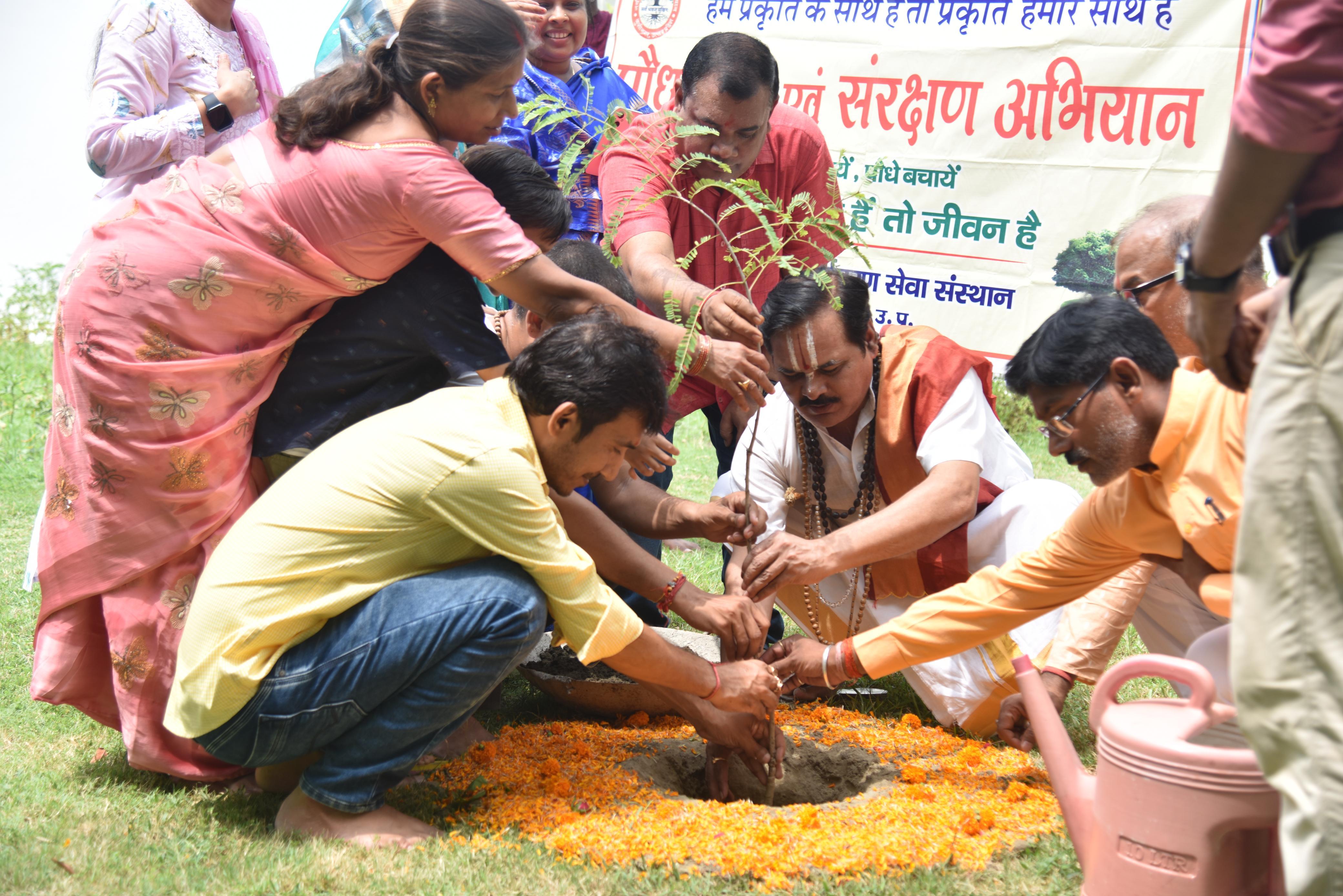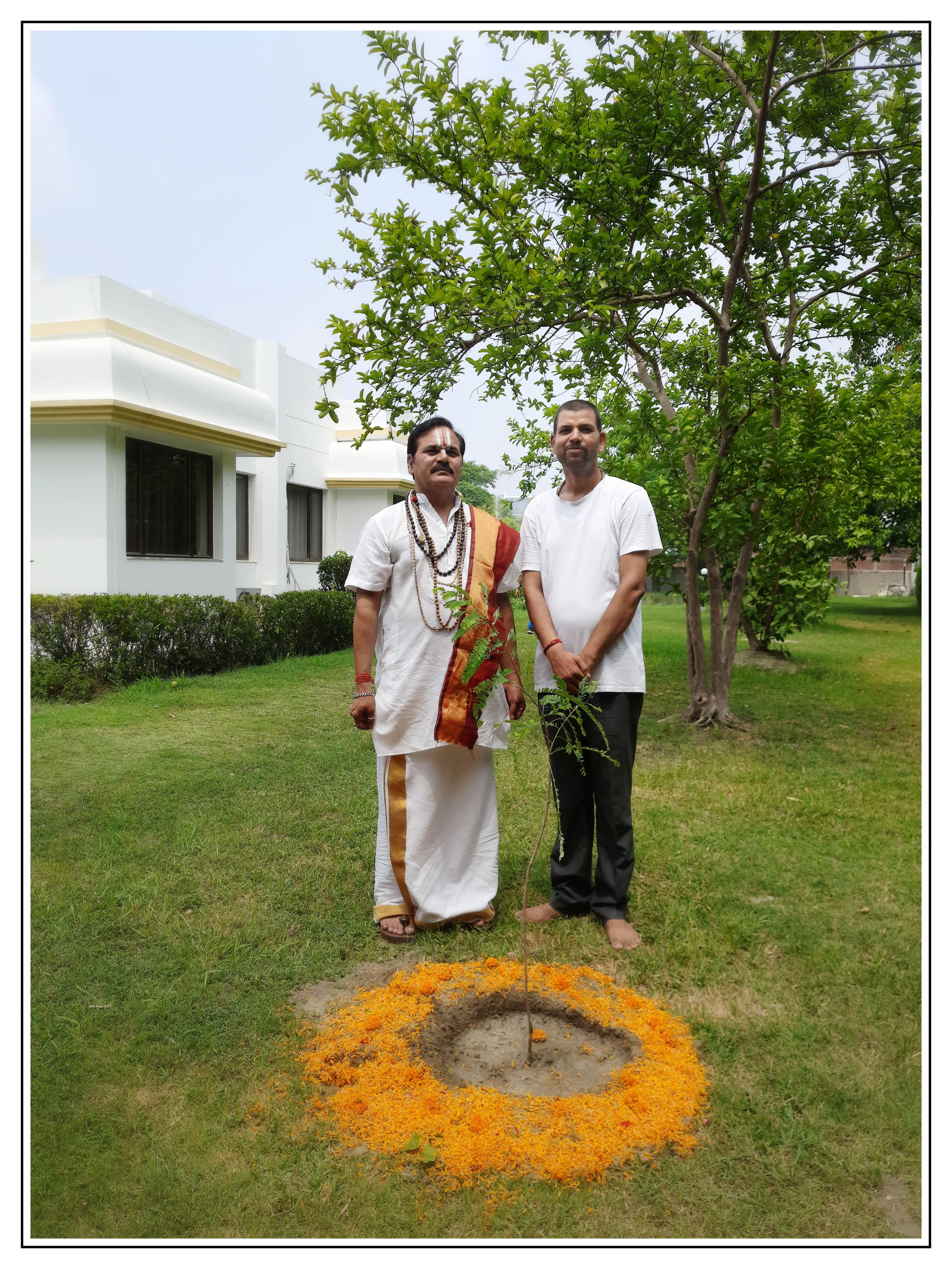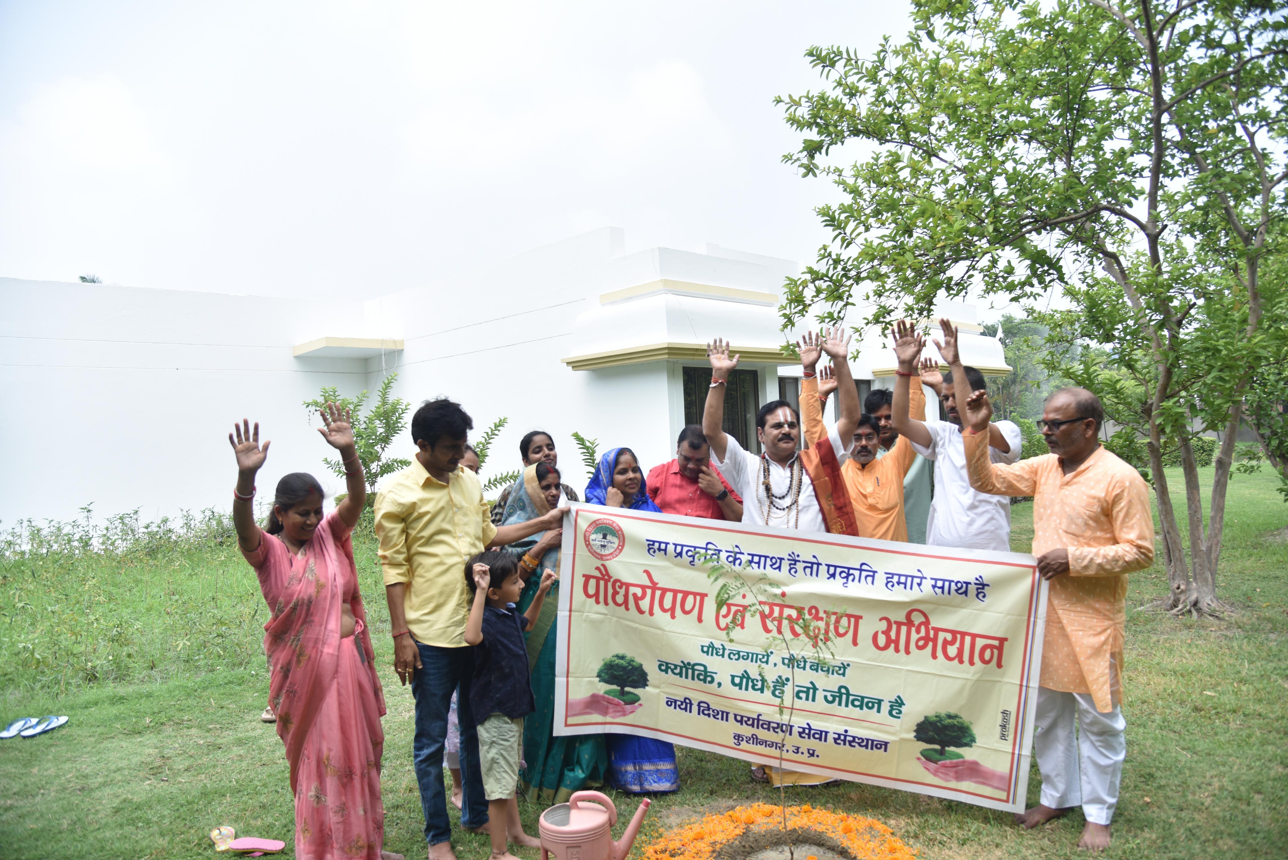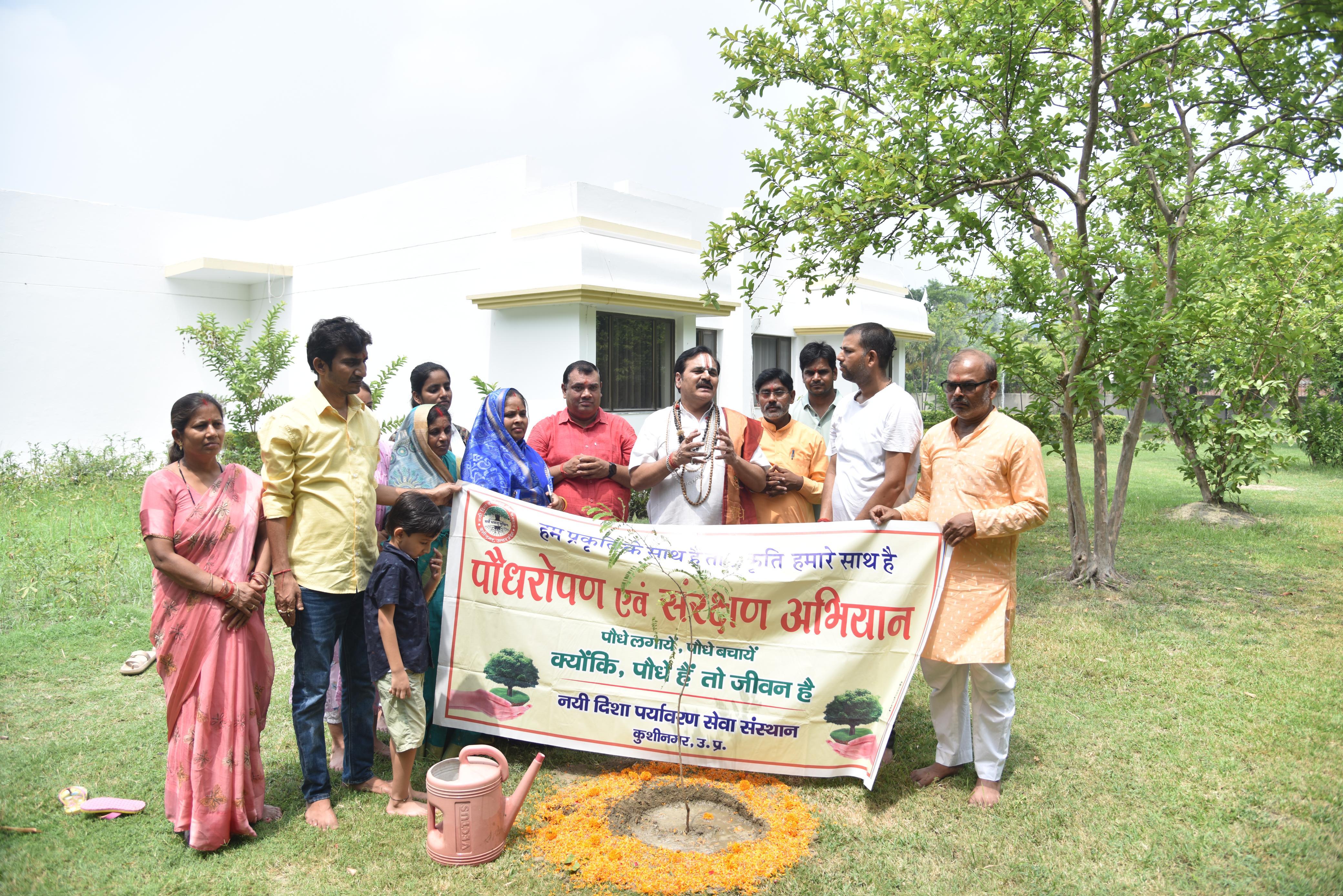 संस्थान द्वारा पर्यावरण संरक्षण हेतु चलाये जा रहे पौधरोपण अभियान के क्रम में कुशीनगर के रॉयल रेजीडेंसी होटल में श्रीमद्भागवत कथा का रसपान करा रहे श्रीधाम अयोध्या से आये कथा वाचक प्रद्युम्न प्रियाचार्य जी महाराज के हाथों होटल परिसर में आँवले के पौधे का रोपण हुआ।