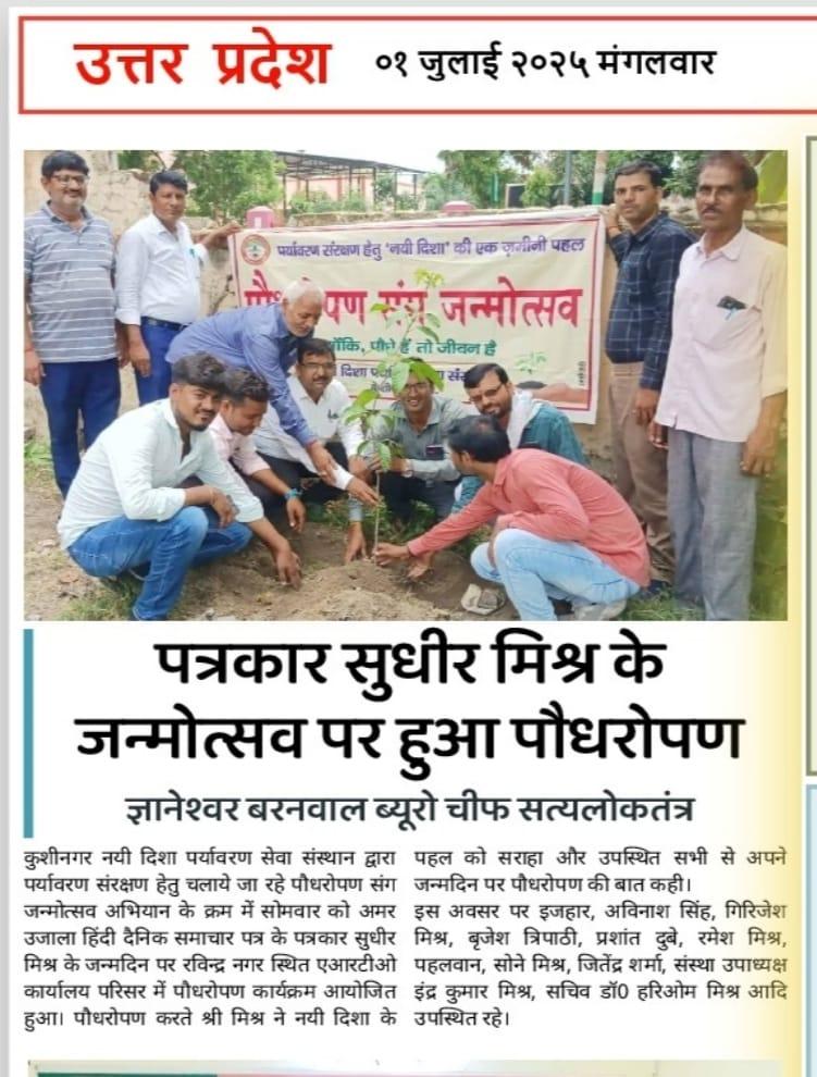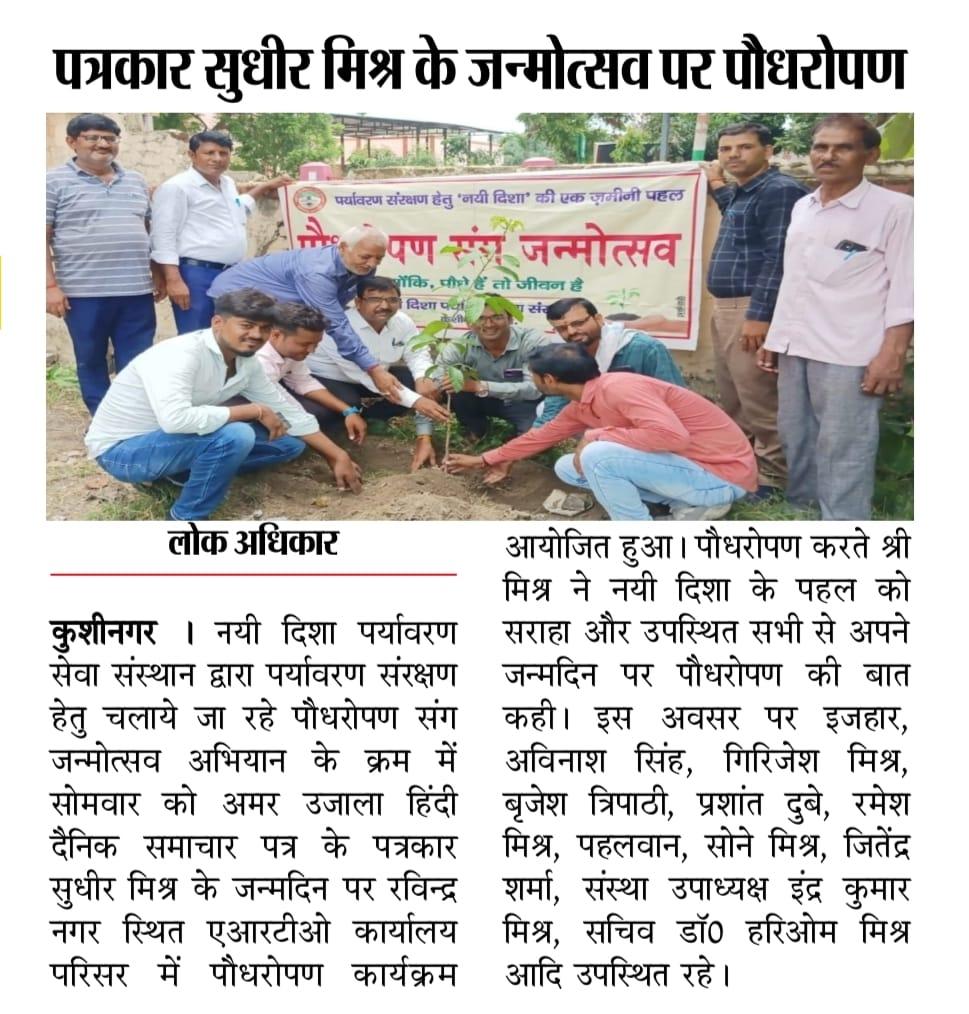 पत्रकार श्री सुधीर मिश्र के जन्मोत्सव पर हुआ पौधरोपण।