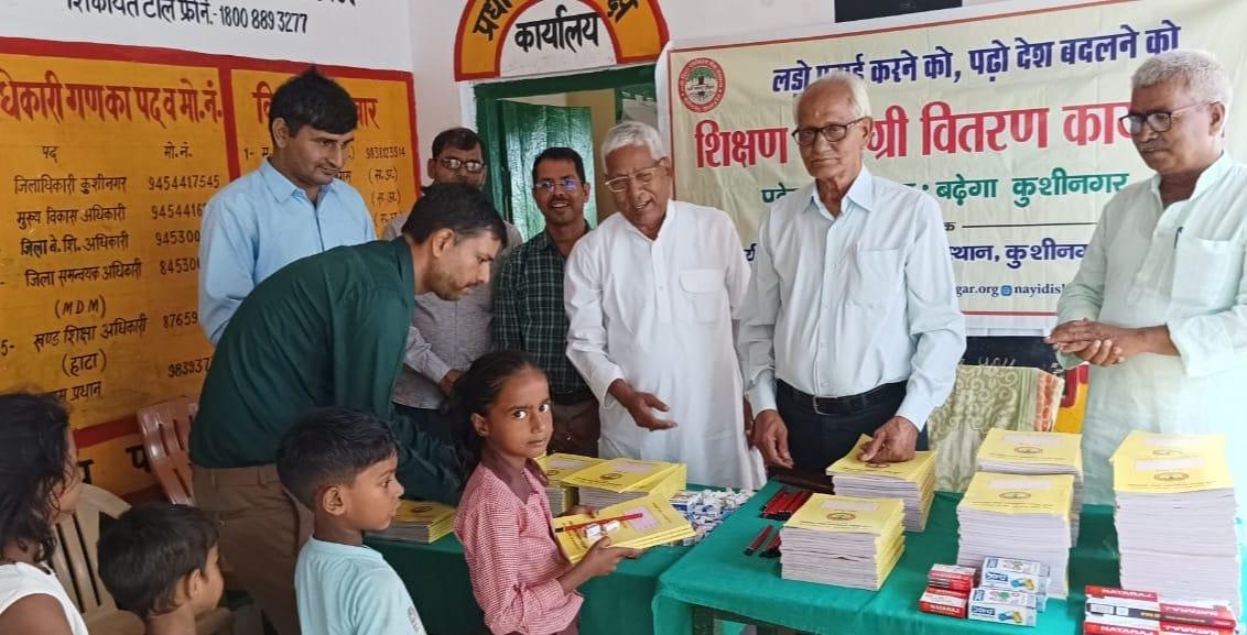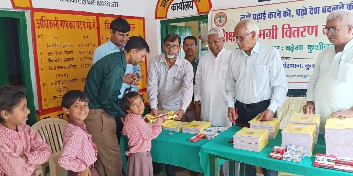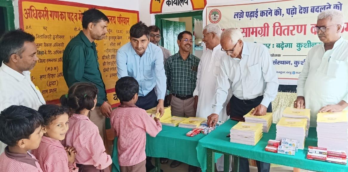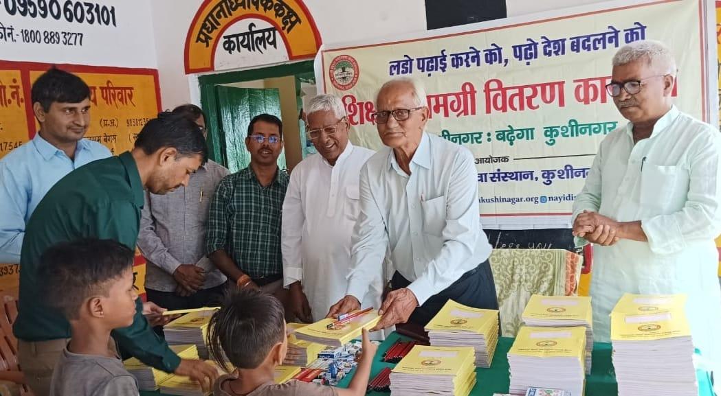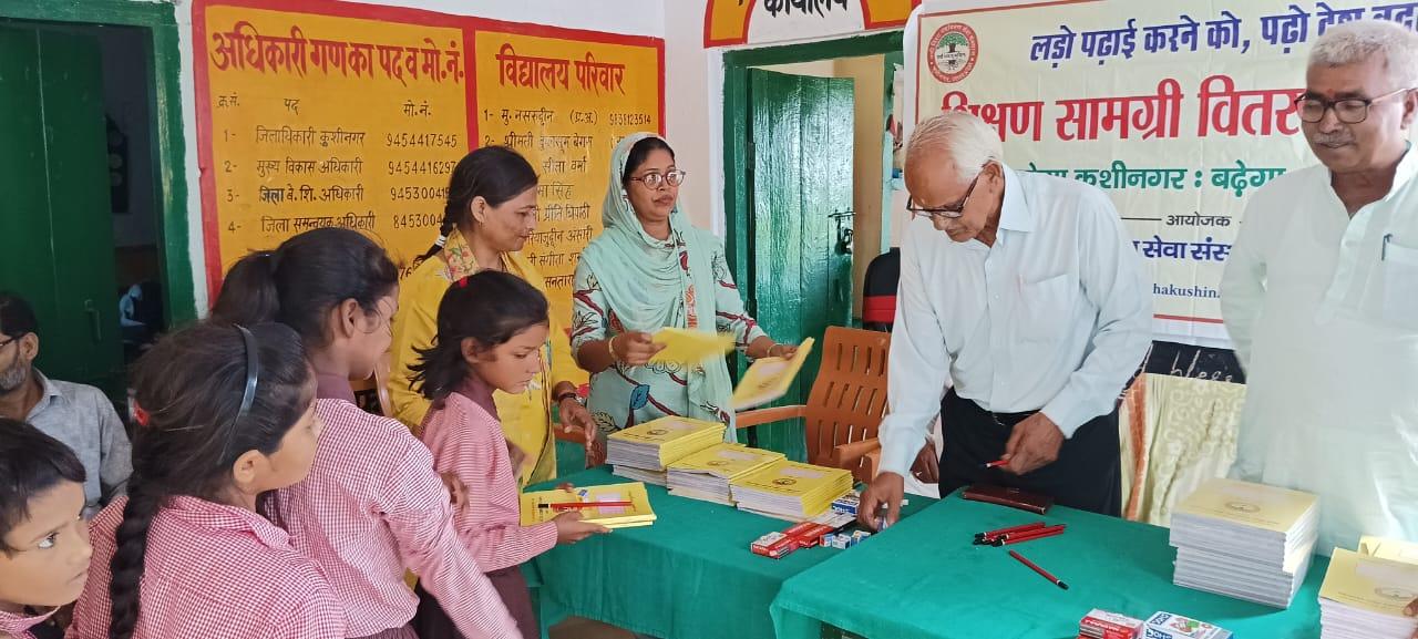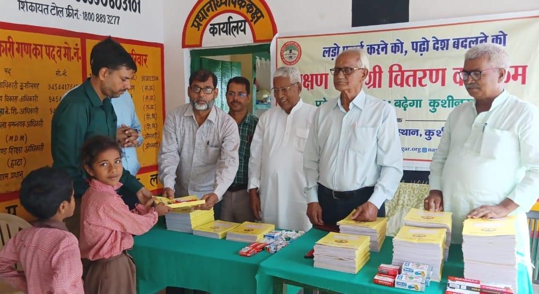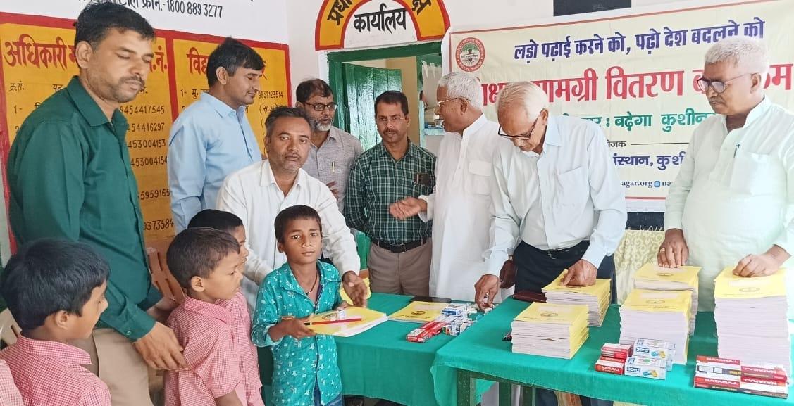 संस्थान द्वारा "पढ़ेगा कुशीनगर, बढ़ेगा कुशीनगर" की भावना के साथ जन सहयोग से चलाये जा रहे शिक्षण सामग्री वितरण कार्यक्रम के क्रम में हाटा विकास खण्ड स्थित प्राथमिक विद्यालय अहिरौली राय में विद्यार्थियों को कॉपी, कलम, पेंसिल, रबर, कटर आदि शिक्षण सामग्री भेंट कर पढ़ने व आगे बढ़ने हेतु प्रोत्साहित किया गया।
