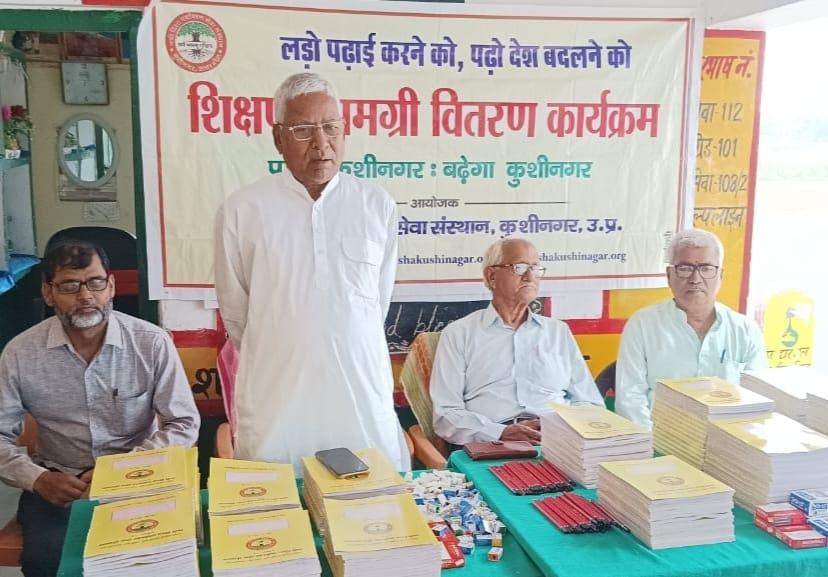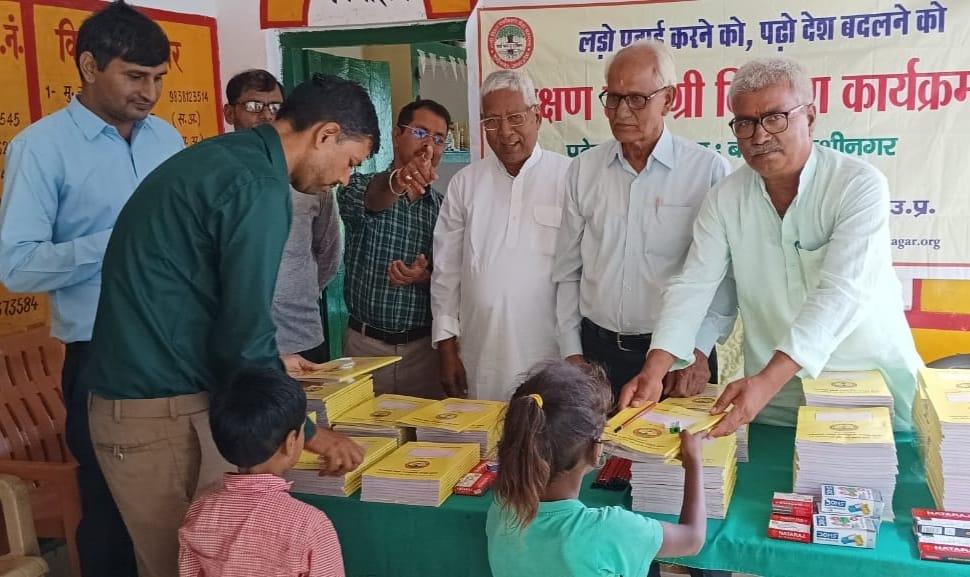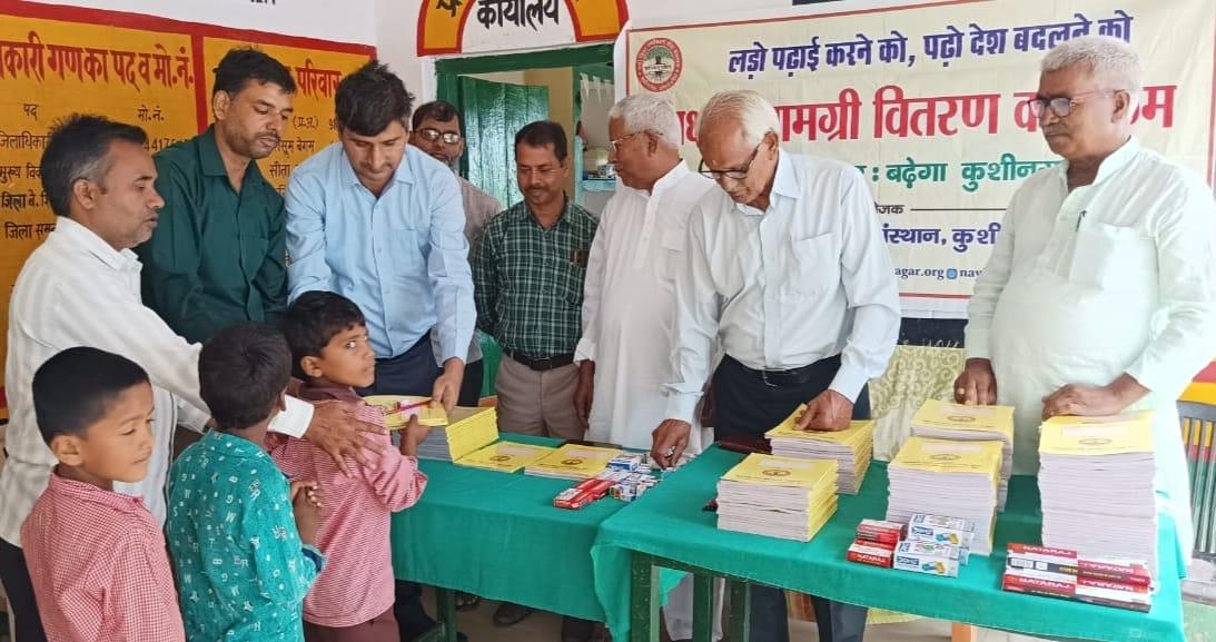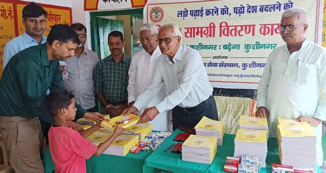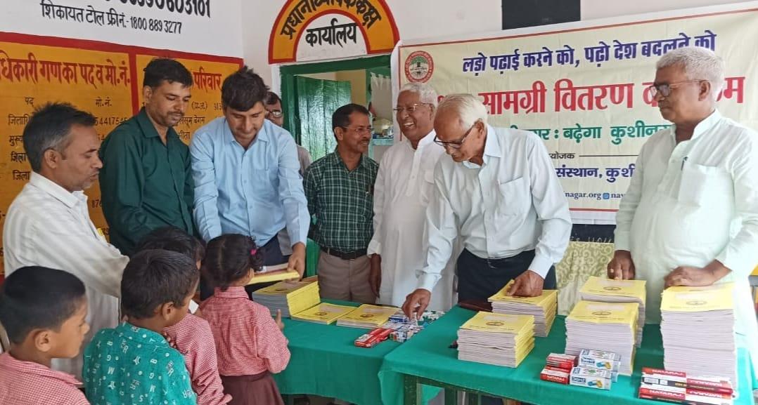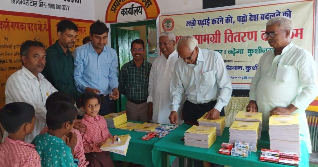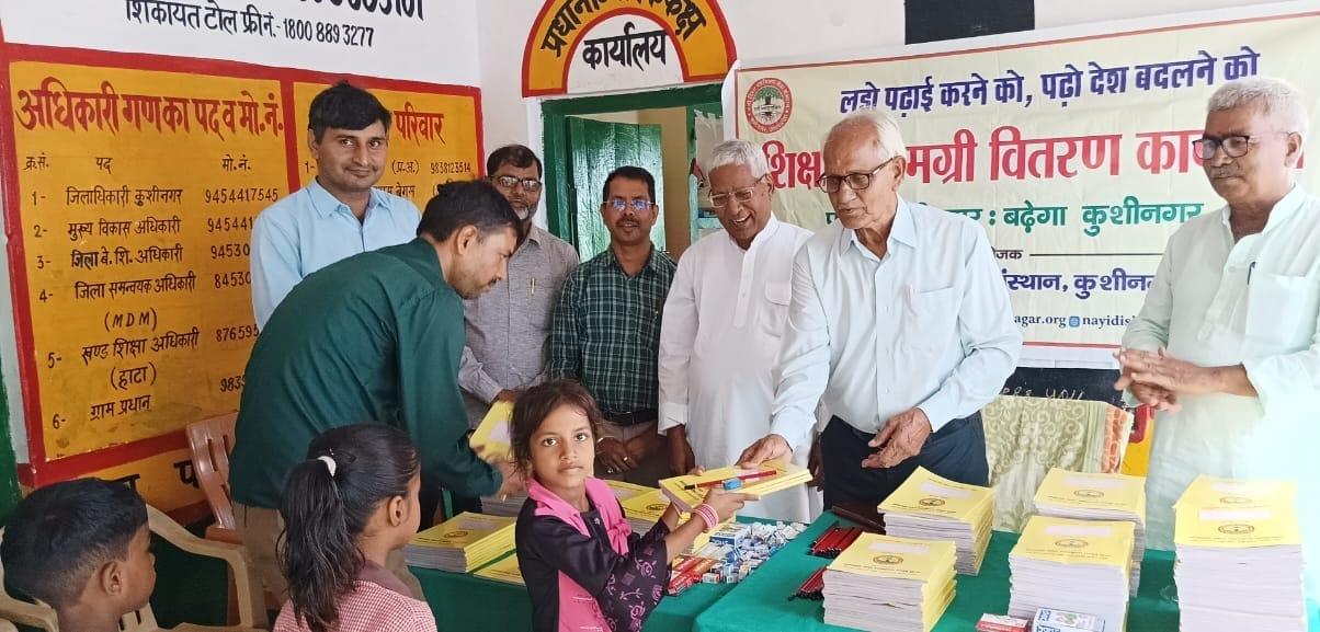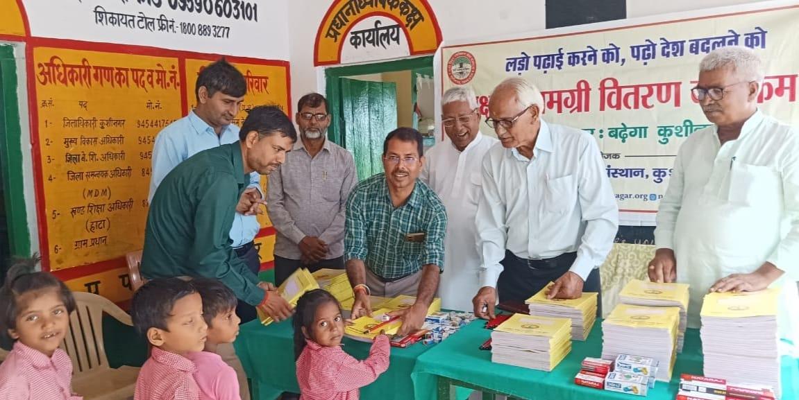 संस्थान द्वारा "पढ़ेगा कुशीनगर, बढ़ेगा कुशीनगर" की भावना के साथ जन सहयोग से चलाये जा रहे शिक्षण सामग्री वितरण कार्यक्रम के क्रम में हाटा विकास खण्ड स्थित प्राथमिक विद्यालय अहिरौली राय में विद्यार्थियों को कॉपी, कलम, पेंसिल, रबर, कटर आदि शिक्षण सामग्री भेंट कर पढ़ने व आगे बढ़ने हेतु प्रोत्साहित किया गया।