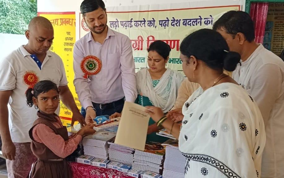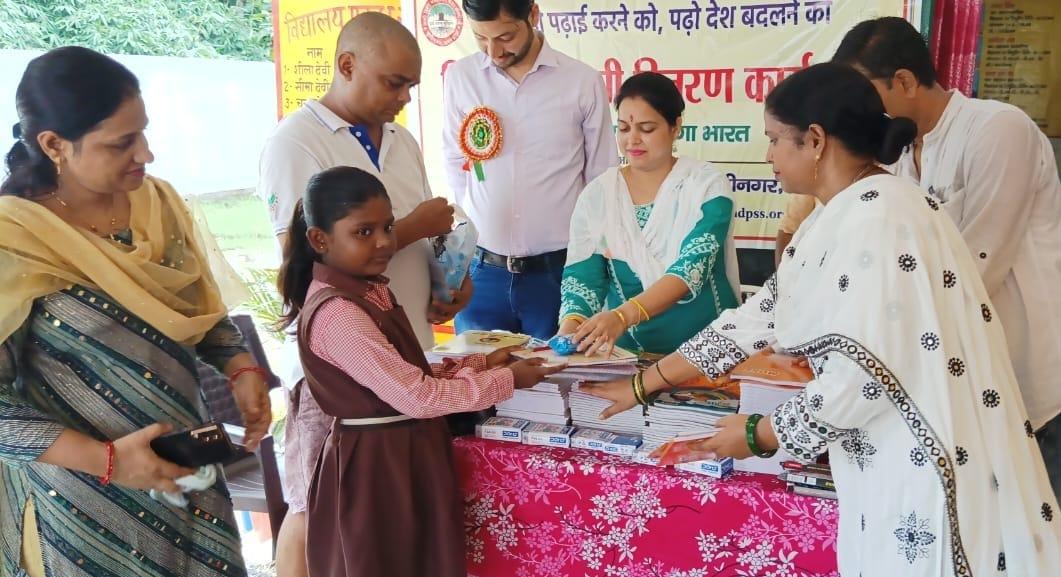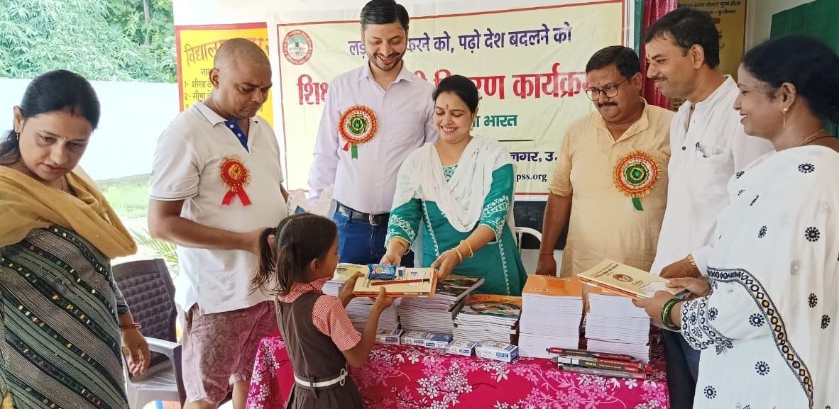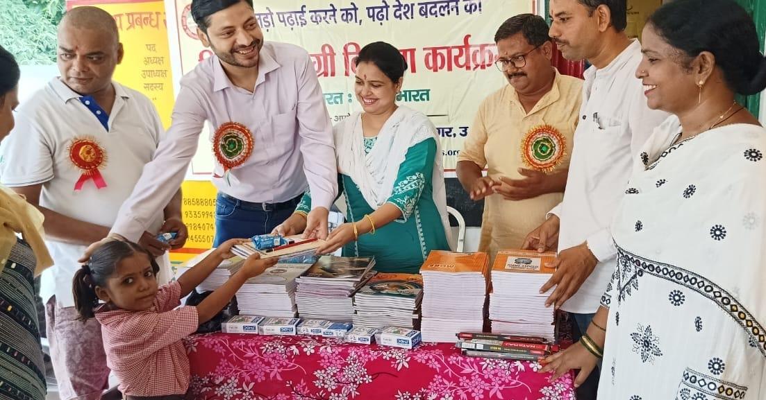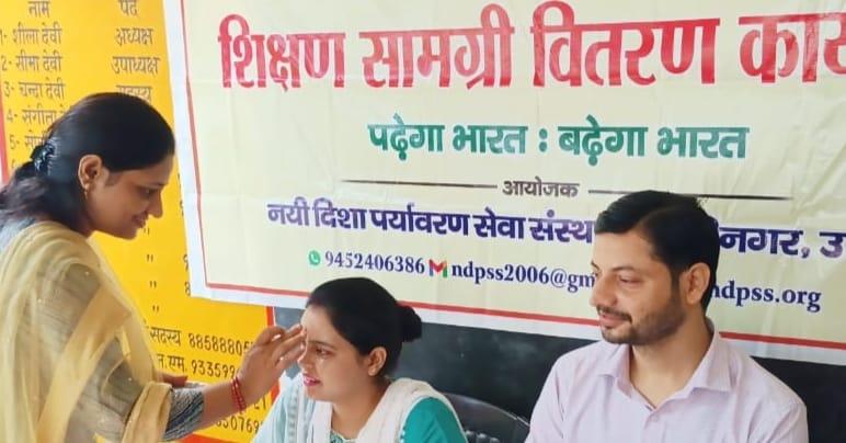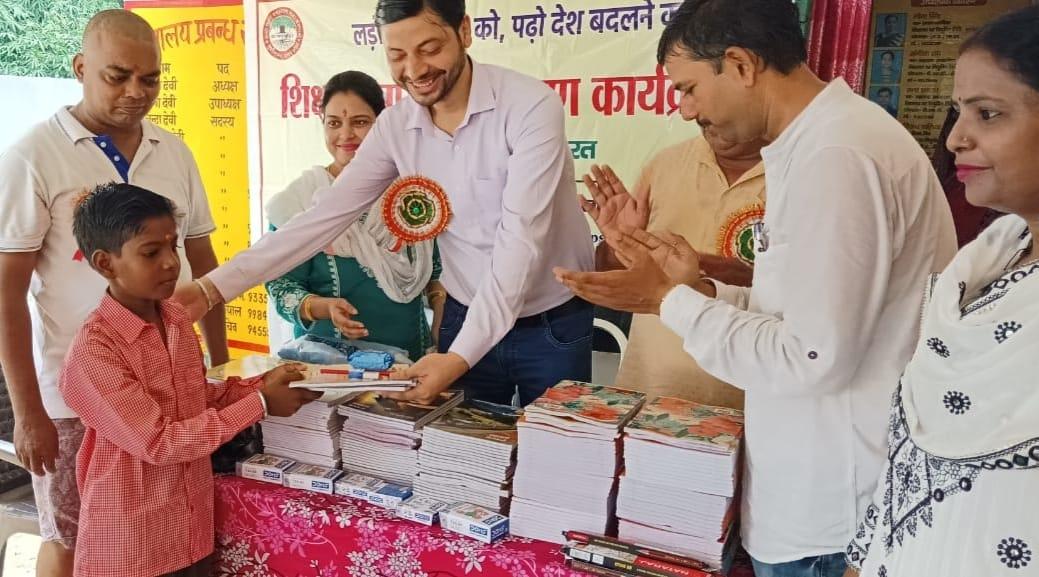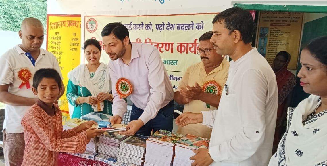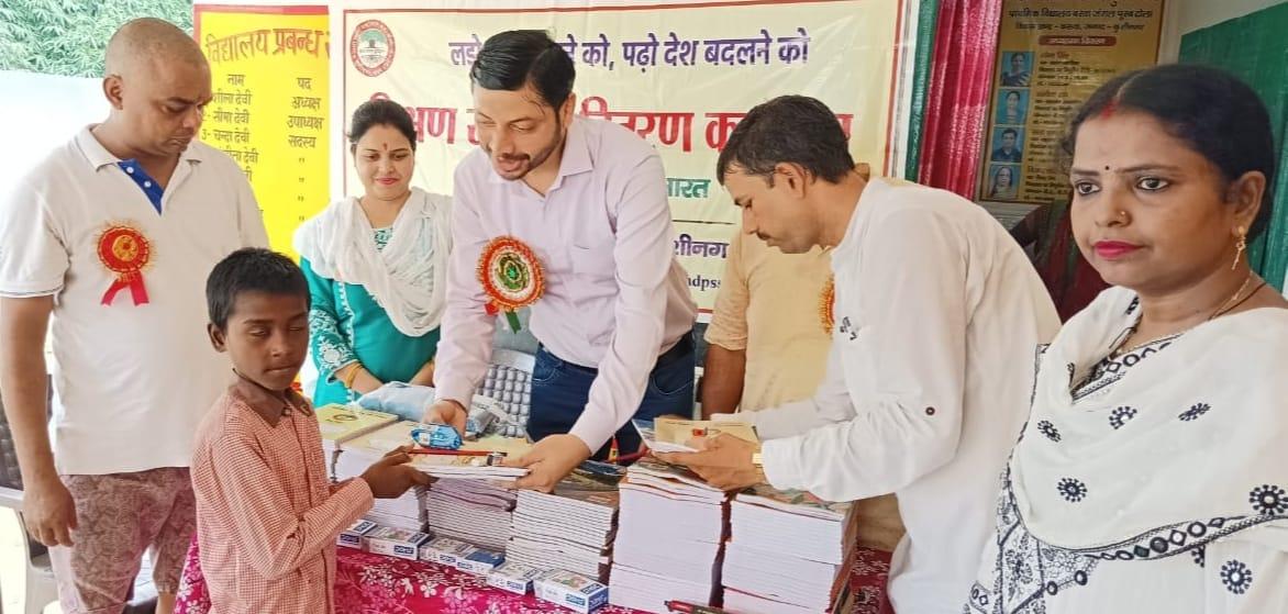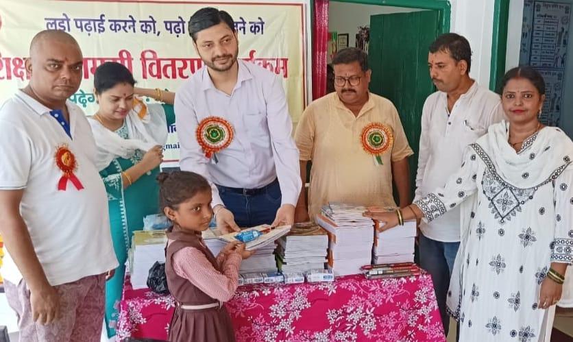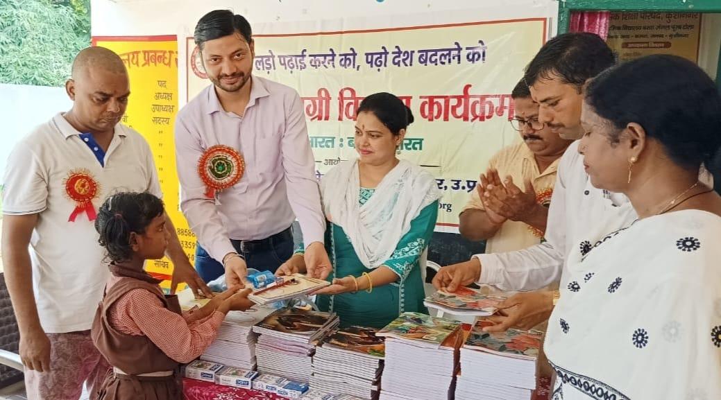 संस्थान द्वारा जन सहयोग से सरकारी विद्यालयों में पढ़ने वाले जरूरतमंद बच्चों को शिक्षण सामग्री वितरण करने के क्रम में नगर पालिका परिषद कुशीनगर स्थित प्राथमिक विद्यालय बरवां जंगल पूरब टोला में कार्यक्रम का आयोजन कर सभी बच्चों को कॉपी, कलम, रबर, पेंसिल, कटर आदि शिक्षण सामग्री भेंट कर पढ़ने व आगे बढ़ने हेतु प्रेरित किया गया एवं पर्यावरण संरक्षण के निमित्त नयी दिशा संयुक्त सचिव सीए श्री अंजनी नंदन सिंह की बेटियों दिशा व दृष्टि के जन्मोत्सव पर विद्यालय परिसर में पौधरोपण भी हुआ।