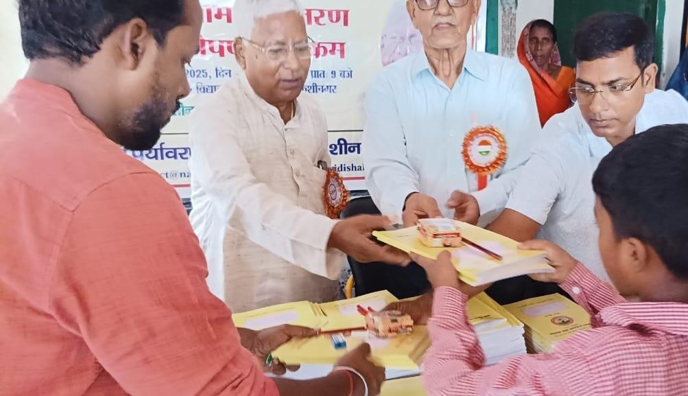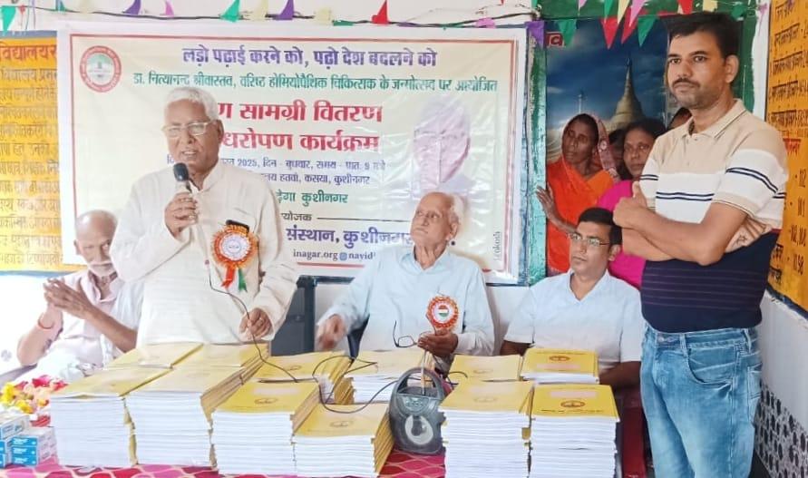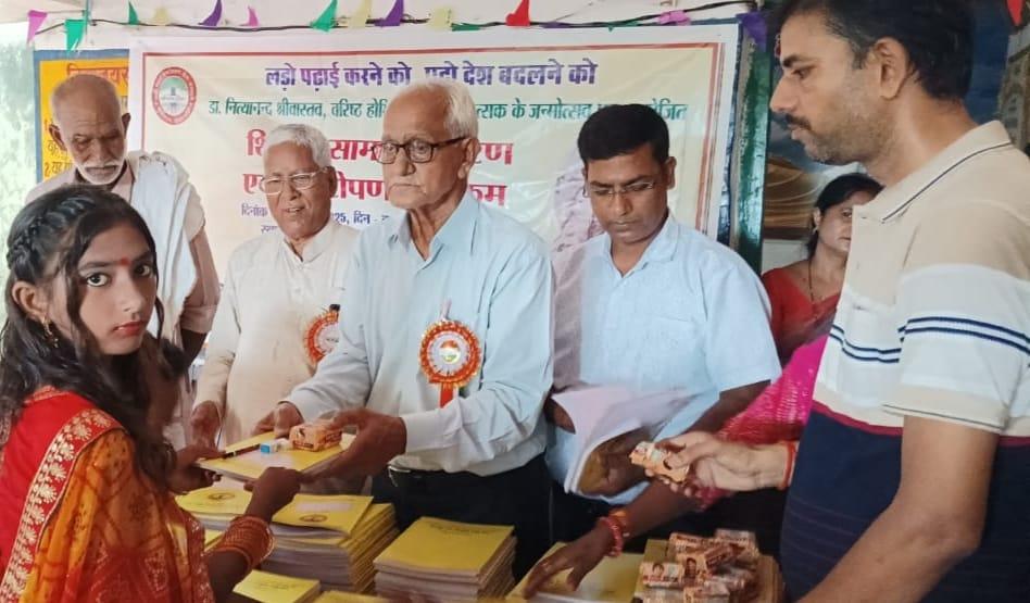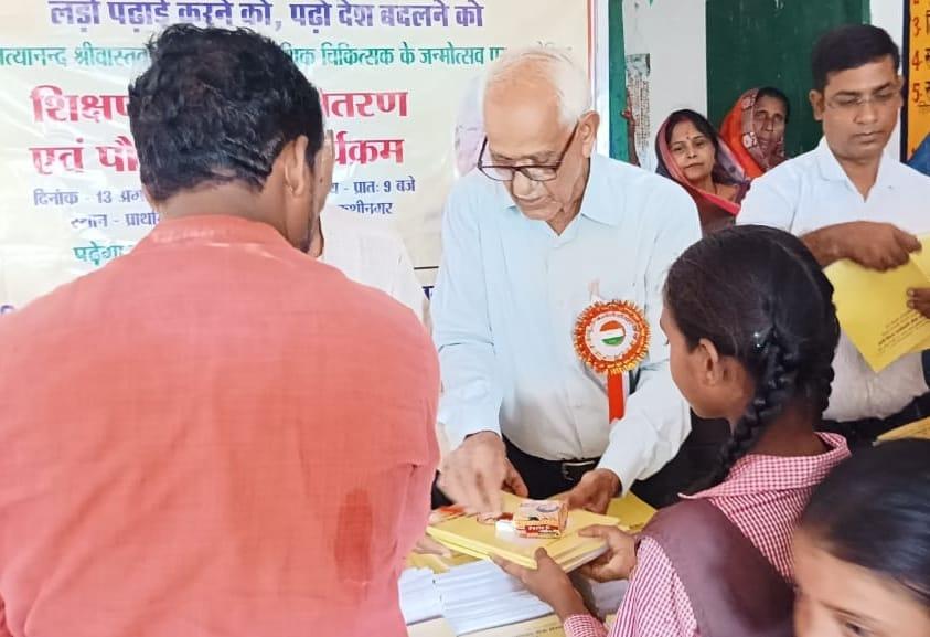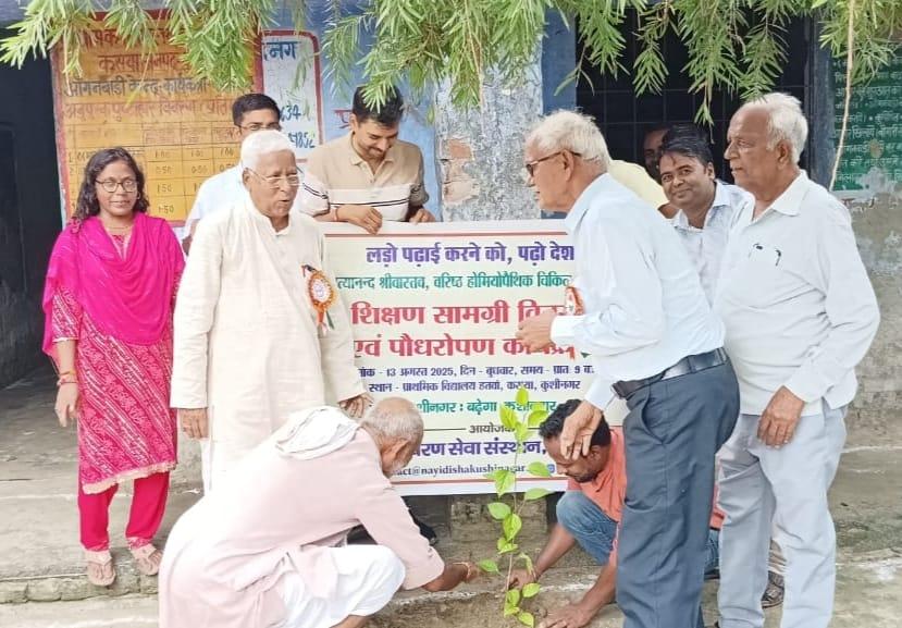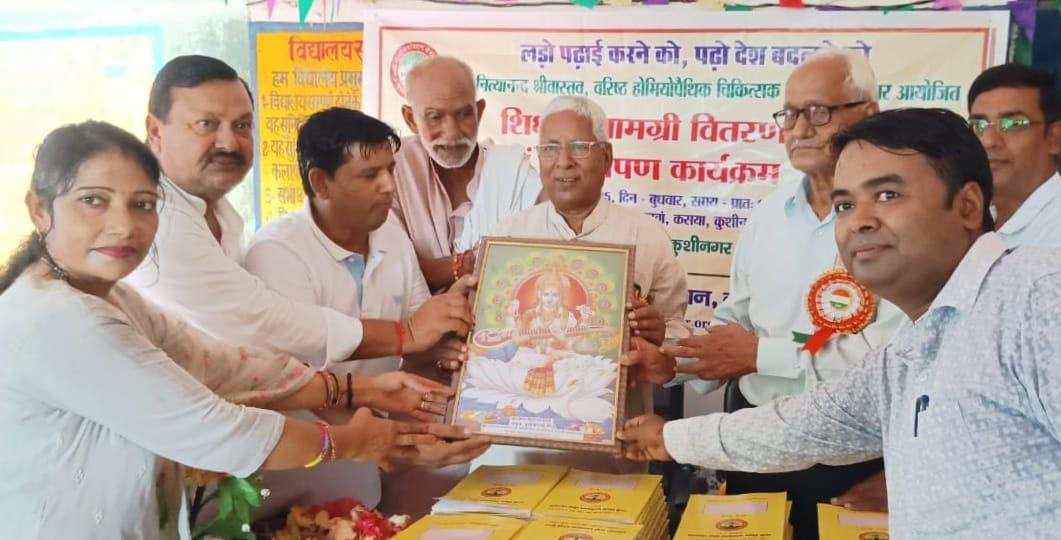 संस्थान द्वारा पढ़ेगा कुशीनगर, बढ़ेगा कुशीनगर की भावना के साथ जन सहयोग से चलाये जा रहे शिक्षण सामग्री वितरण कार्यक्रम के क्रम में कसया विकास खण्ड स्थित प्राथमिक विद्यालय हतवाँ में वरिष्ठ होमियोपैथिक चिकित्सक डा0 नित्यानन्द श्रीवास्तव के जन्मदिन पर आपके सहयोग से विद्यार्थियों को कॉपी, पेंसिल, रबर, कटर आदि शिक्षण सामग्री भेंट कर पढ़ने व आगे बढ़ने हेतु प्रोत्साहित किया गया। इस दौरान पौधरोपण संग जन्मोत्सव अभियान के अंतर्गत विद्यालय परिसर एवं ग्राम सभा में पौधरोपण भी हुआ। बच्चियों ने सांस्कृतिक कार्यक्रम भी प्रस्तुत किया।