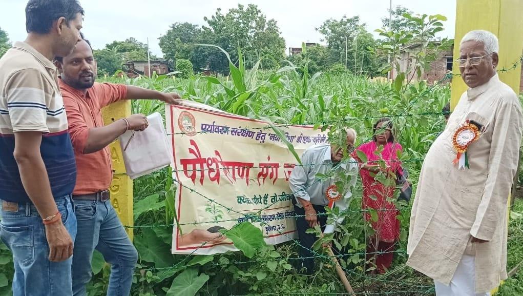 प्राथमिक विद्यालय हतवाँ में शिक्षण सामग्री वितरण एवं पौधरोपण का आयोजन।