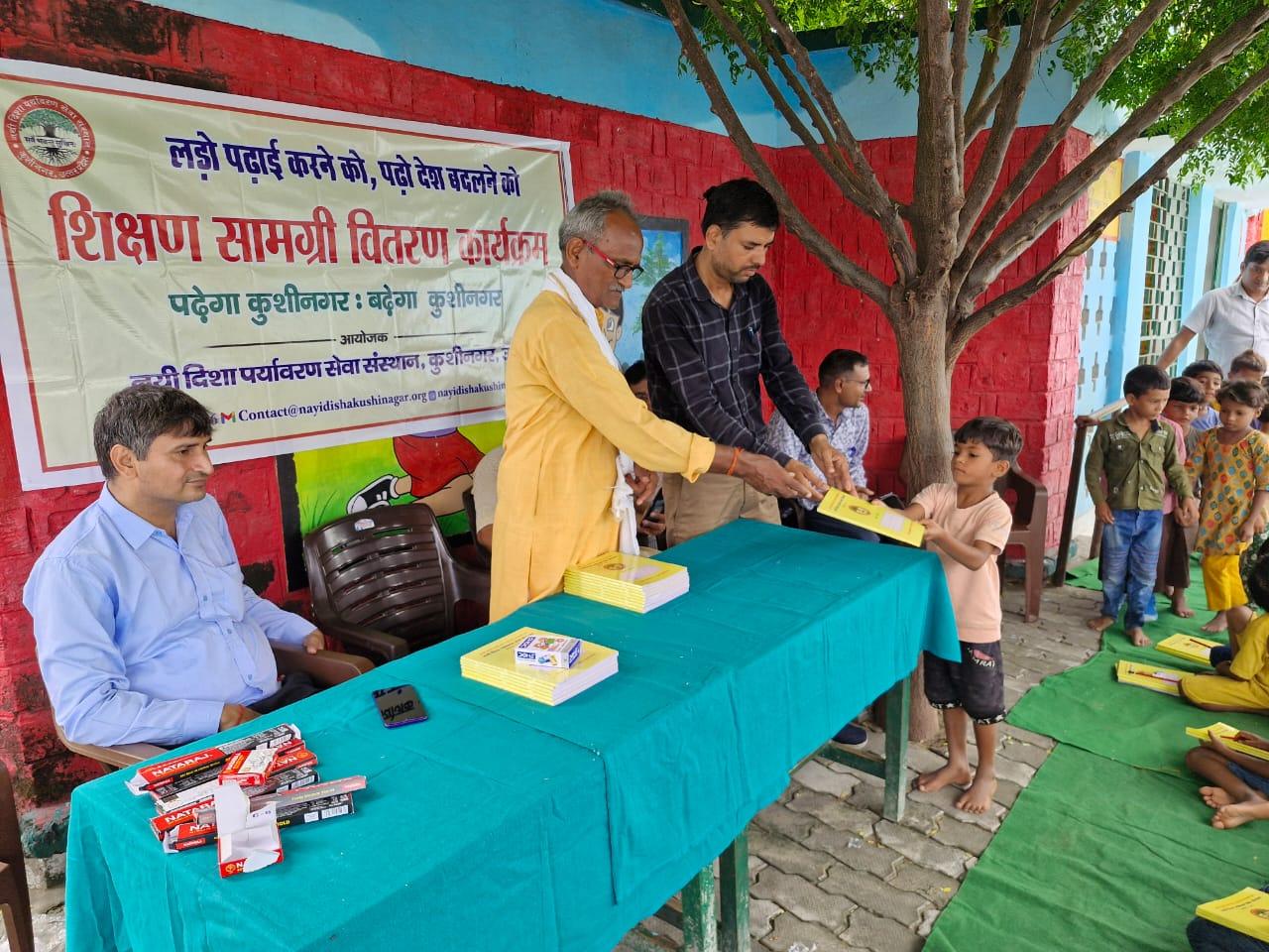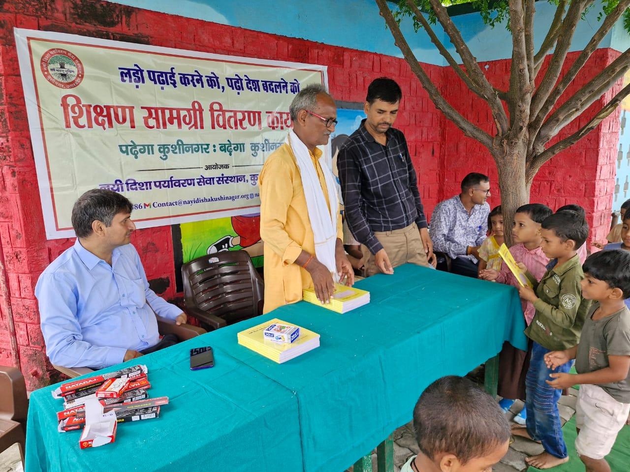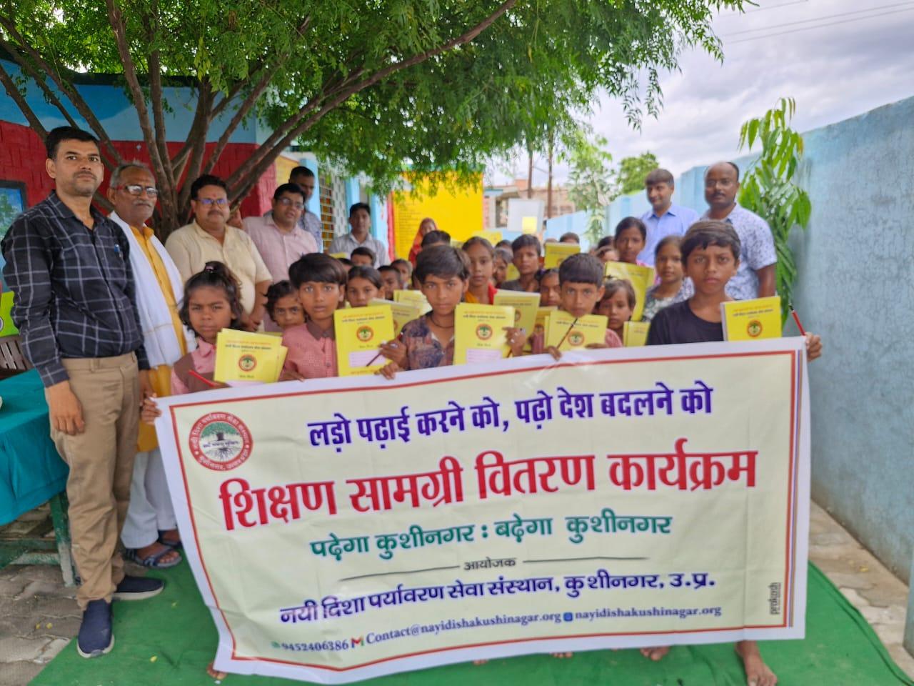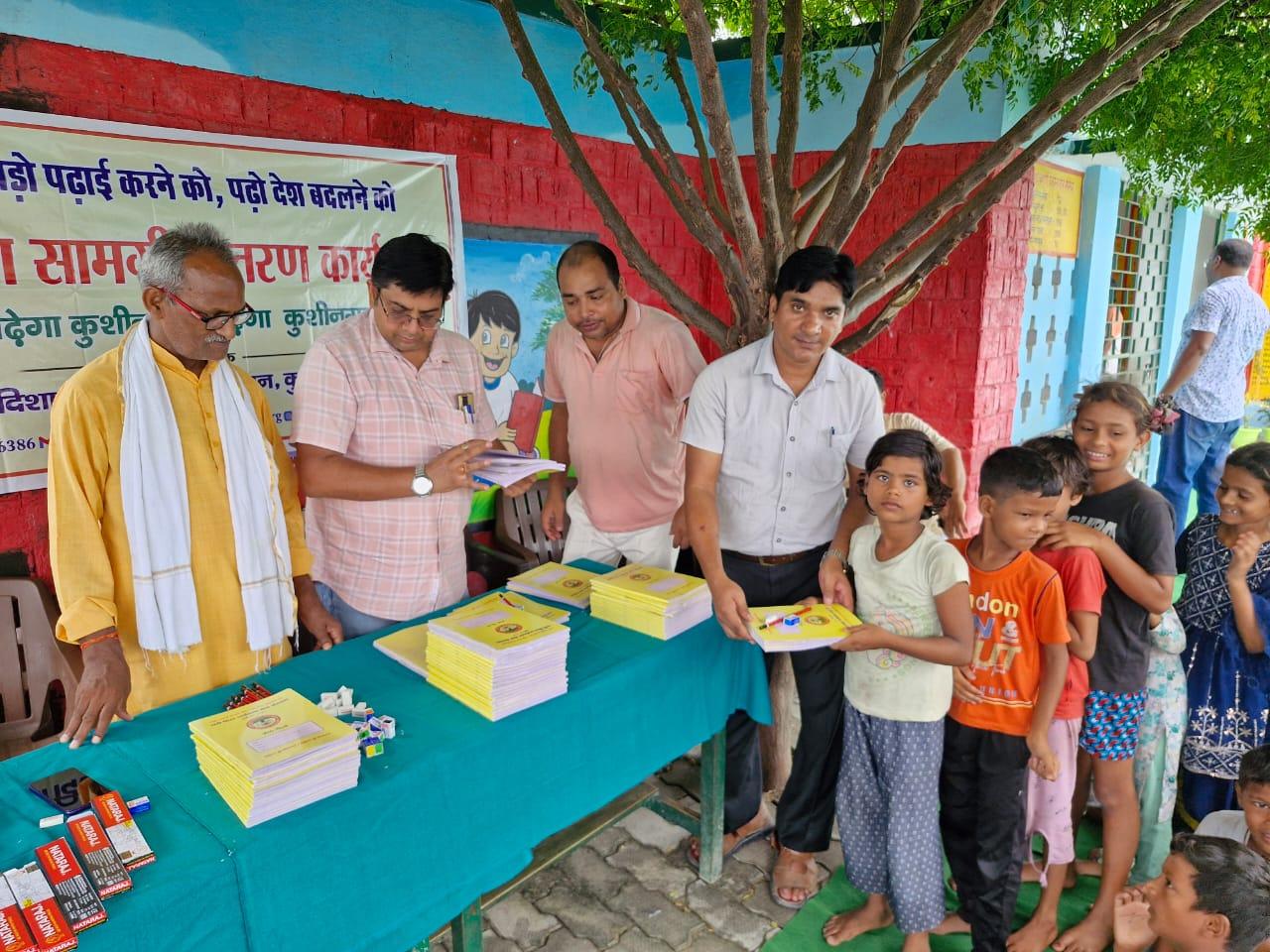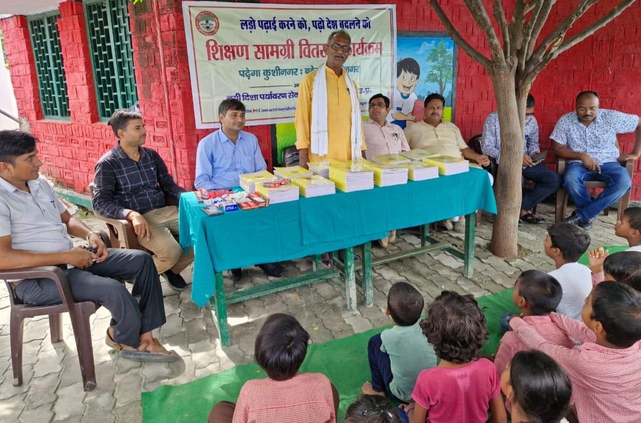 संस्थान द्वारा "पढ़ेगा कुशीनगर, बढ़ेगा कुशीनगर" की भावना के साथ जन सहयोग से चलाये जा रहे शिक्षण सामग्री वितरण कार्यक्रम के क्रम में नगर पालिका परिषद कुशीनगर स्थित प्राथमिक विद्यालय नरकटिया खुर्द में विद्यार्थियों को कॉपी, पेंसिल, रबर, कटर आदि शिक्षण सामग्री भेंट कर पढ़ने व आगे बढ़ने हेतु प्रोत्साहित किया गया।