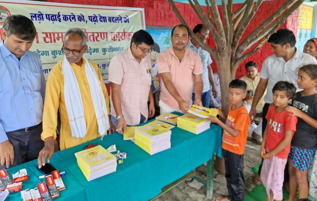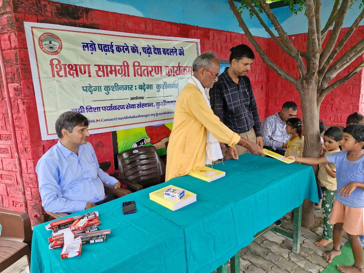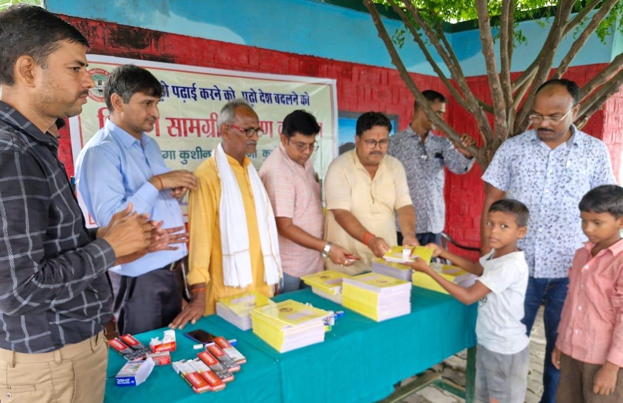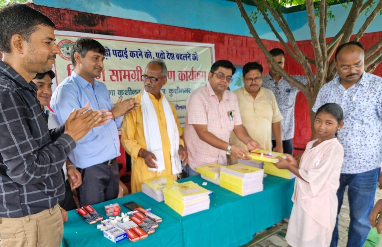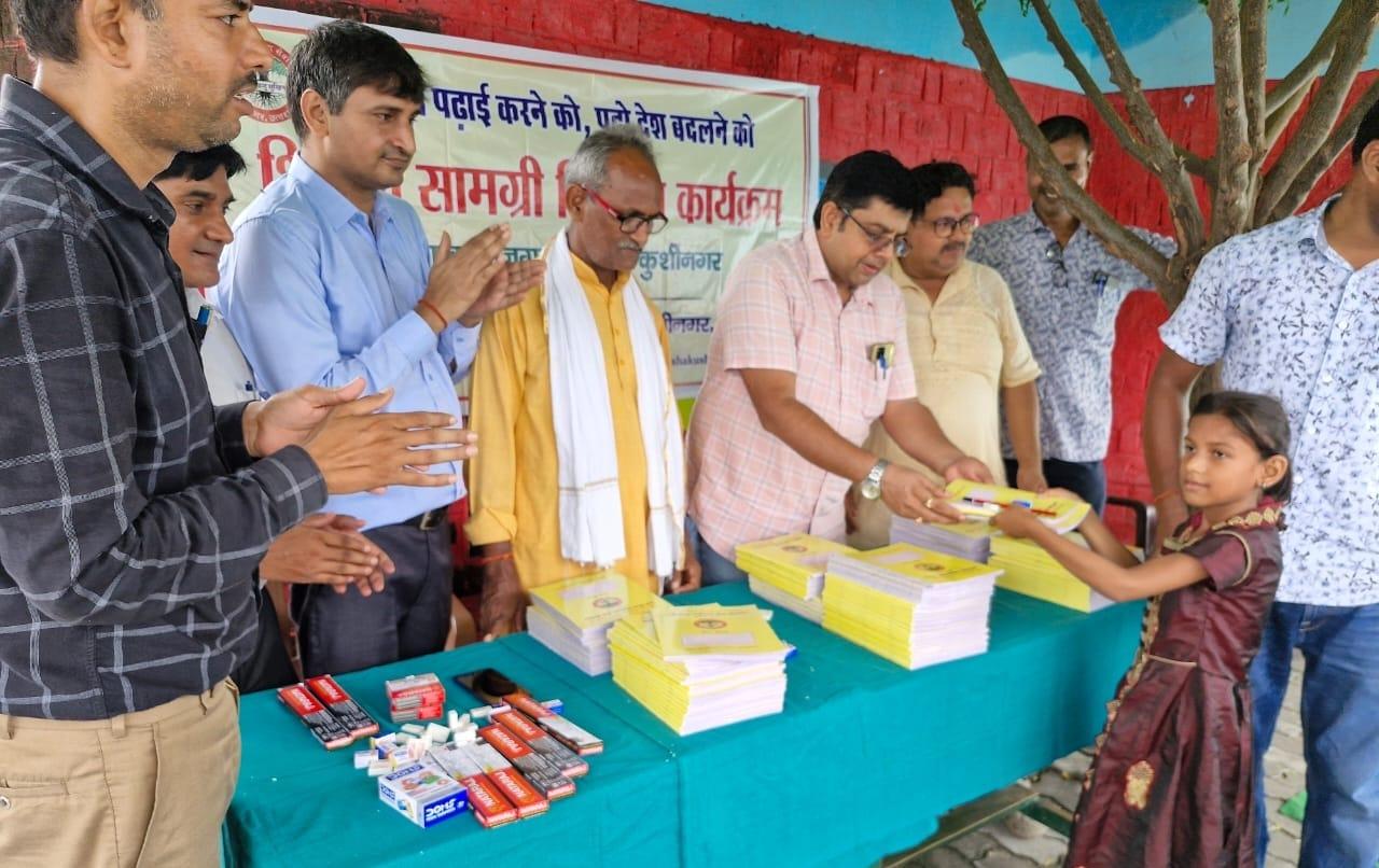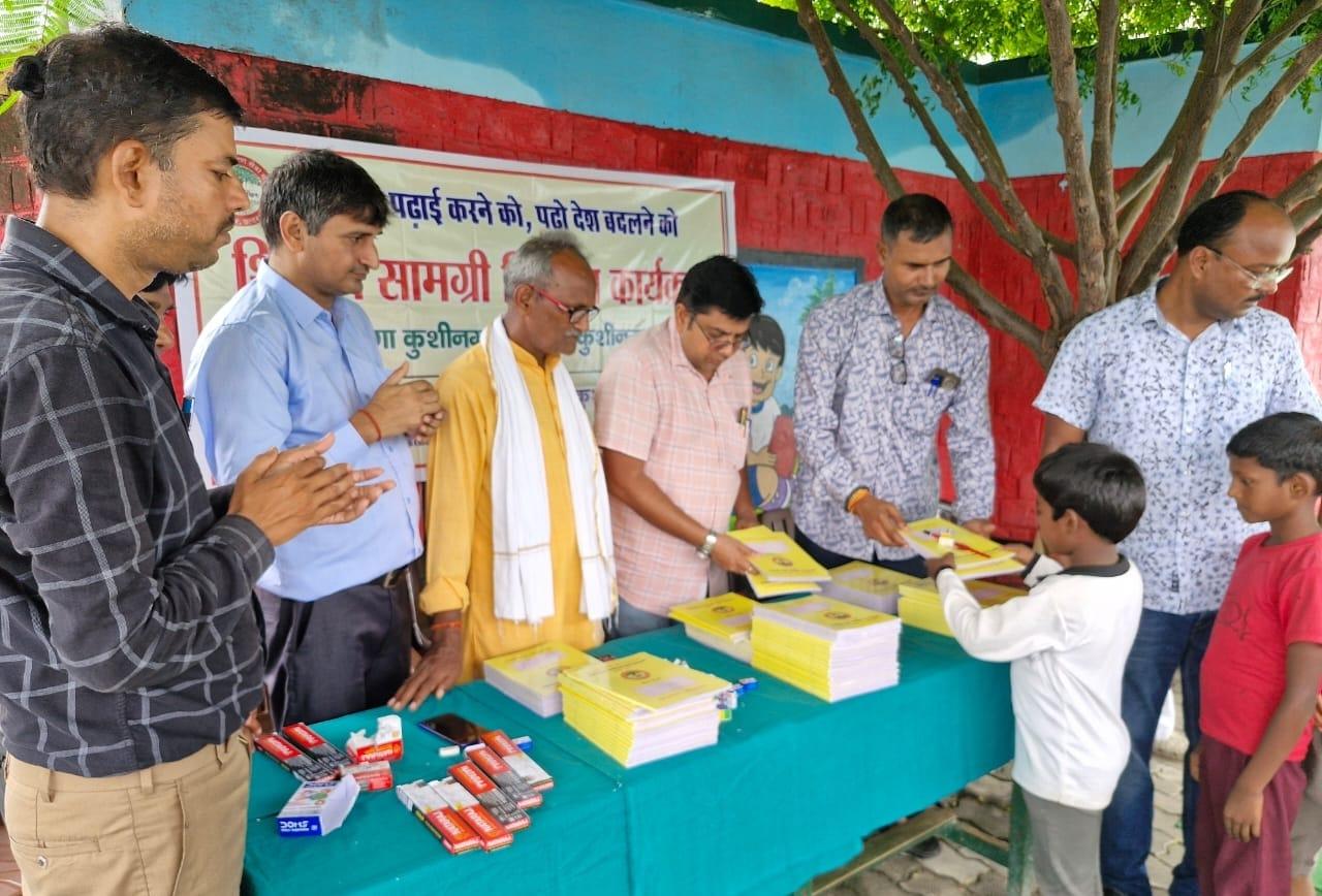 संस्थान द्वारा "पढ़ेगा कुशीनगर, बढ़ेगा कुशीनगर" की भावना के साथ जन सहयोग से चलाये जा रहे शिक्षण सामग्री वितरण कार्यक्रम के क्रम में नगर पालिका परिषद कुशीनगर स्थित प्राथमिक विद्यालय नरकटिया खुर्द में विद्यार्थियों को कॉपी, पेंसिल, रबर, कटर आदि शिक्षण सामग्री भेंट कर पढ़ने व आगे बढ़ने हेतु प्रोत्साहित किया गया।