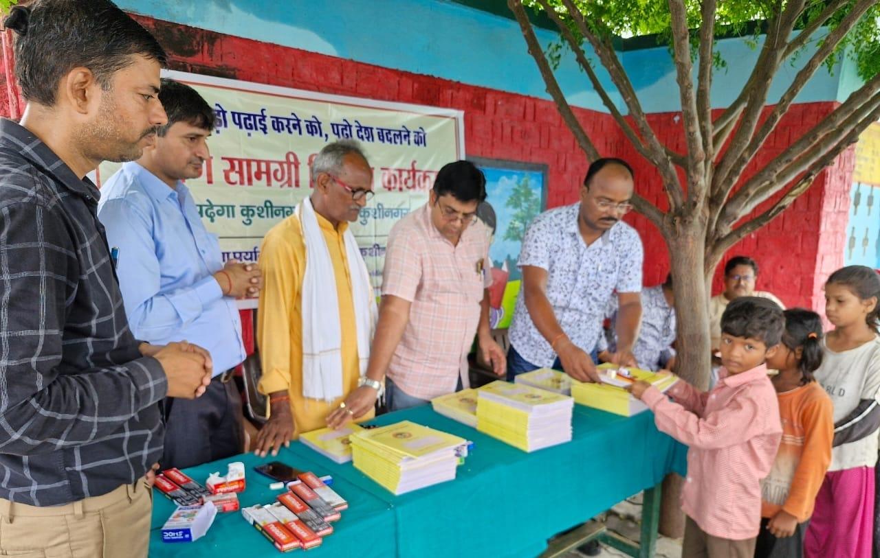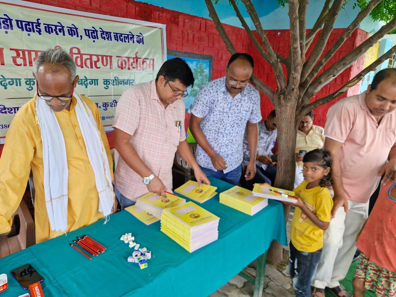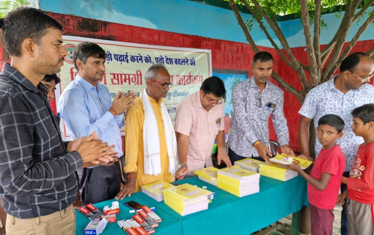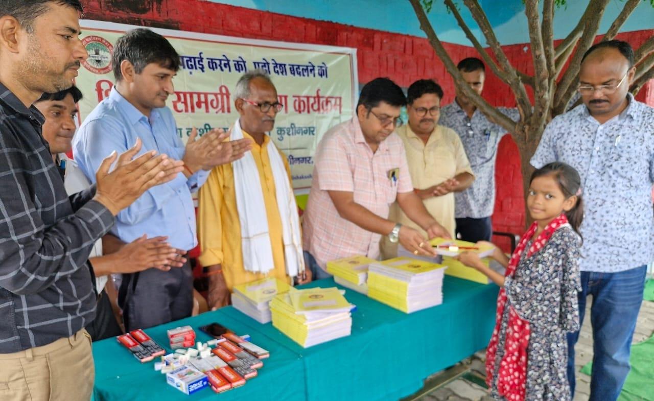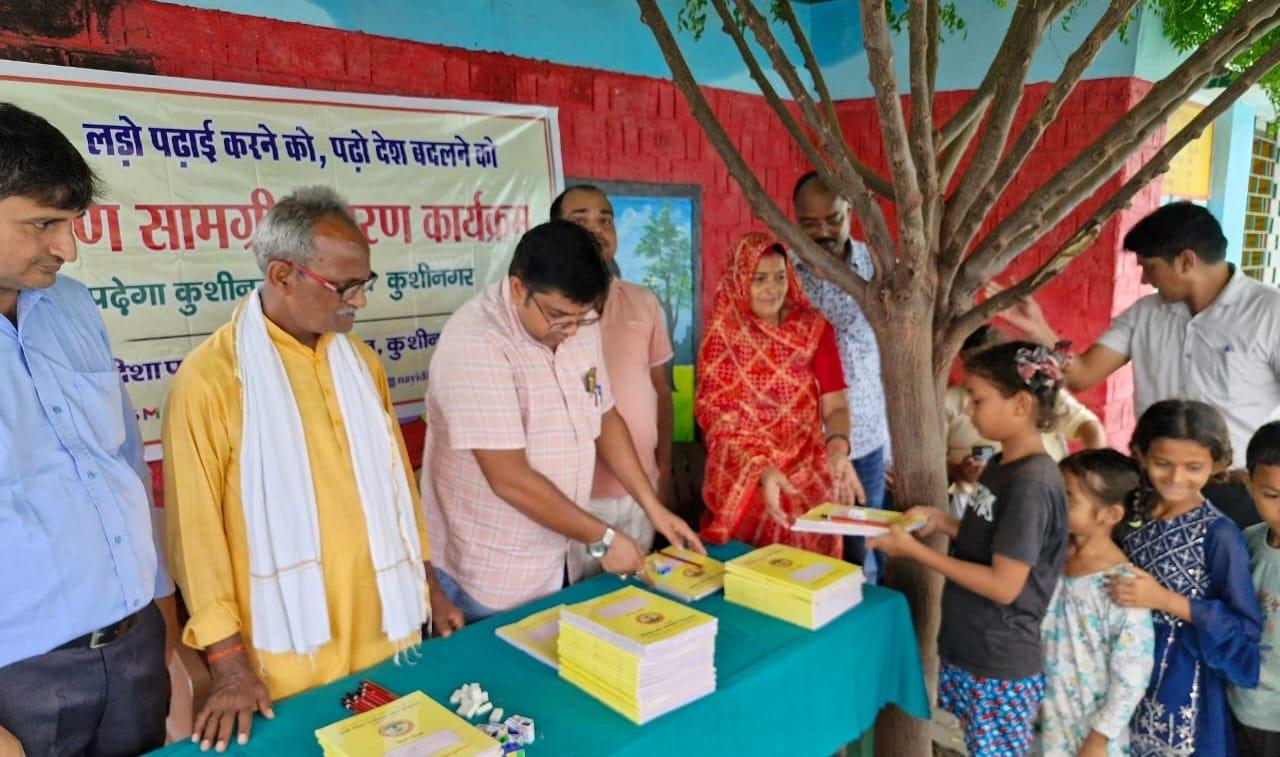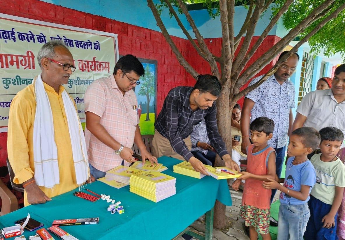 संस्थान द्वारा "पढ़ेगा कुशीनगर, बढ़ेगा कुशीनगर" की भावना के साथ जन सहयोग से चलाये जा रहे शिक्षण सामग्री वितरण कार्यक्रम के क्रम में नगर पालिका परिषद कुशीनगर स्थित प्राथमिक विद्यालय नरकटिया खुर्द में विद्यार्थियों को कॉपी, पेंसिल, रबर, कटर आदि शिक्षण सामग्री भेंट कर पढ़ने व आगे बढ़ने हेतु प्रोत्साहित किया गया।