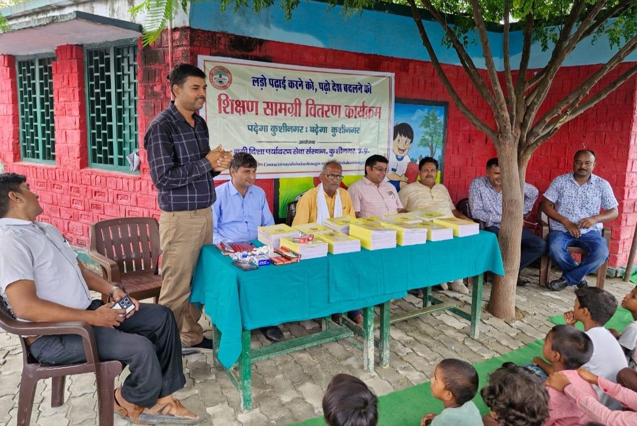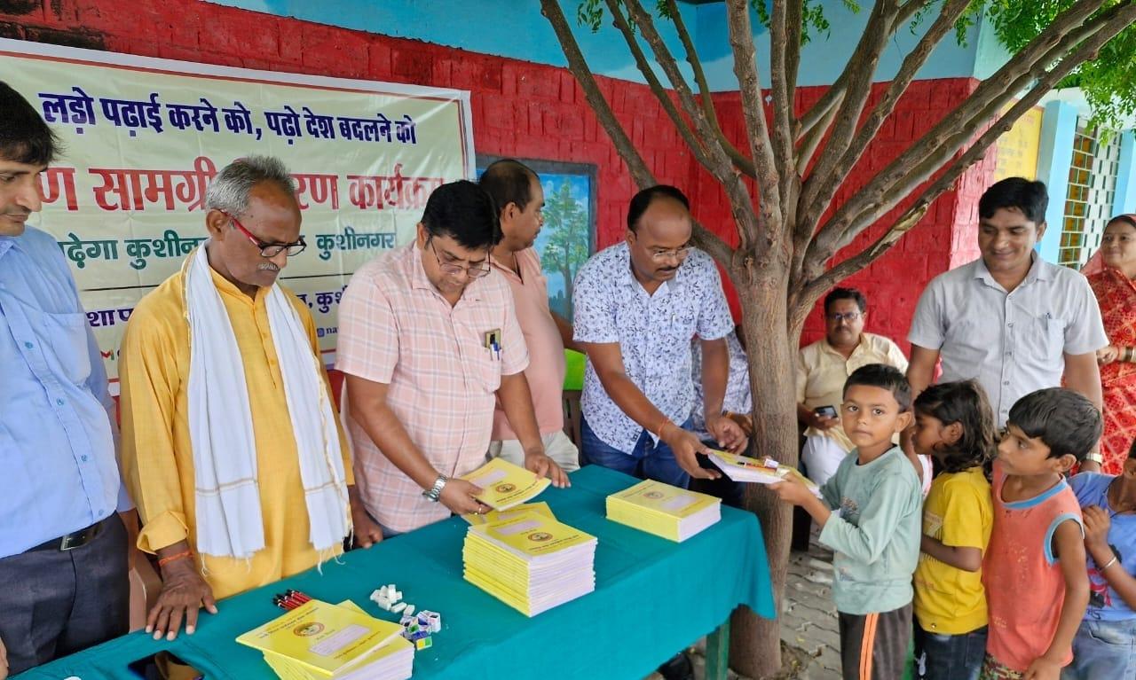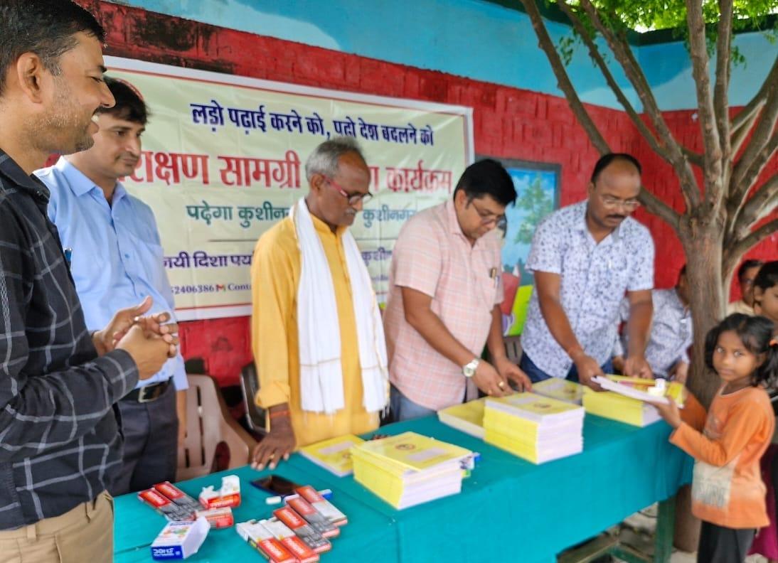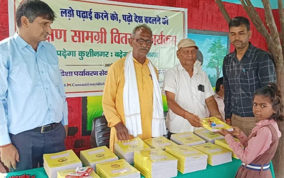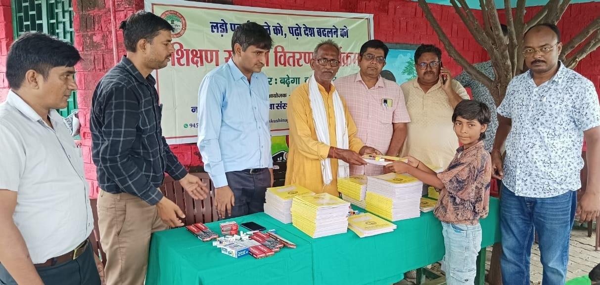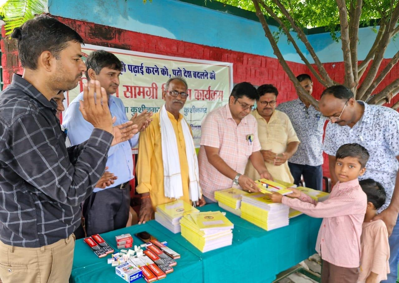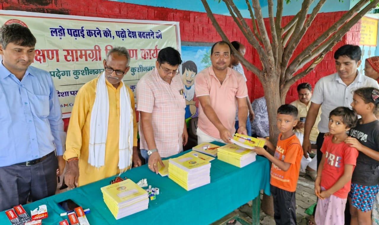 संस्थान द्वारा "पढ़ेगा कुशीनगर, बढ़ेगा कुशीनगर" की भावना के साथ जन सहयोग से चलाये जा रहे शिक्षण सामग्री वितरण कार्यक्रम के क्रम में नगर पालिका परिषद कुशीनगर स्थित प्राथमिक विद्यालय नरकटिया खुर्द में विद्यार्थियों को कॉपी, पेंसिल, रबर, कटर आदि शिक्षण सामग्री भेंट कर पढ़ने व आगे बढ़ने हेतु प्रोत्साहित किया गया।
