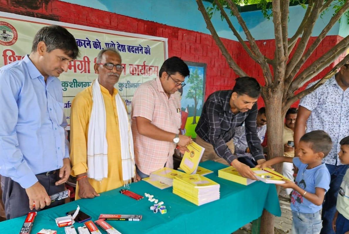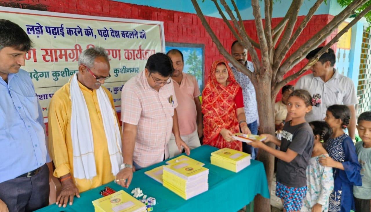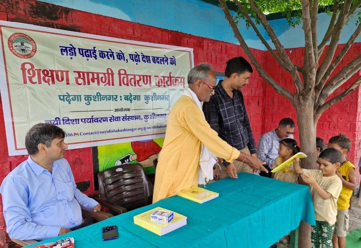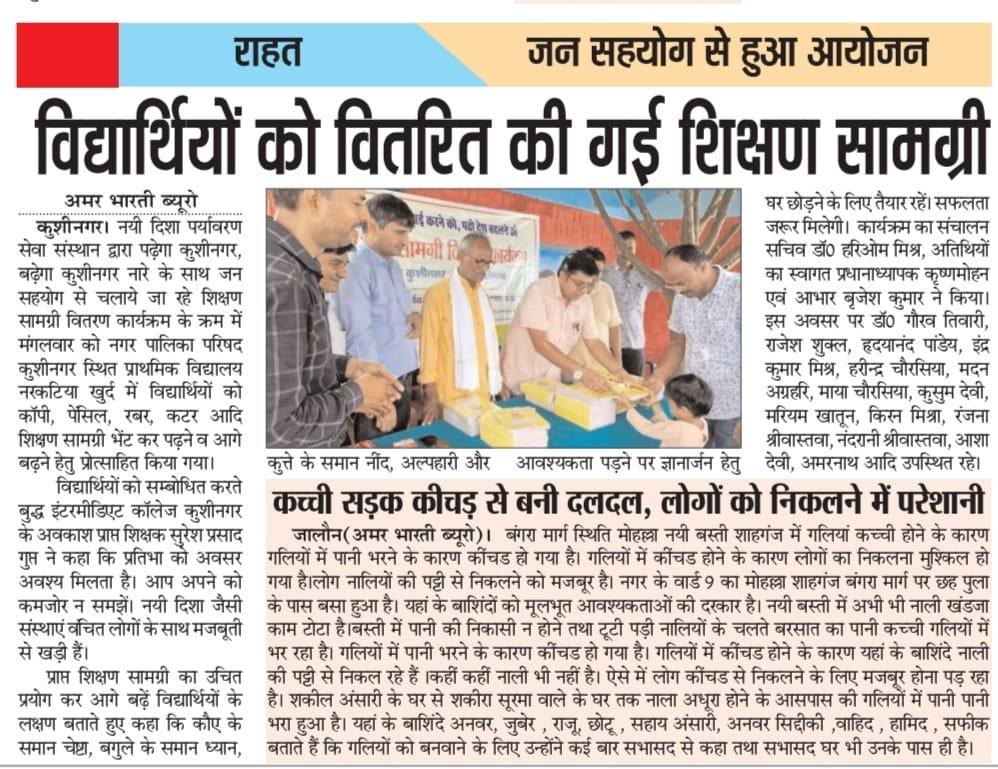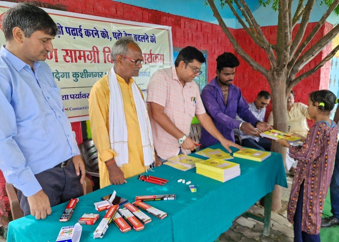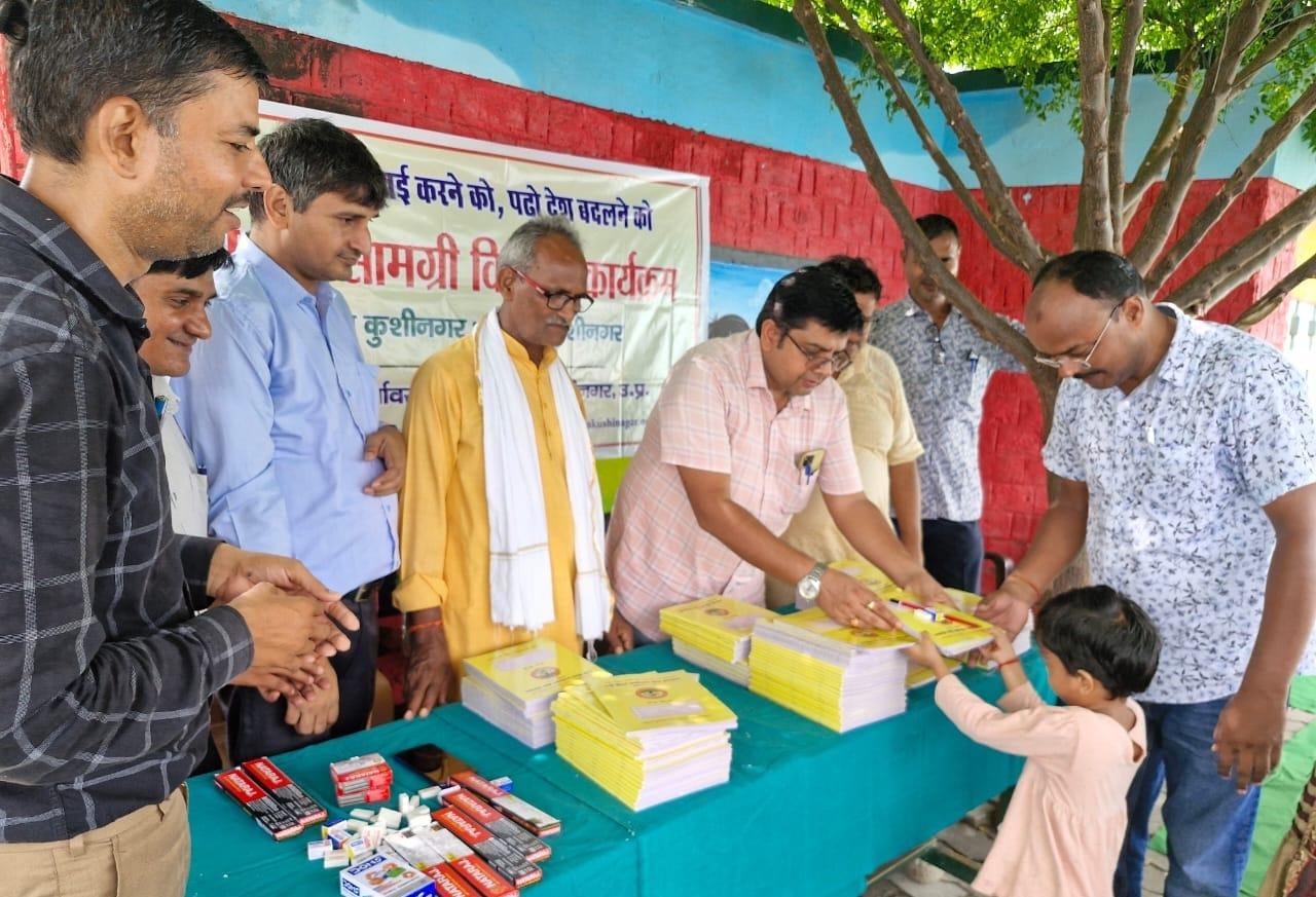 संस्थान द्वारा "पढ़ेगा कुशीनगर, बढ़ेगा कुशीनगर" की भावना के साथ जन सहयोग से चलाये जा रहे शिक्षण सामग्री वितरण कार्यक्रम के क्रम में नगर पालिका परिषद कुशीनगर स्थित प्राथमिक विद्यालय नरकटिया खुर्द में विद्यार्थियों को कॉपी, पेंसिल, रबर, कटर आदि शिक्षण सामग्री भेंट कर पढ़ने व आगे बढ़ने हेतु प्रोत्साहित किया गया।