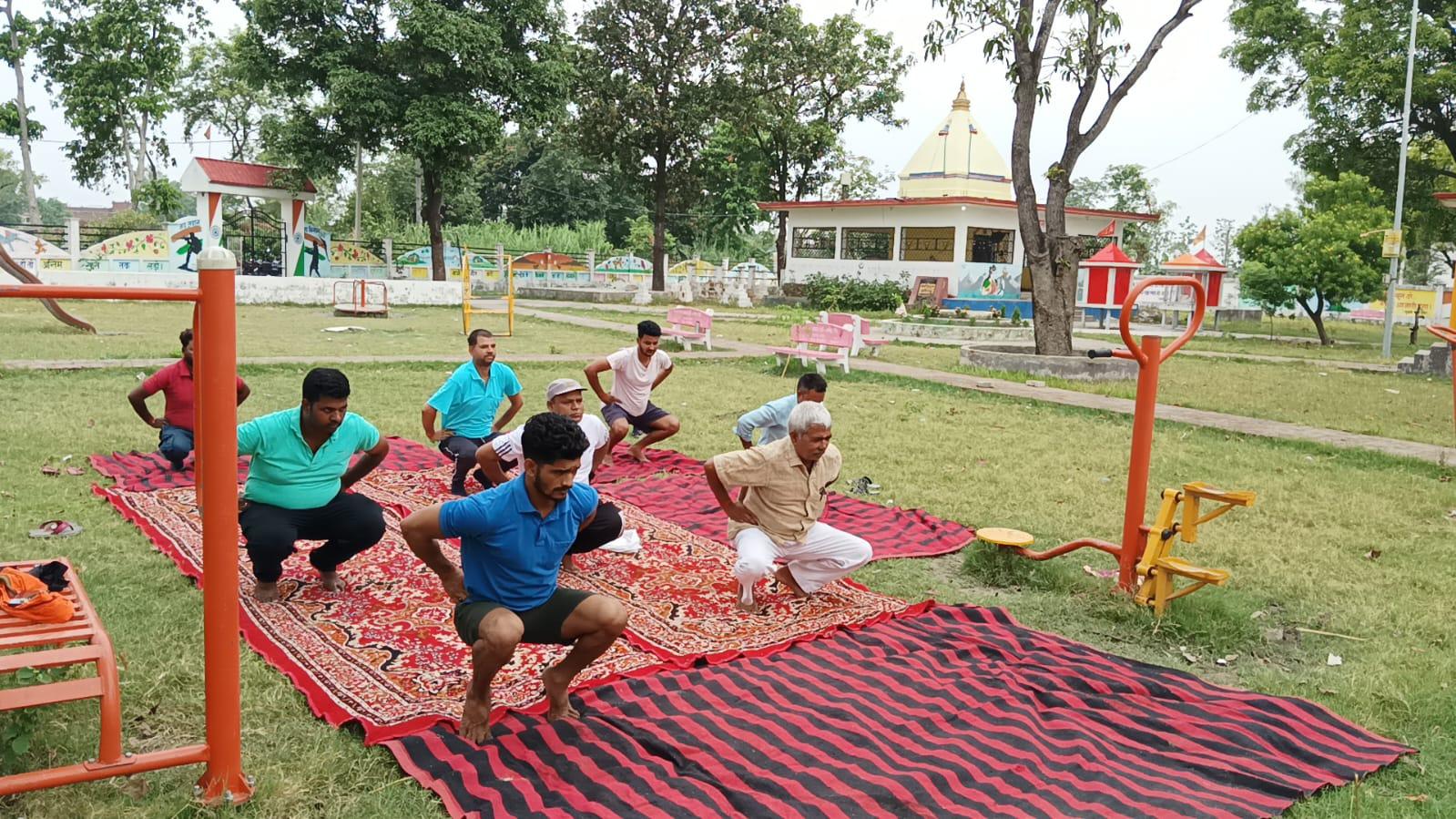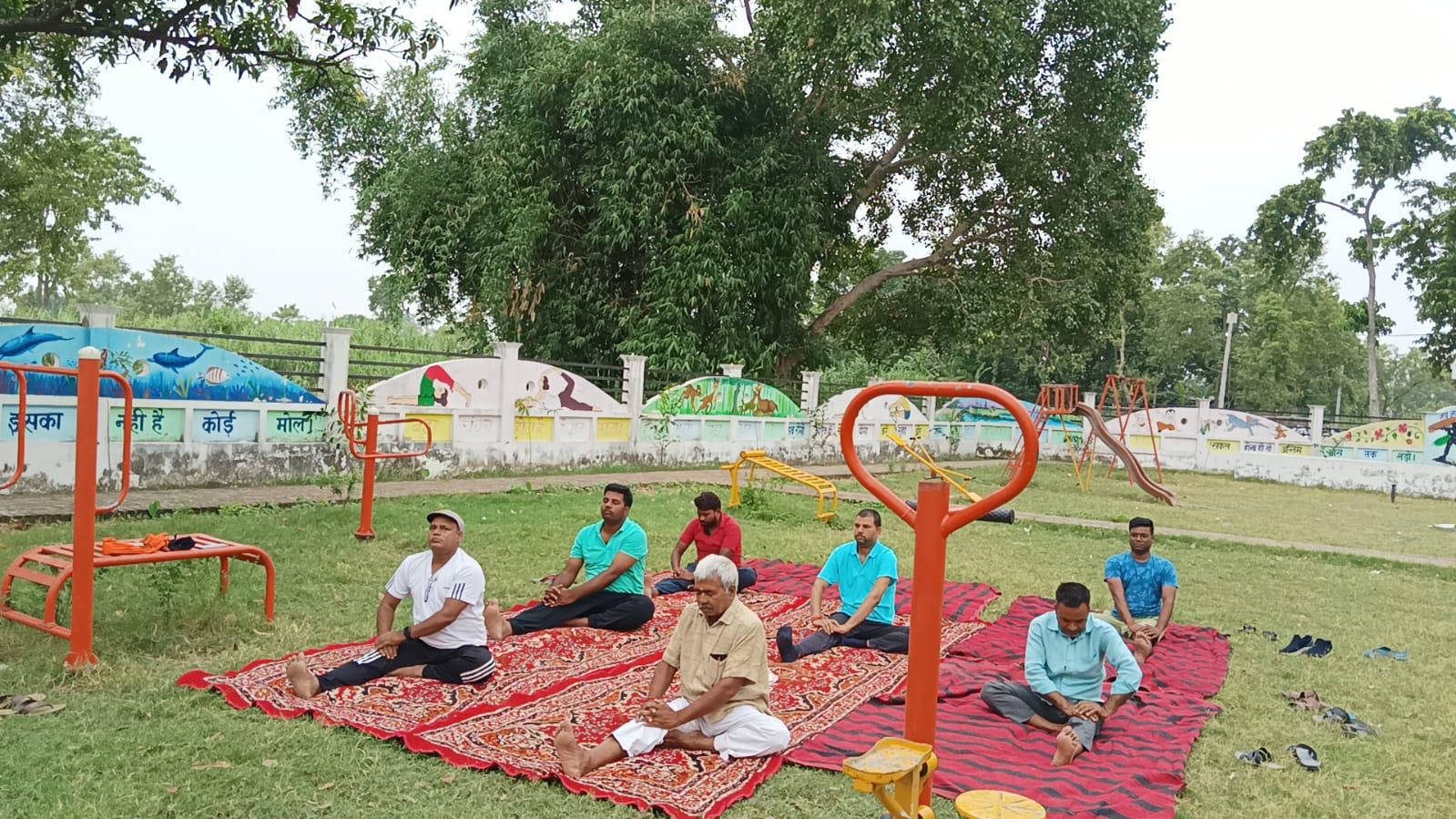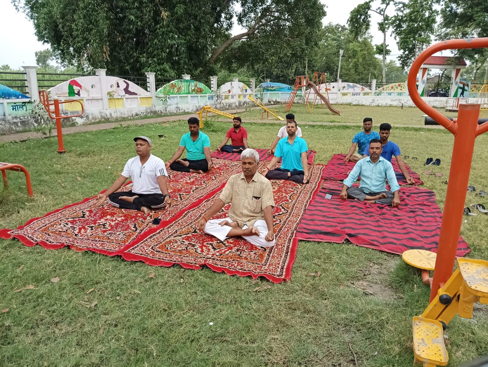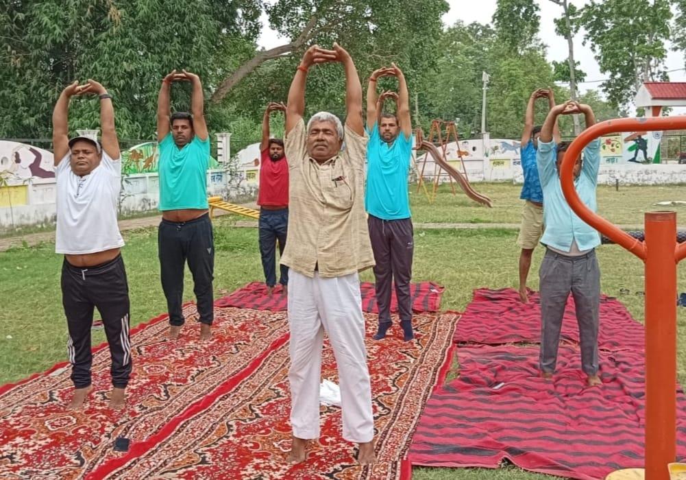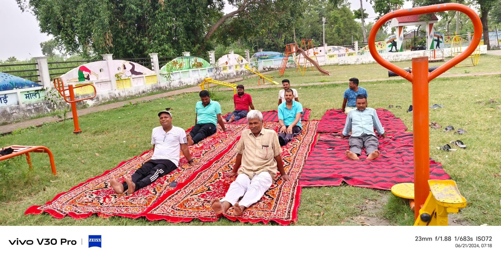 विश्व योग दिवस के अवसर पर कुशीनगर जनपद के कसया रामकोला मार्ग पर स्थित रामबर चरगहा ग्राम के मनरेगा पार्क में नयी दिशा पर्यावरण सेवा संस्थान एवं ग्राम सभा के संयुक्त तत्वावधान में योग शिविर का आयोजन किया गया।