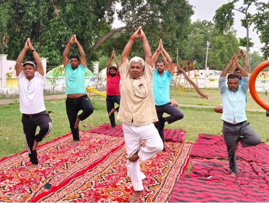 शिविर में योग गुरु श्री सत्येंद्र मिश्र व श्री मंदीप गिरी ने लोगों को योग की महत्ता और इस वर्ष की थीम स्वयं और समाज के लिए योग से अवगत कराते हुए अनुलोम-विलोम, कपालभाती, भ्रामरी, सूर्य नमस्कार, वज्रासन, मंडूकासन, पद्मासन, ताड़ासन, भुजंगासन, सर्वांगासन, नौकासन, हलासन आदि का अभ्यास कराया और नियमित दिनचर्या में शामिल करने को कहा।