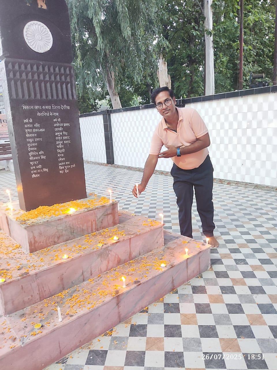 शहीद स्मारक पार्क कसया में दीपदान कर कारगिल शहीदों को दी गयी श्रद्धांजलि।