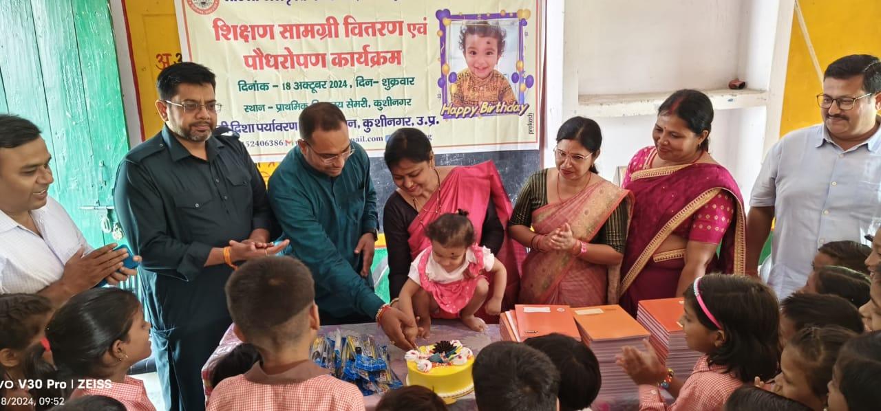 शिक्षक दंपति डॉ0 सौरभ द्विवेदी व श्रीमती पुनीता पांडेय की लाडली अलंकृति के जन्मोत्सव पर शिक्षण सामग्री वितरण एवं पौधरोपण कार्यक्रम का हुआ आयोजन।
