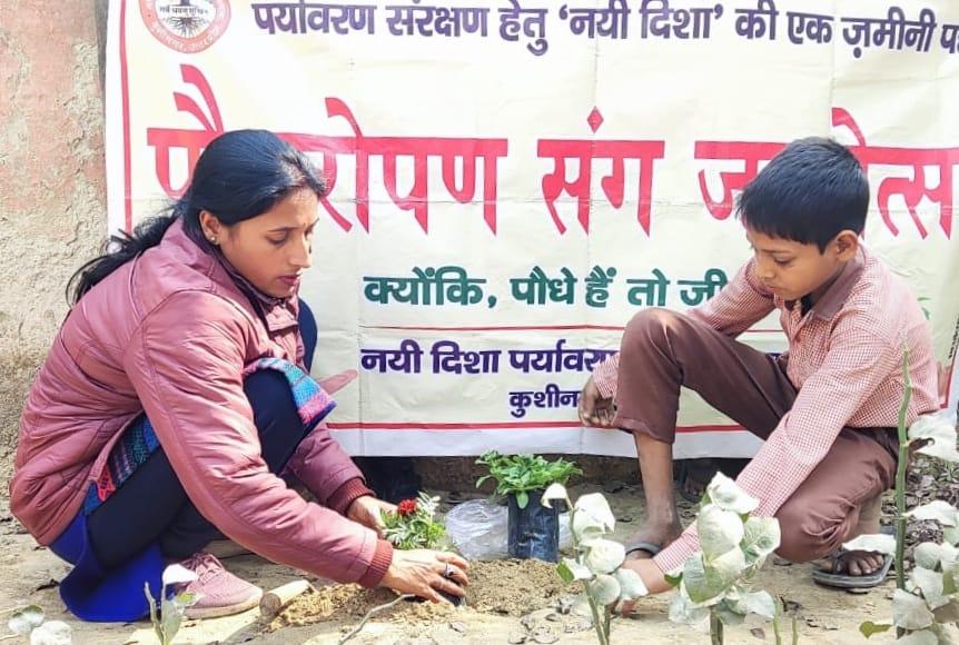 संस्थान द्वारा पर्यावरण संरक्षण हेतु चलाये जा रहे पौधरोपण संग जन्मोत्सव अभियान के क्रम में फाजिलनगर विकास खण्ड स्थित उच्च प्राथमिक विद्यालय गौराखोर में शिक्षिका श्रीमती प्रीति पांडेय के जन्मदिन के सुअवसर पर विद्यालय परिसर में पौधरोपण कार्यक्रम का आयोजन हुआ। इस दौरान विद्यालय के बच्चों को पर्यावरण संरक्षण के प्रति जागरूक कर उन्हें घर पर पौधे लगाने हेतु प्रोत्साहित किया गया।