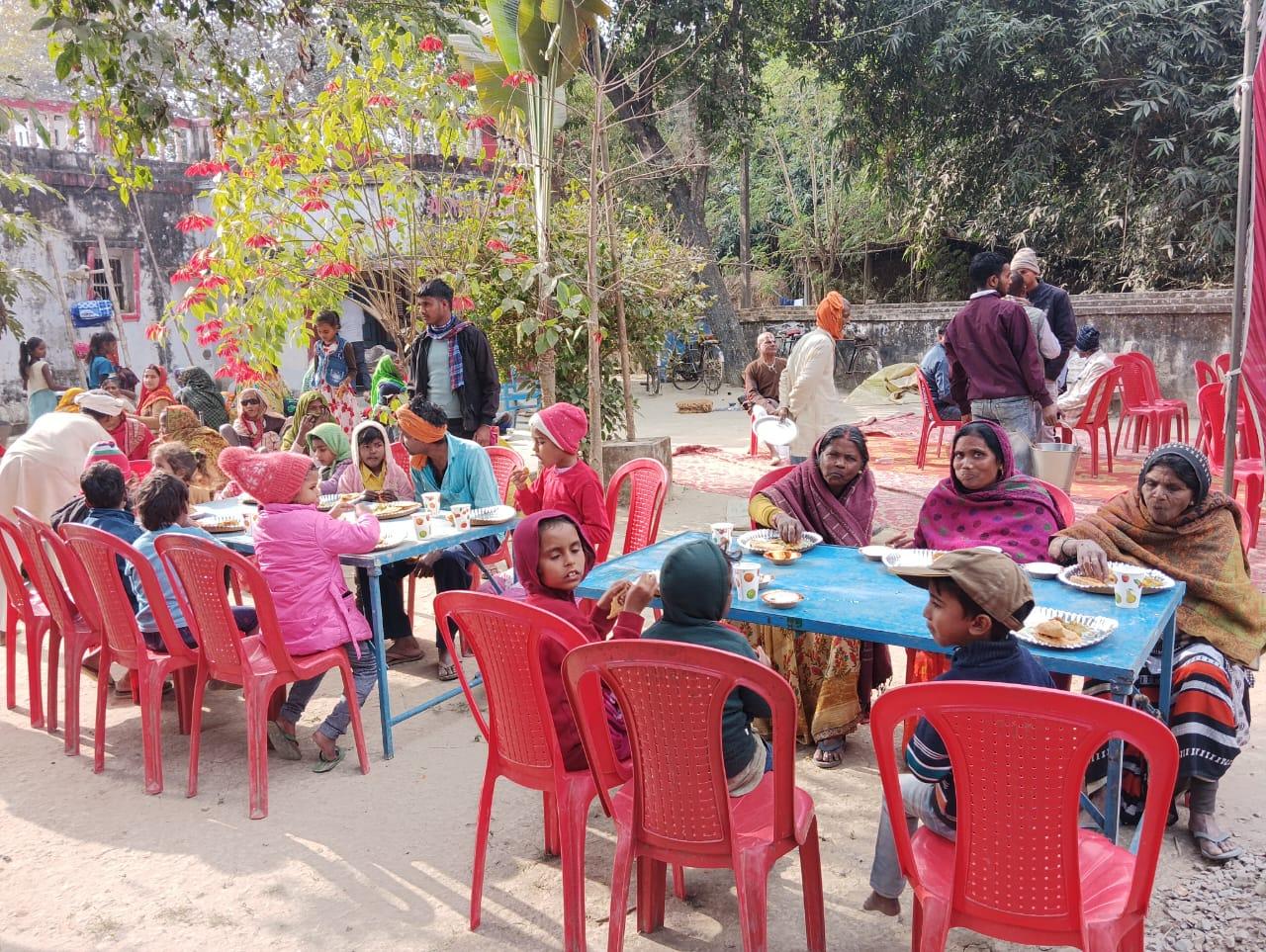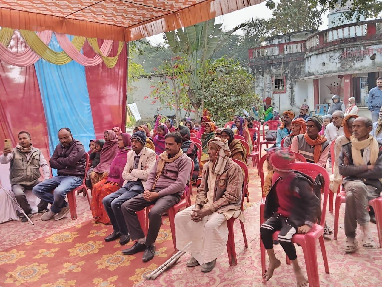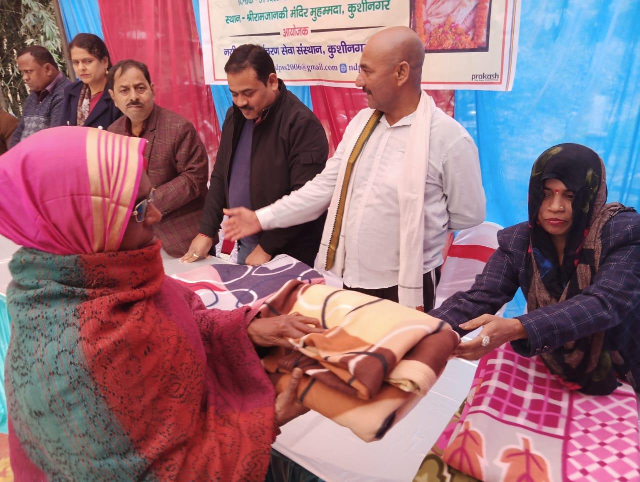 मोतीचक विकास खण्ड के अन्तर्गत ग्राम सभा मुहम्मदा स्थित श्रीराम - जानकी मंदिर के परिसर में संस्था अध्यक्ष प्रो० सीमा त्रिपाठी की सासु माँ स्व० श्रीमती गोदावरी देवी की पुण्य स्मृति में श्रद्धांजलि कार्यक्रम का आयोजन कर जरूरतमंद विधवा माताओं व दिव्यांग बंधुओं को कम्बल वितरण कर सहभोज किया गया। इस दौरान मंदिर परिसर में भजन कीर्तन भी हुआ।