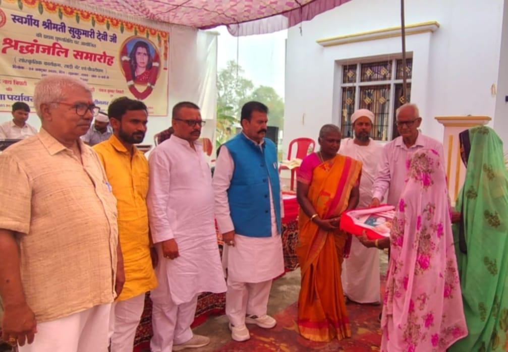 स्वर्गीय श्रीमती सुकुमारी देवी की पुण्यतिथि पर सांस्कृतिक कार्यक्रम, साड़ी भेंट एवं पौधरोपण का आयोजन।