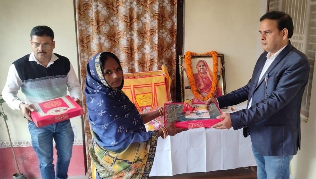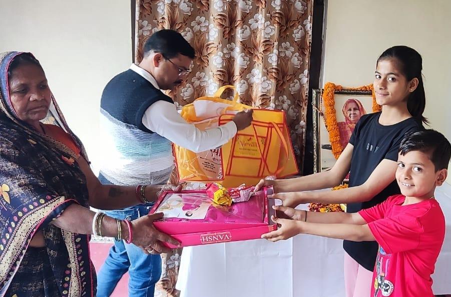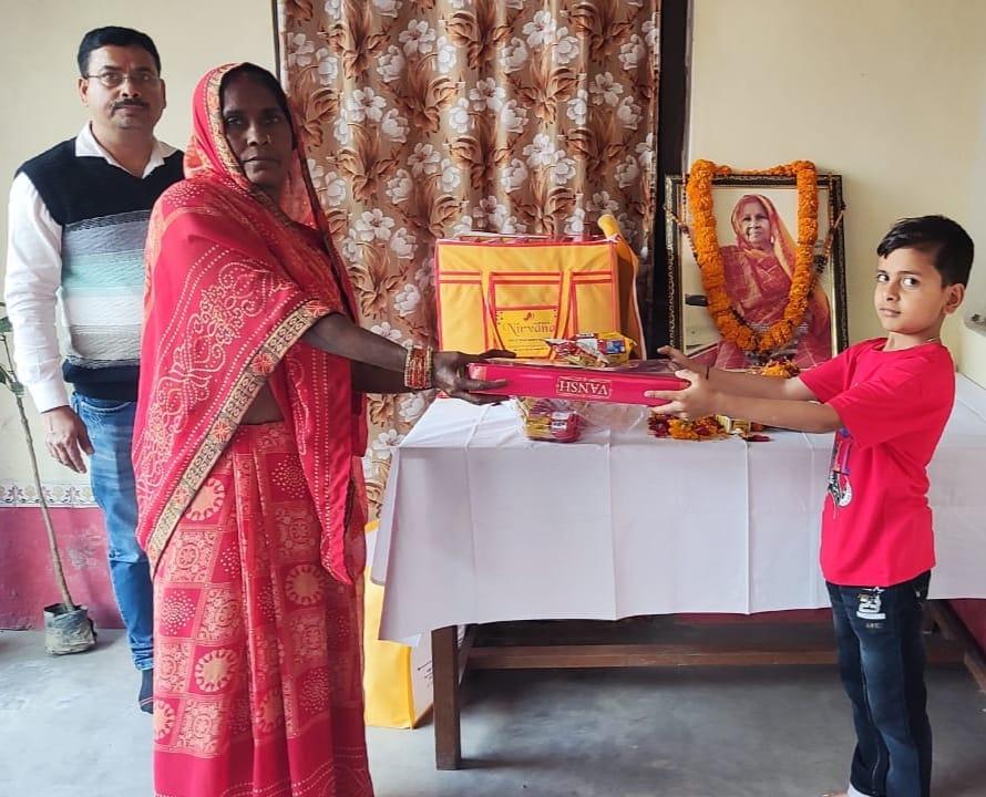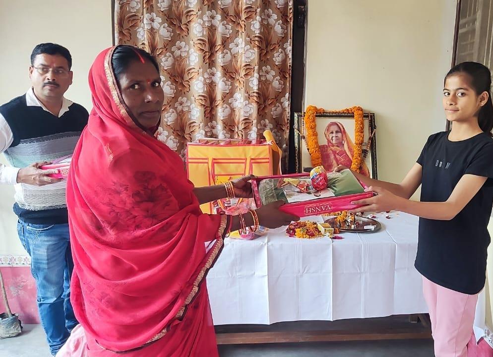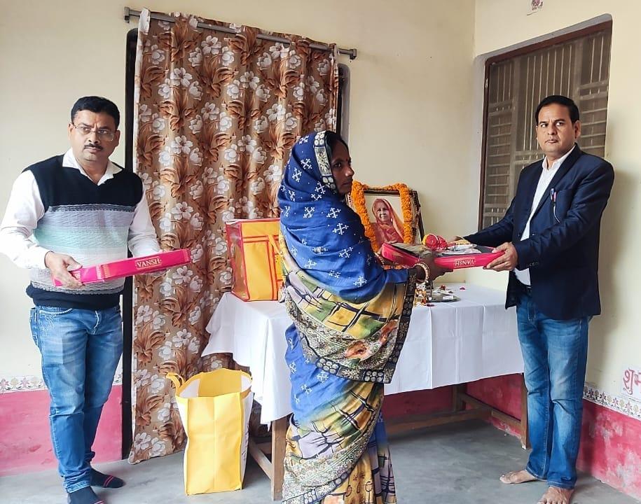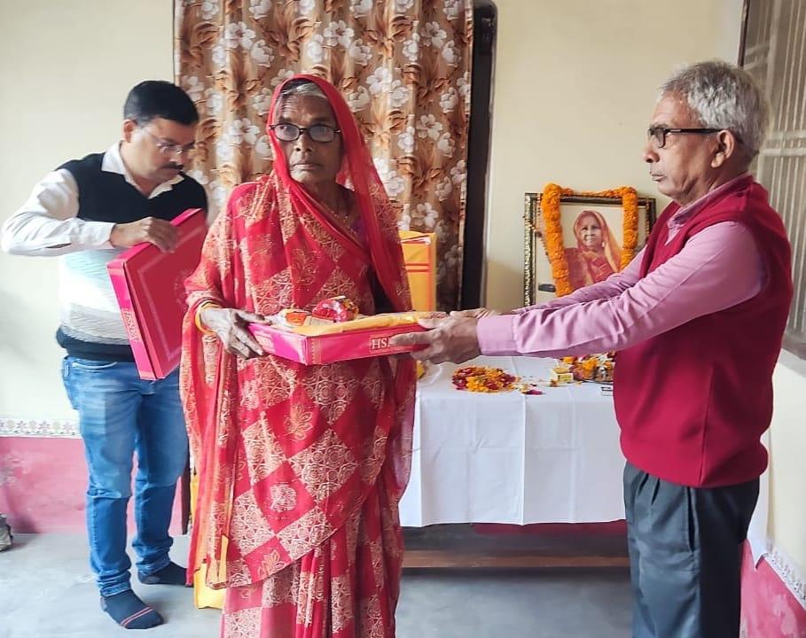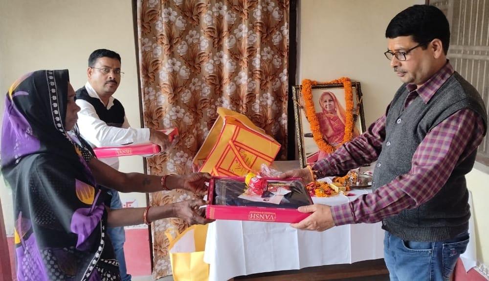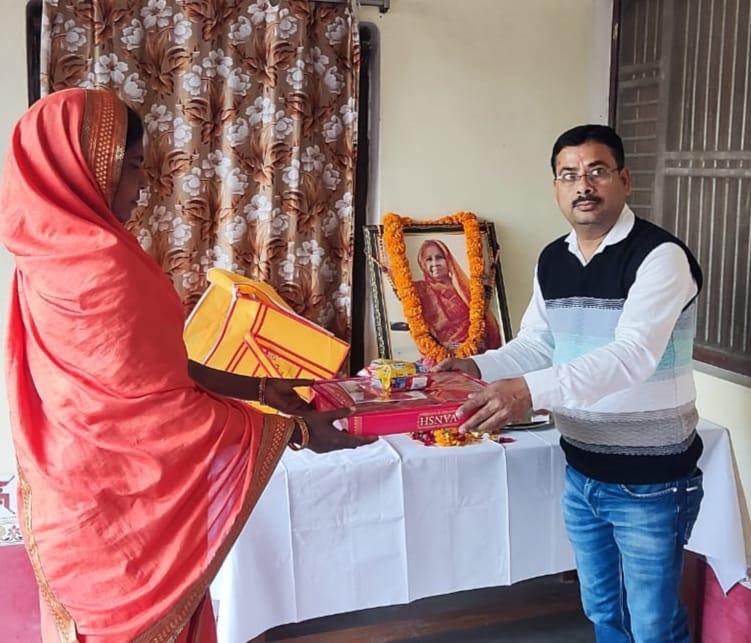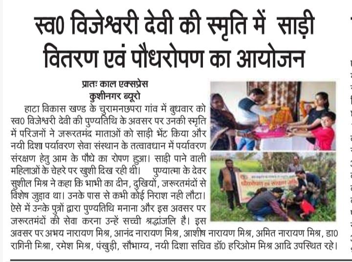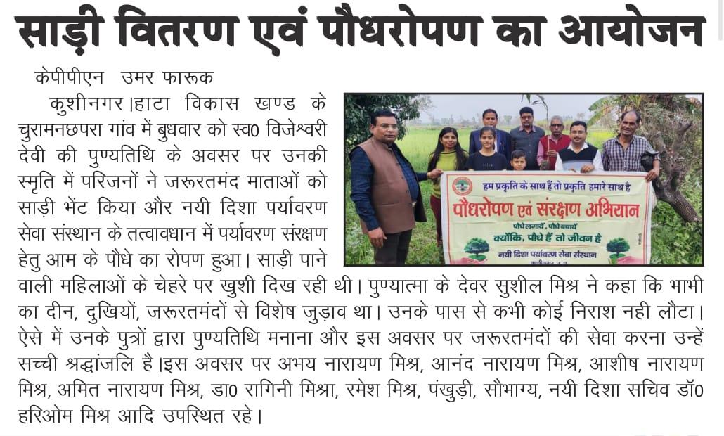 स्वर्गीय श्रीमती विजेश्वरी देवी जी की स्मृति में साड़ी वितरण एवं पौधरोपण का आयोजन।