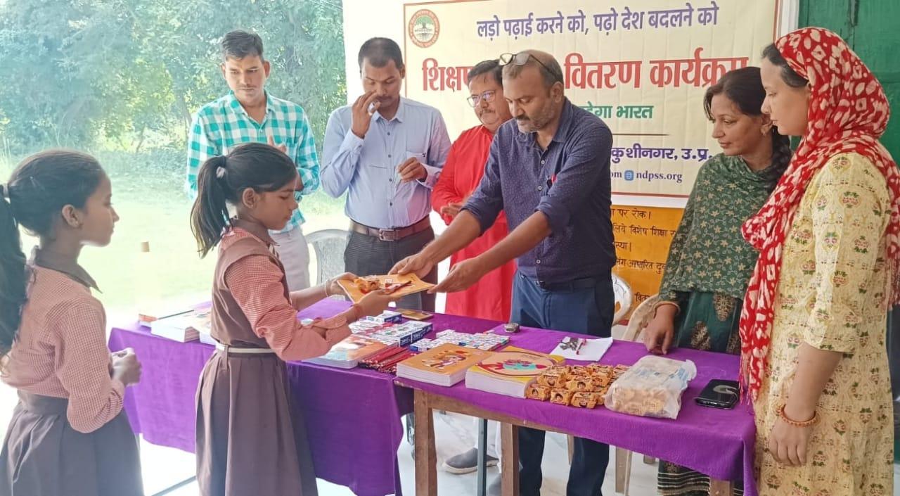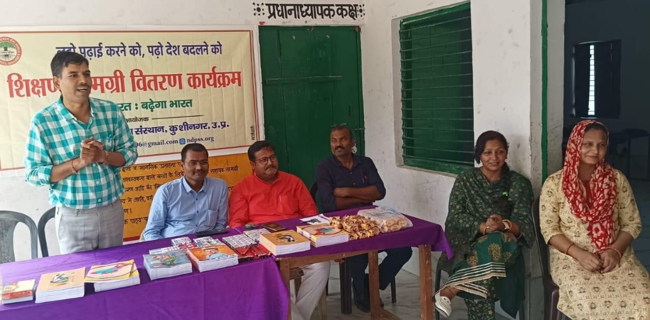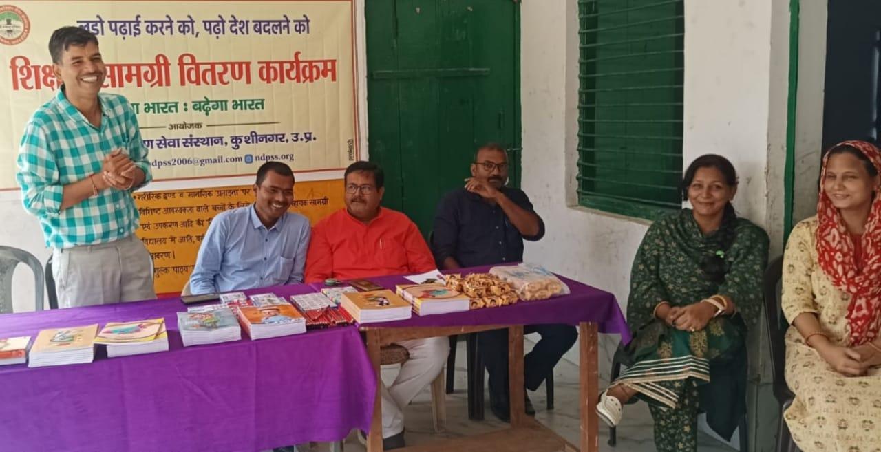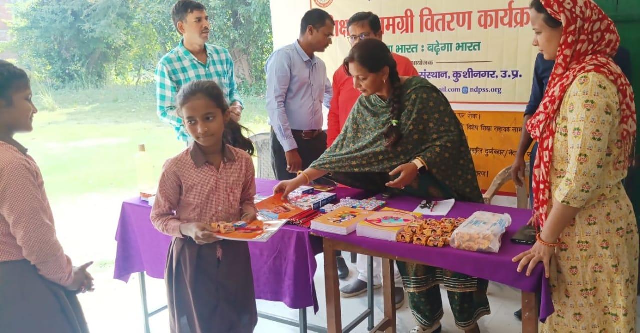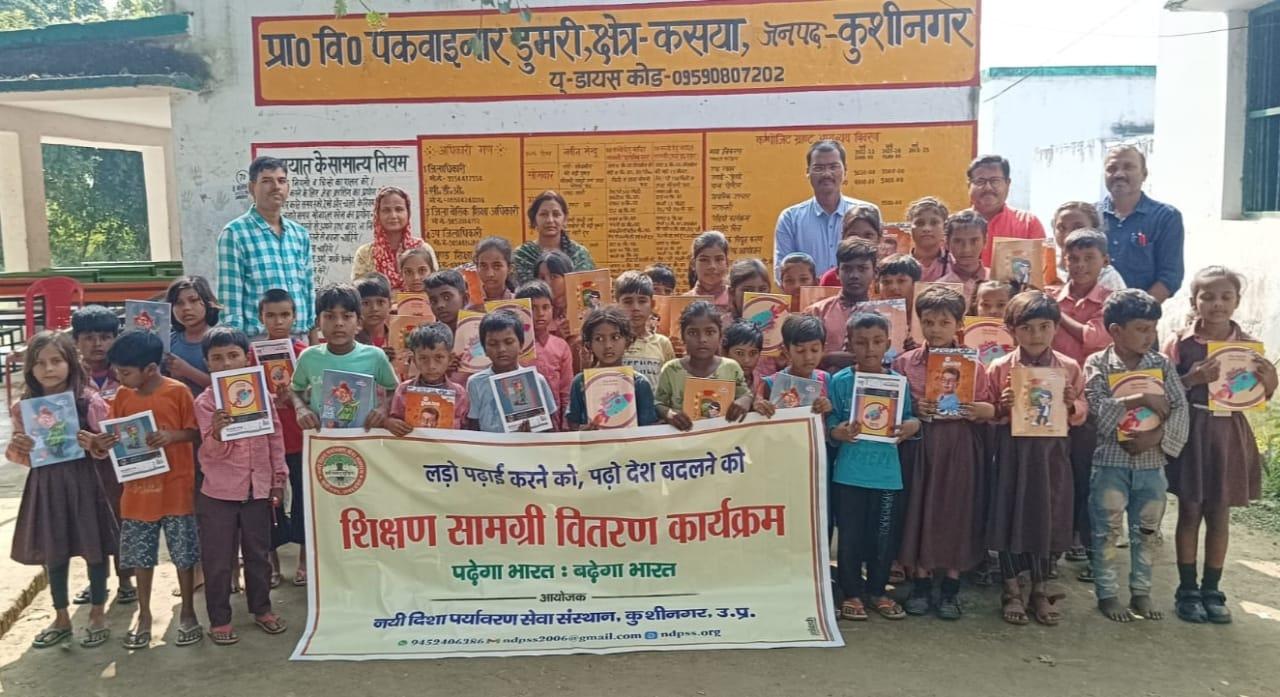 संस्थान द्वारा जरूरतमंद बच्चों की शिक्षा में सहयोगी बनने के क्रम में स्वर्ण व्यवसायी कसया श्री संजय जायसवाल जी के जन्मोत्सव पर उनके सहयोग से नगर पालिका परिषद कुशीनगर स्थित प्राथमिक विद्यालय पकवाइनार डुमरी में शिक्षण सामग्री वितरण कार्यक्रम का आयोजन कर बच्चों को कॉपी, पेंसिल, रबर, कटर आदि भेंट कर पढ़ने व आगे बढ़ने हेतु प्रोत्साहित किया गया।