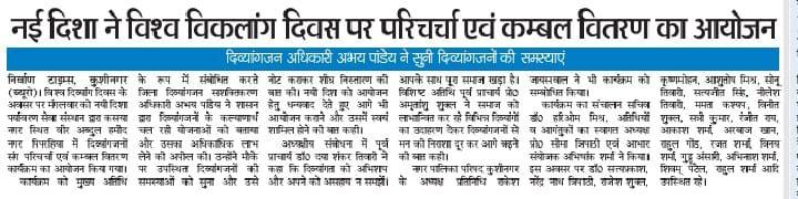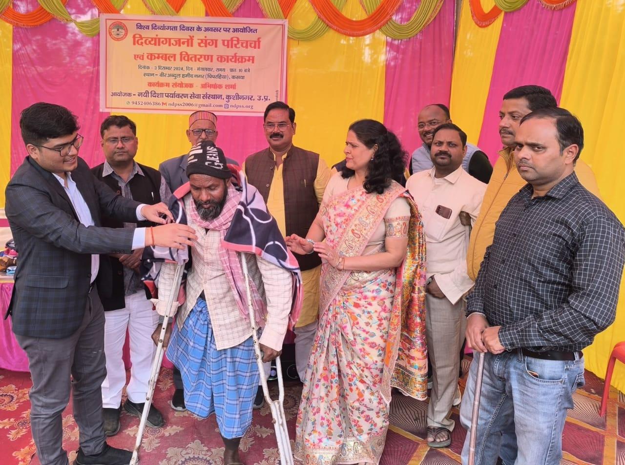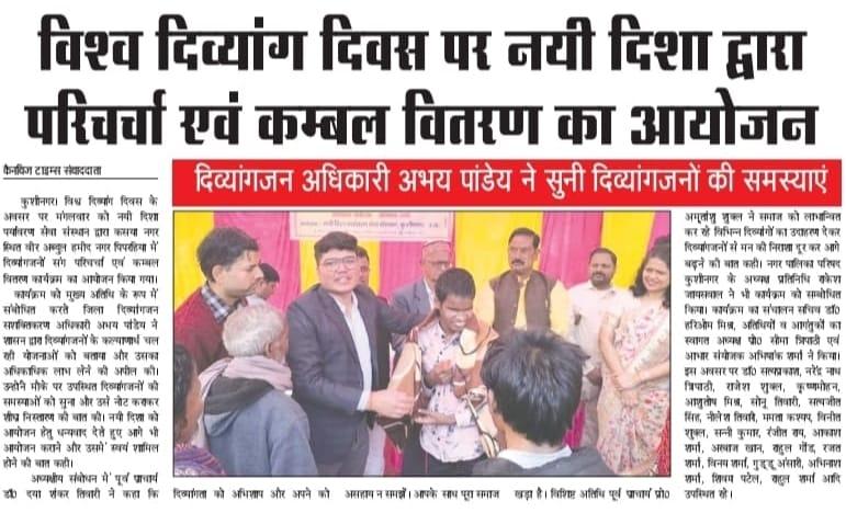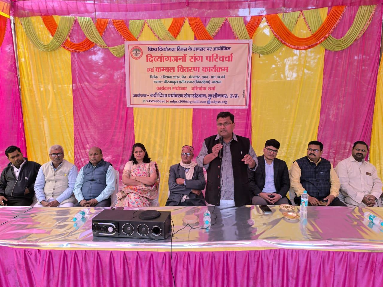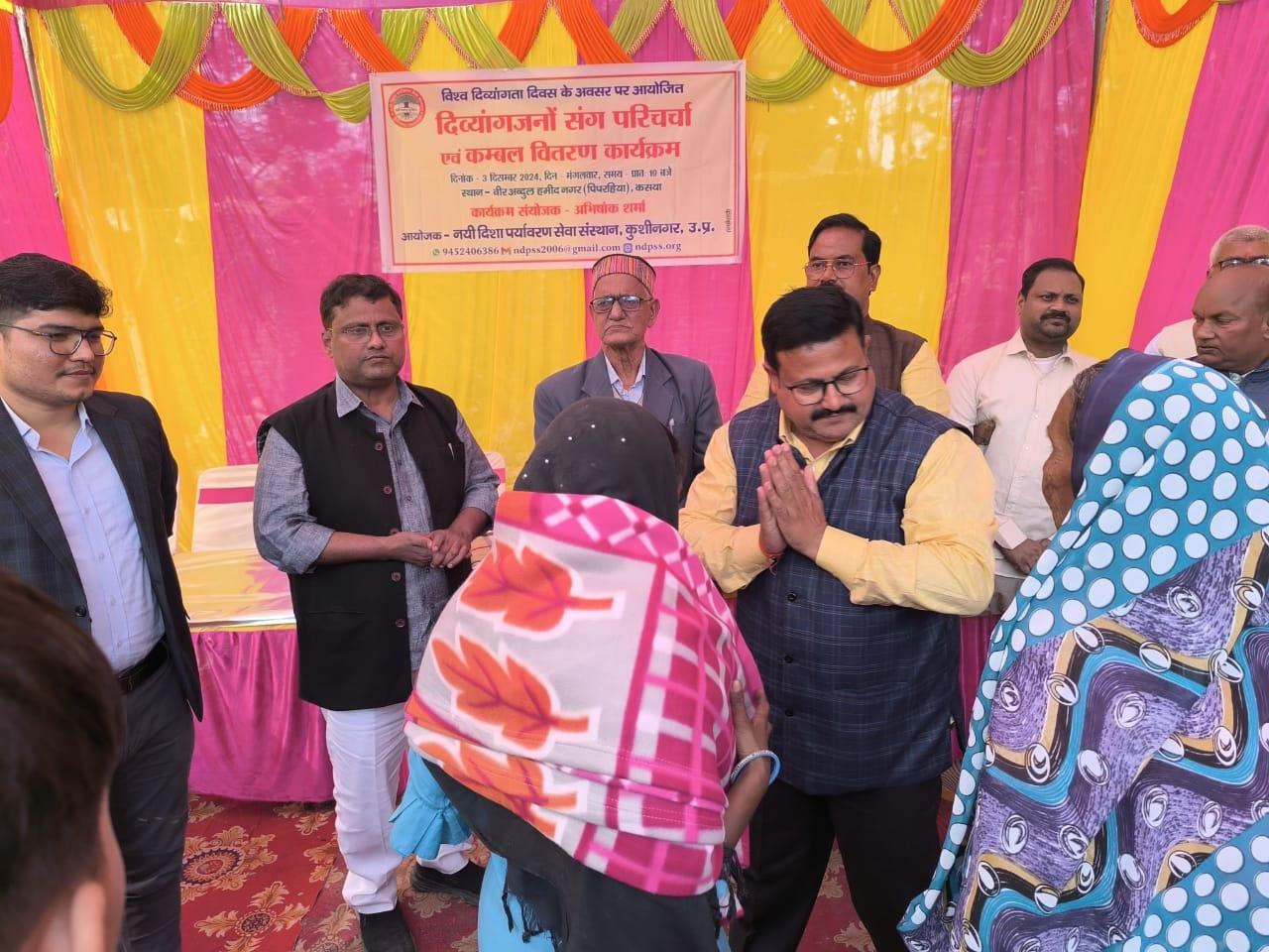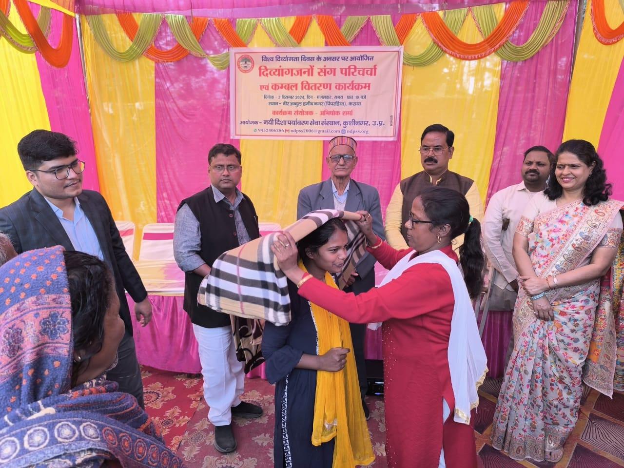 विश्व दिव्यांग दिवस के अवसर पर संस्थान द्वारा कसया नगर स्थित वीर अब्दुल हमीद नगर पिपरहिया में दिव्यांगजनों संग परिचर्चा एवं कम्बल वितरण कार्यक्रम का आयोजन किया गया। कार्यक्रम में अतिथि के रूप में उपस्थित जिला दिव्यांगजन सशक्तिकरण अधिकारी श्री अभय पांडेय ने शासन द्वारा दिव्यांगजनों के कल्याणार्थ चल रही योजनाओं को बताया और उसका अधिकाधिक लाभ लेने की अपील की। उन्होंने मौके पर उपस्थित दिव्यांगजनों की समस्याओं को सुना और उसे नोट कराकर शीघ्र निस्तारण की बात कही।