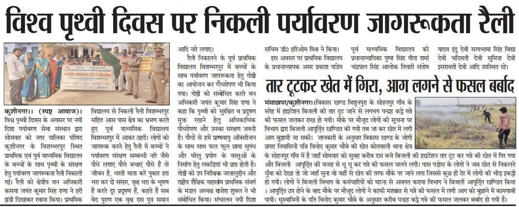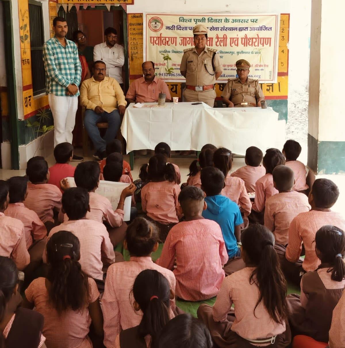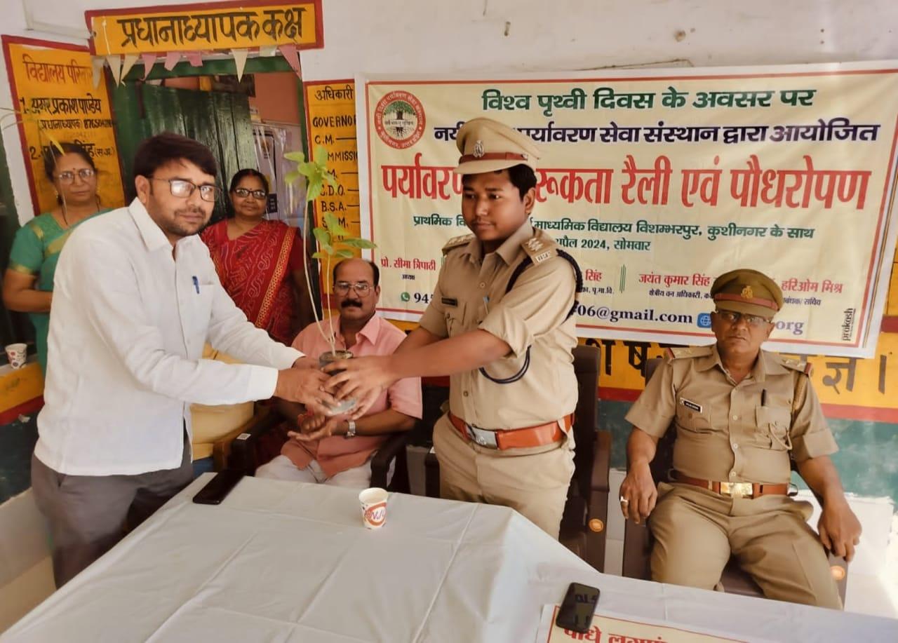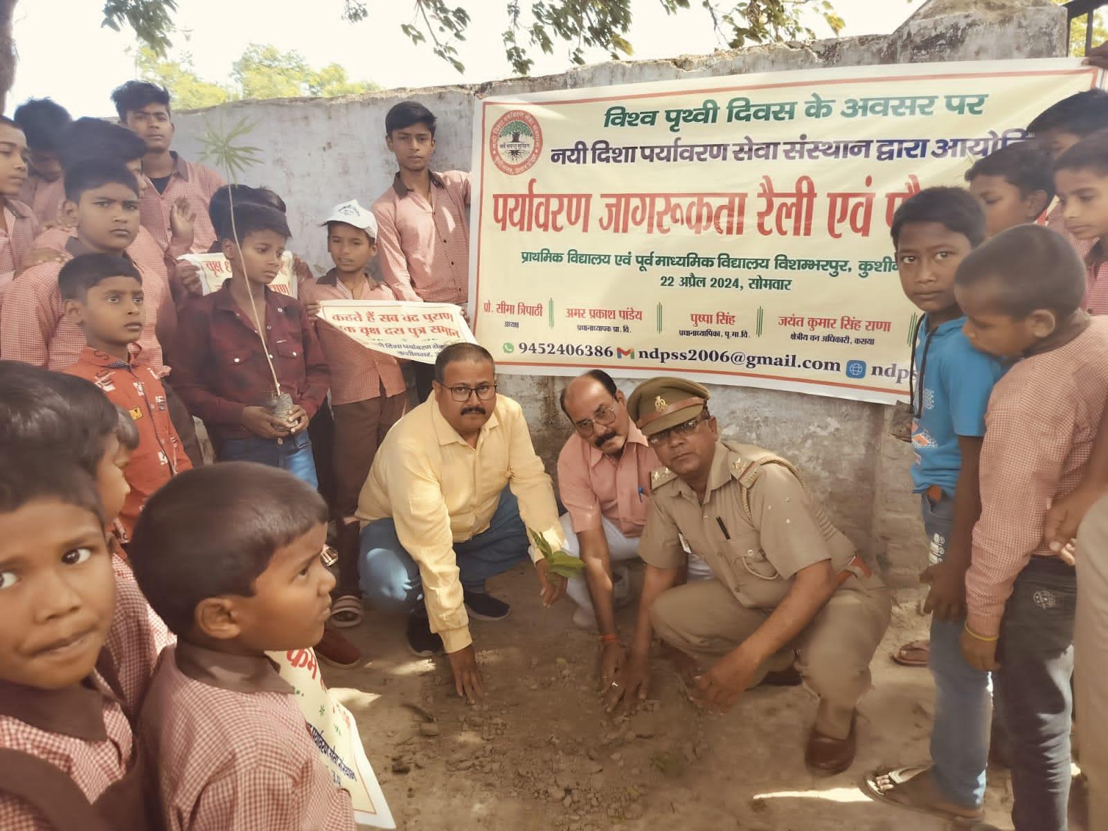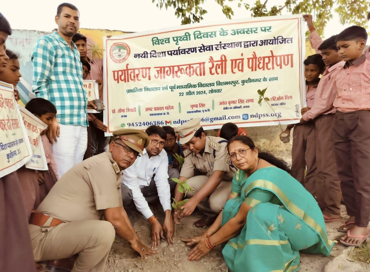 विश्व पृथ्वी दिवस के अवसर पर संस्थान द्वारा नगर पालिका परिषद कुशीनगर के विशम्भरपुर स्थित प्राथमिक एवं पूर्व माध्यमिक विद्यालय के बच्चों के साथ पृथ्वी के संरक्षण हेतु पर्यावरण जागरूकता रैली निकाली गई। रैली को क्षेत्रीय वन अधिकारी कसया श्री जयंत कुमार सिंह राणा ने हरी झंडी दिखाकर रवाना किया। प्राथमिक विद्यालय से निकली रैली विशम्भरपुर सहित आस पास क्षेत्र का भ्रमण करते हुए पूर्व माध्यमिक विद्यालय विशम्भरपुर में आकर ठहरी। लोगों को जागरूक करने हेतु रैली में बच्चों ने पर्यावरण संरक्षण सम्बन्धी नारे जैसे पौधे लगाएं पौधे बचाएं पौधे हैं तो जीवन है, धरती माता करें पुकार हरा भरा कर दो संसार, वृक्ष धरा के भूषण हैं करते दूर प्रदूषण हैं, कहते हैं सब वेद पुराण एक वृक्ष दस पुत्र समान आदि नारे लगाए।
