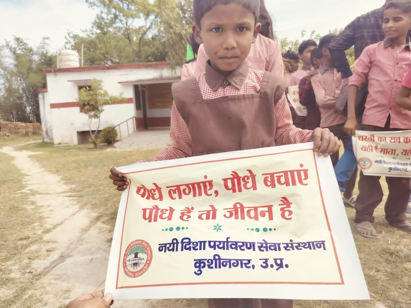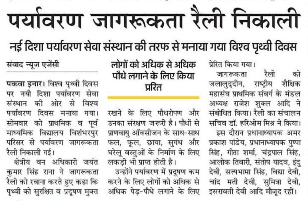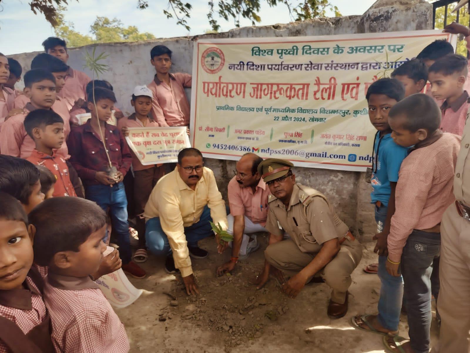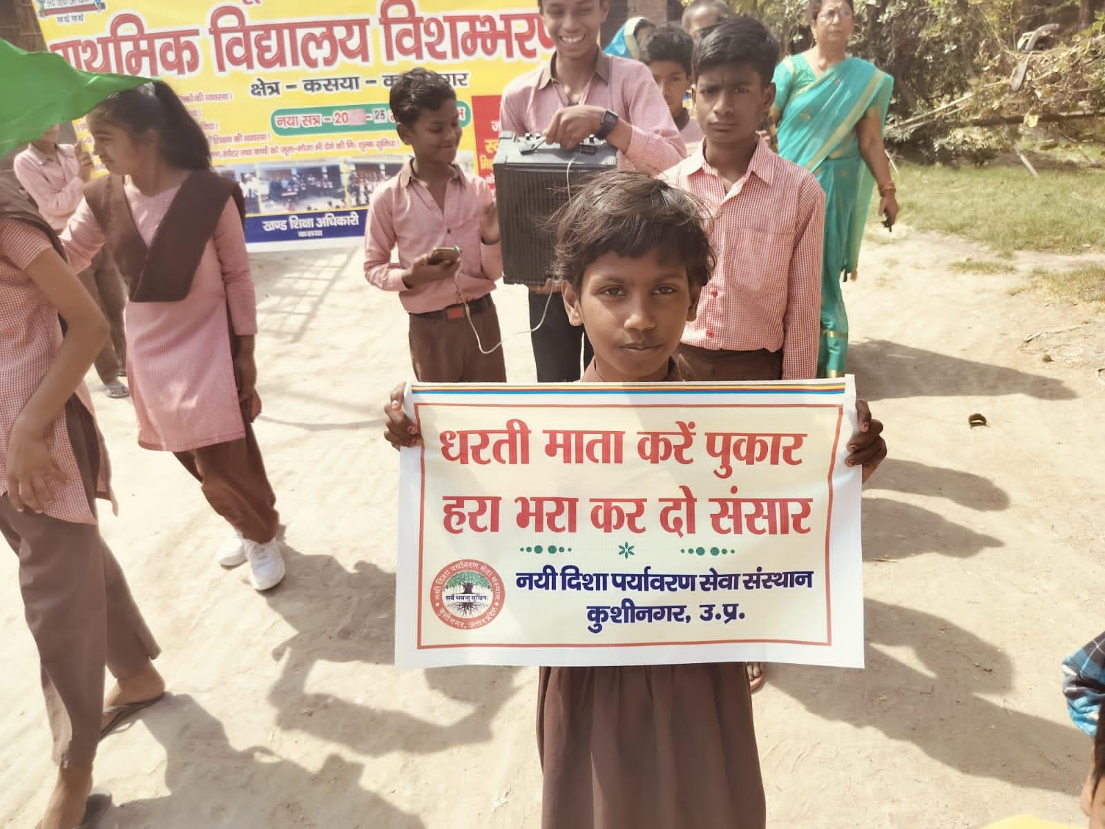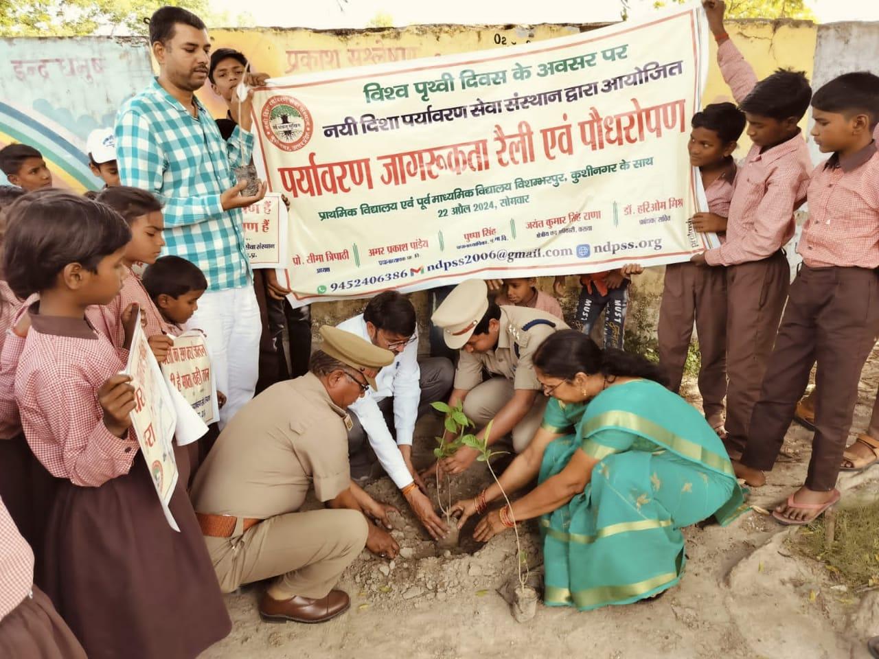 विश्व पृथ्वी दिवस के अवसर पर संस्थान द्वारा नगर पालिका परिषद कुशीनगर के विशम्भरपुर स्थित प्राथमिक एवं पूर्व माध्यमिक विद्यालय के बच्चों के साथ पृथ्वी के संरक्षण हेतु पर्यावरण जागरूकता रैली निकाली गई। रैली को क्षेत्रीय वन अधिकारी कसया श्री जयंत कुमार सिंह राणा ने हरी झंडी दिखाकर रवाना किया। प्राथमिक विद्यालय से निकली रैली विशम्भरपुर सहित आस पास क्षेत्र का भ्रमण करते हुए पूर्व माध्यमिक विद्यालय विशम्भरपुर में आकर ठहरी। लोगों को जागरूक करने हेतु रैली में बच्चों ने पर्यावरण संरक्षण सम्बन्धी नारे जैसे पौधे लगाएं पौधे बचाएं पौधे हैं तो जीवन है, धरती माता करें पुकार हरा भरा कर दो संसार, वृक्ष धरा के भूषण हैं करते दूर प्रदूषण हैं, कहते हैं सब वेद पुराण एक वृक्ष दस पुत्र समान आदि नारे लगाए।
