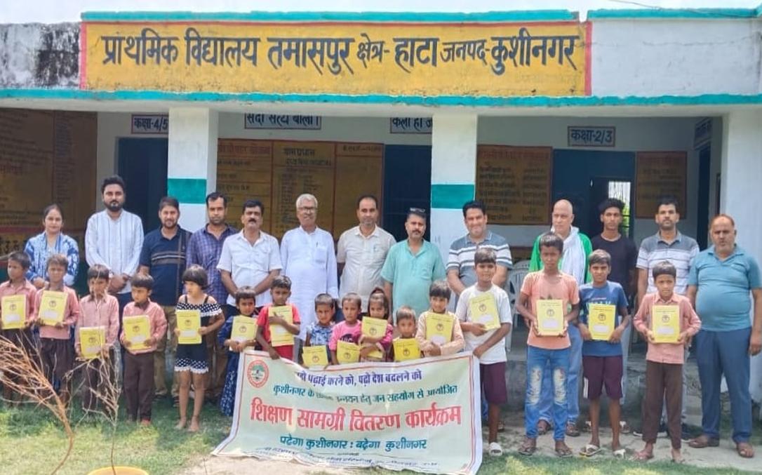 प्राथमिक विद्यालय तमाशपुर में विद्यार्थियों को जन सहयोग से वितरित हुई शिक्षण