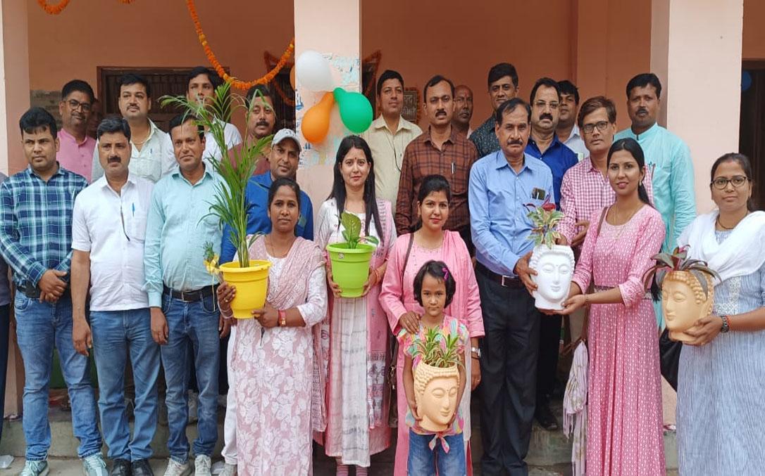 पौधा भेंट कर खण्ड शिक्षा अधिकारी श्री दया नंद चंद को दी गयी विदाई