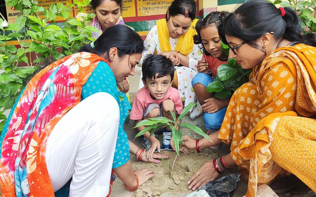 स्वर्गीय श्रीमती सावित्री देवी जी की पुण्यतिथि पर पौधरोपण एवं शिक्षण सामग्री वितरण का आयोजन